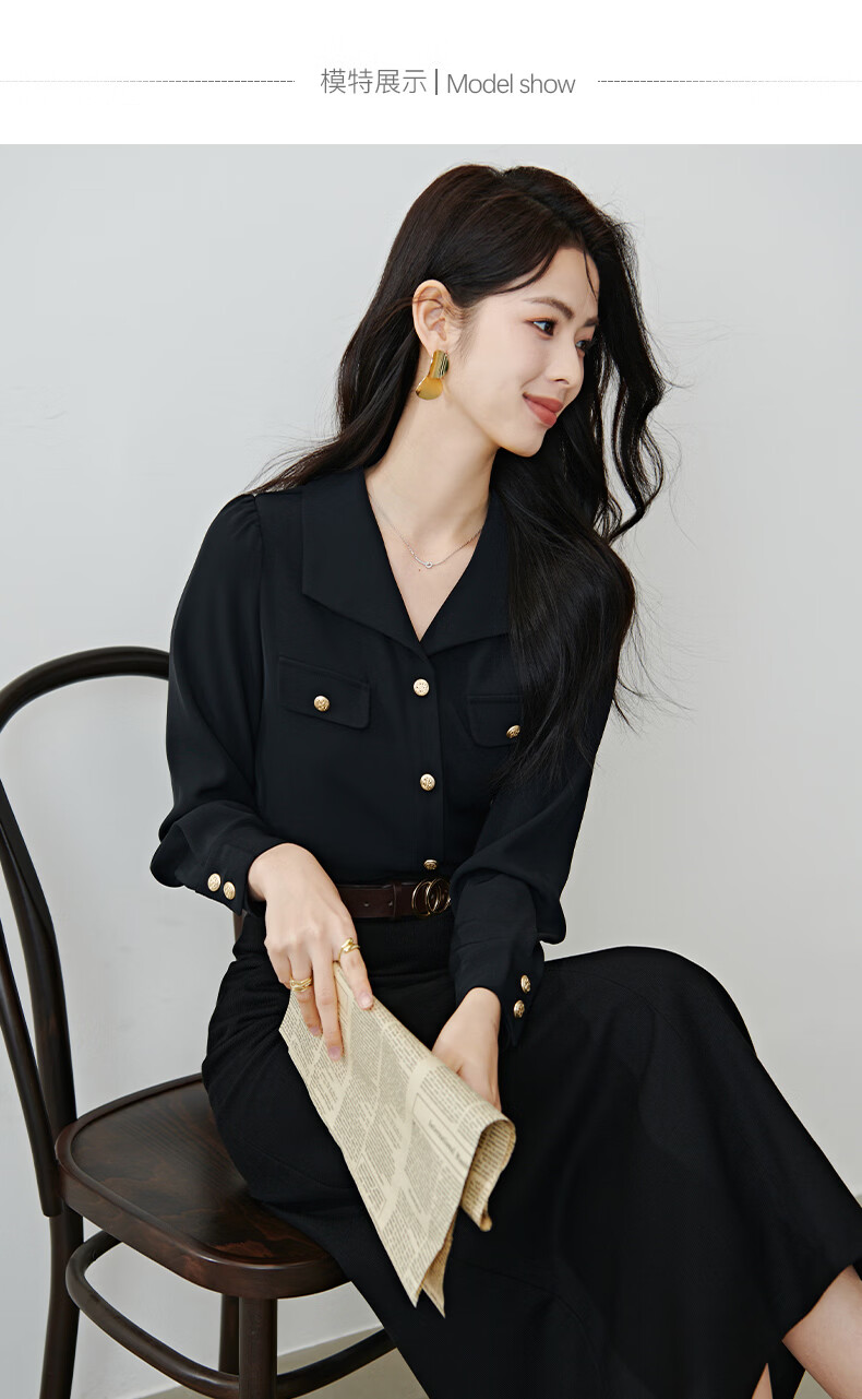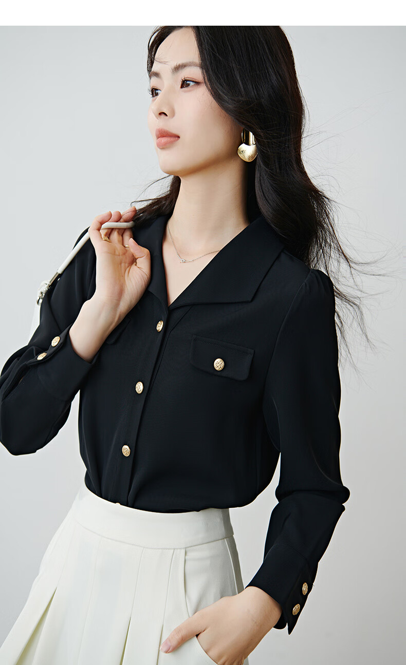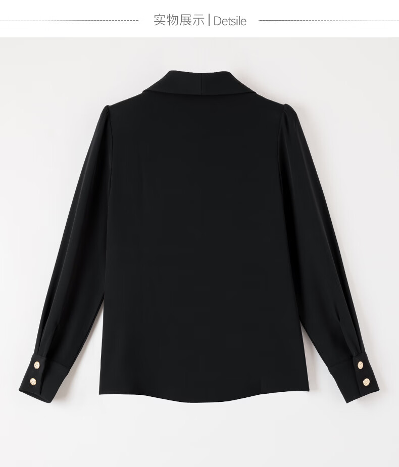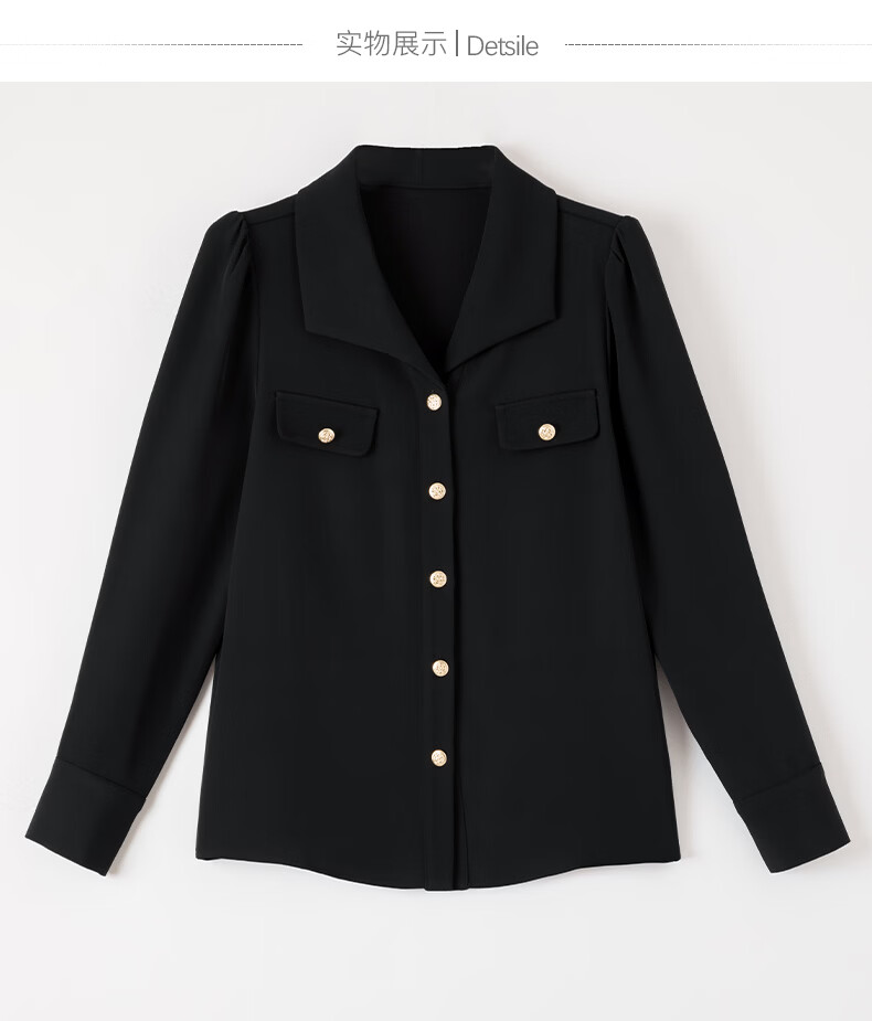 晚白【新品】2026年春款气质翻领上衣垂顺抗皱利落干练通勤衬衫女 黑色 XL