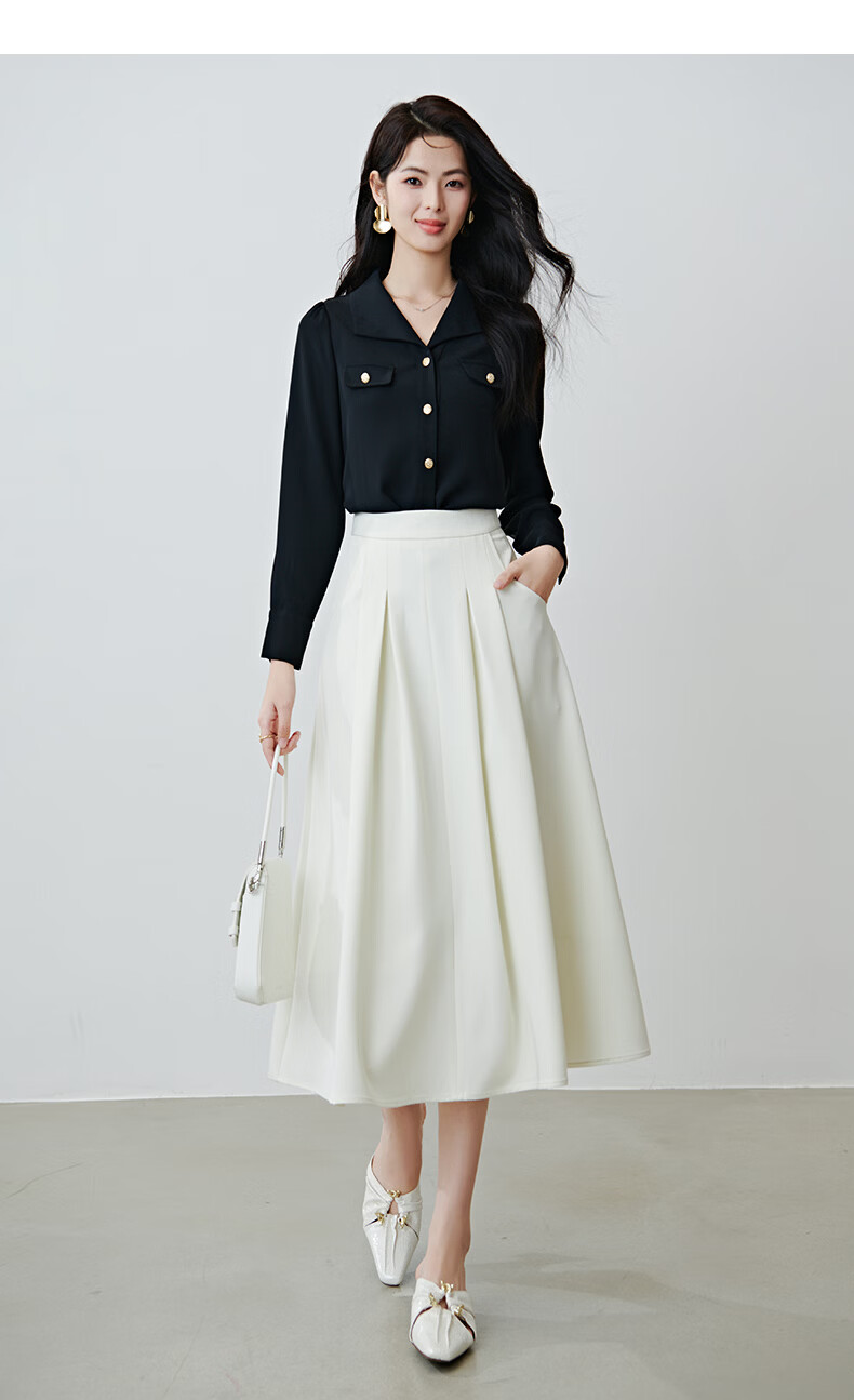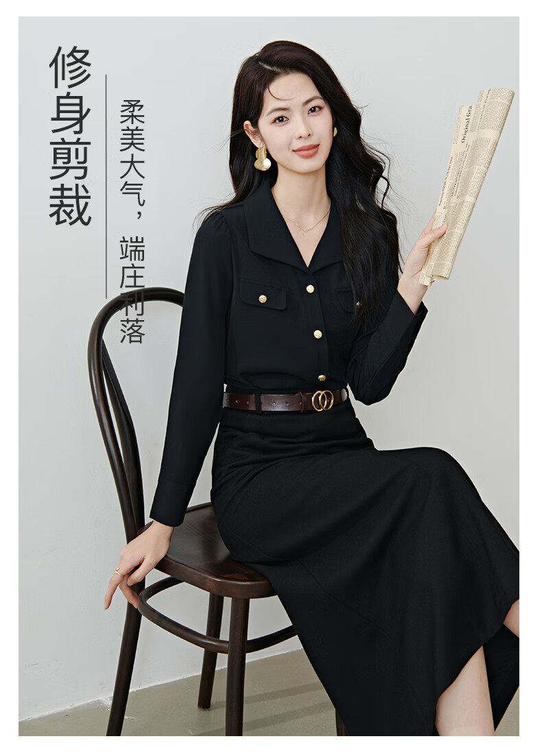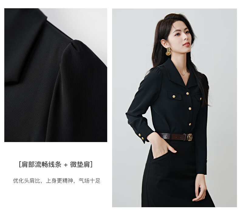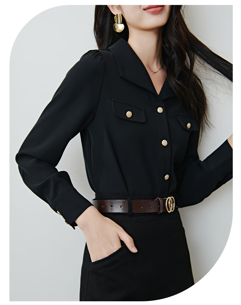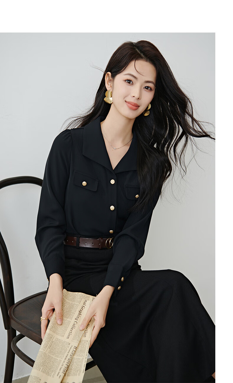 晚白【新品】2026年春款气质翻领上衣垂顺抗皱利落干练通勤衬衫女 黑色 XL