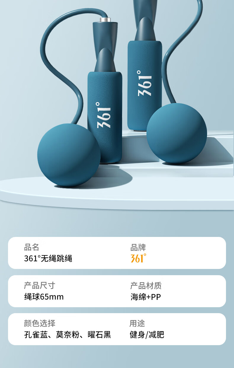 361°跳绳健身锻炼男女运动无绳成人专业绳儿童学生中考专用绳yb 曜石黑