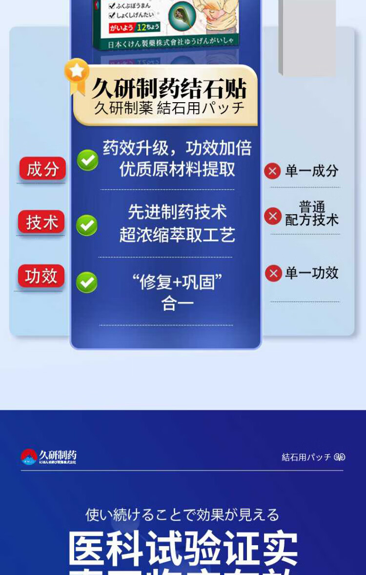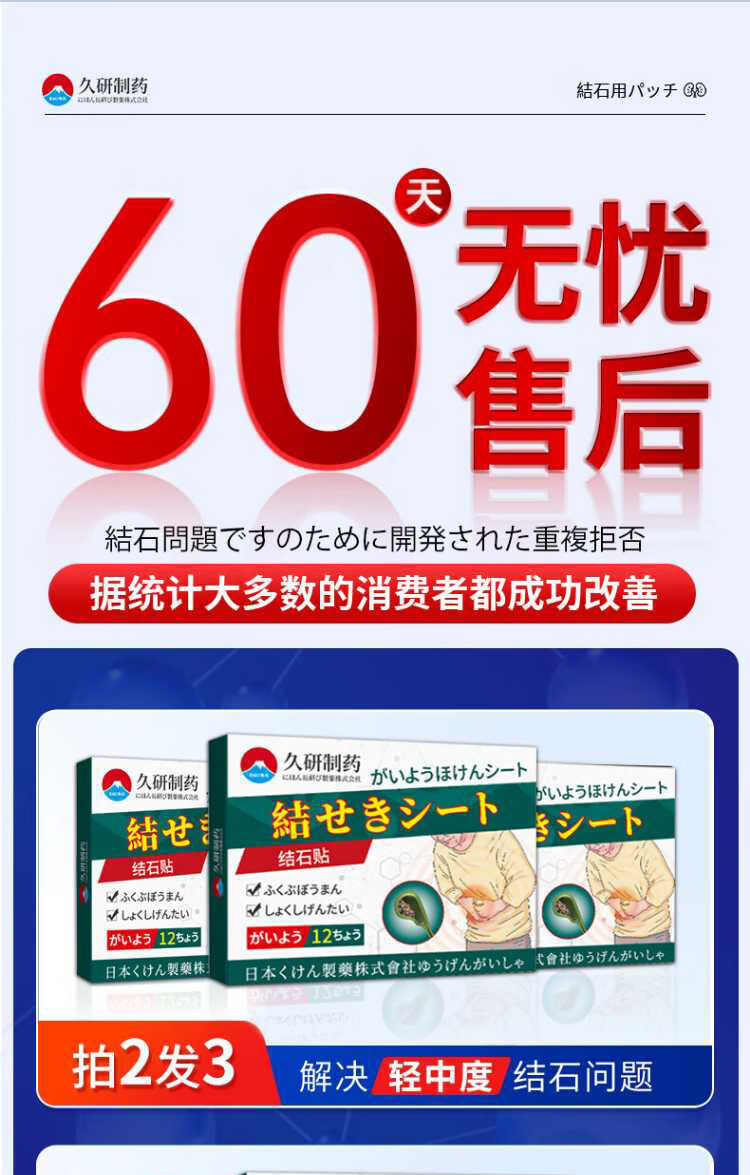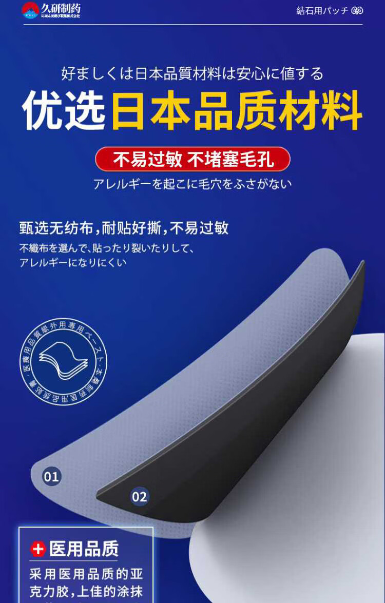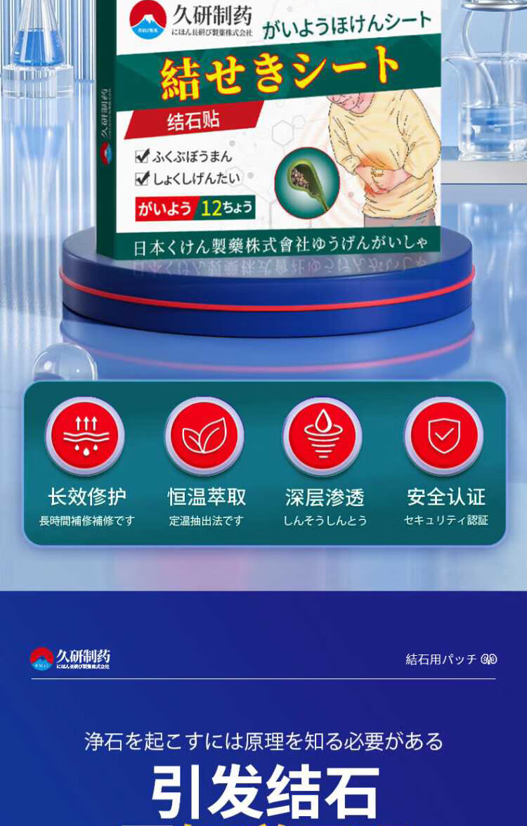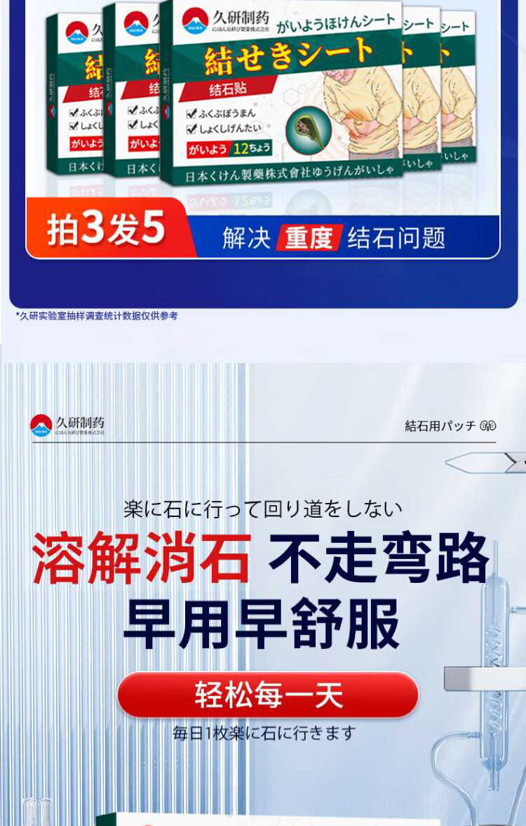 久研制药胆结石排石药胆囊结石进口的药胆囊息肉日本消石素专用胆囊炎膏药 日本研发结石贴【1盒12贴】 胆结石排石胆囊结石进口的药