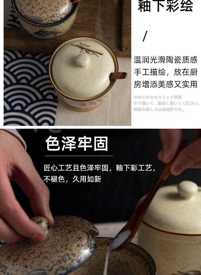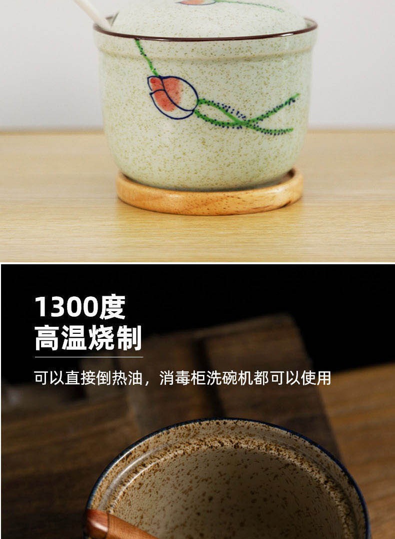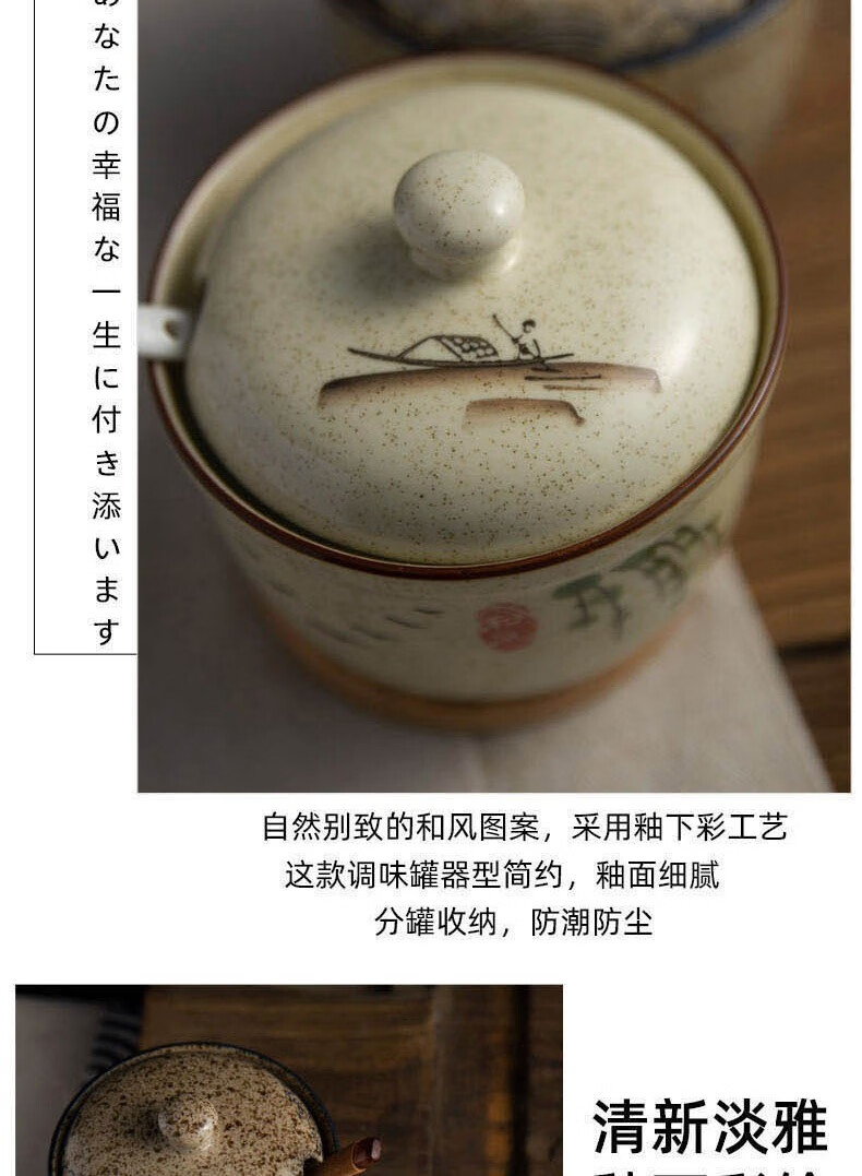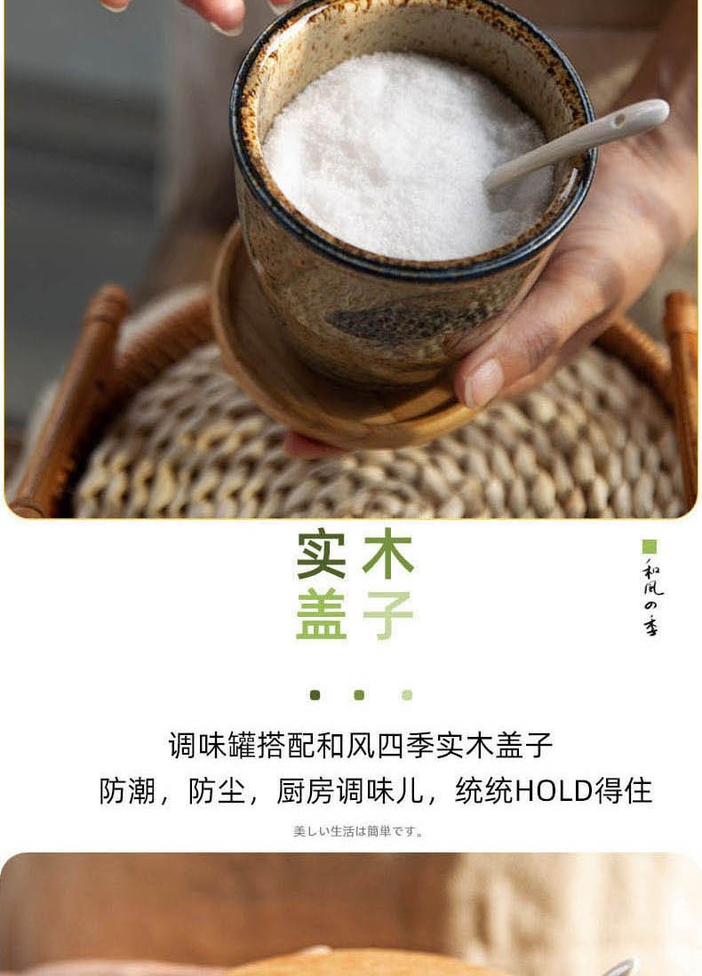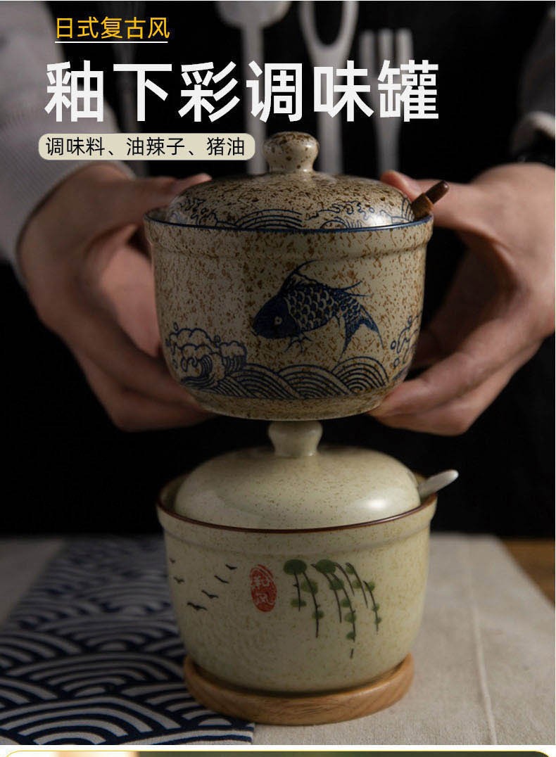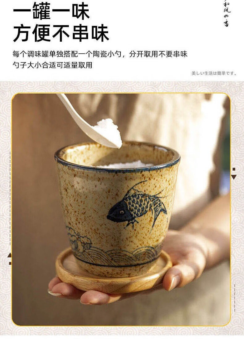 和风四季土火工坊釉下彩复古猪油罐油辣子罐家用餐厅盐罐调味罐陶瓷调料罐 和熙调料罐(360ml)配小白瓷勺