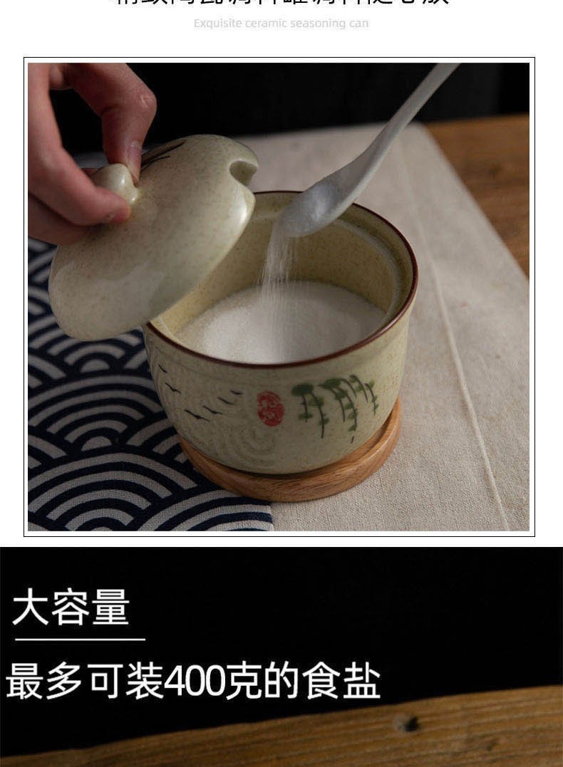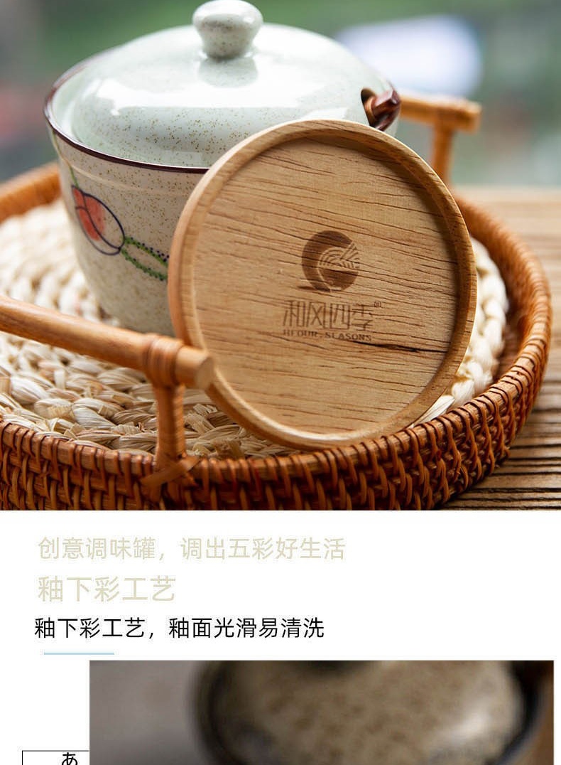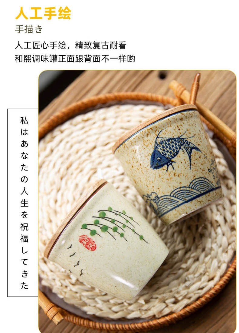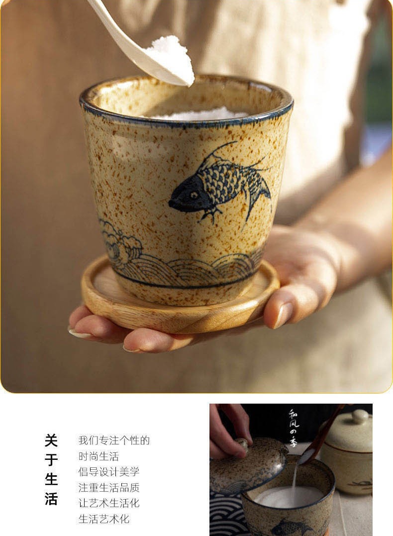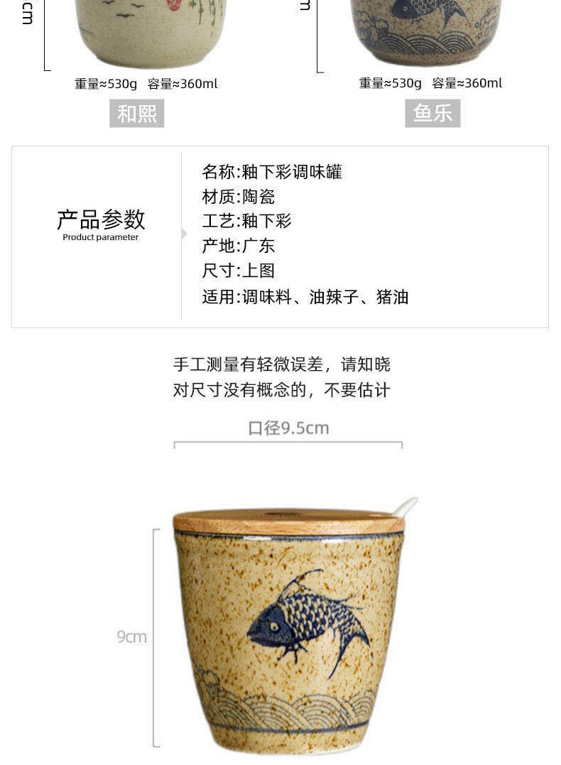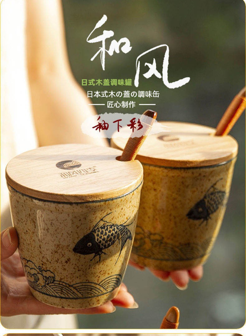 和风四季土火工坊釉下彩复古猪油罐油辣子罐家用餐厅盐罐调味罐陶瓷调料罐 和熙调料罐(360ml)配小白瓷勺