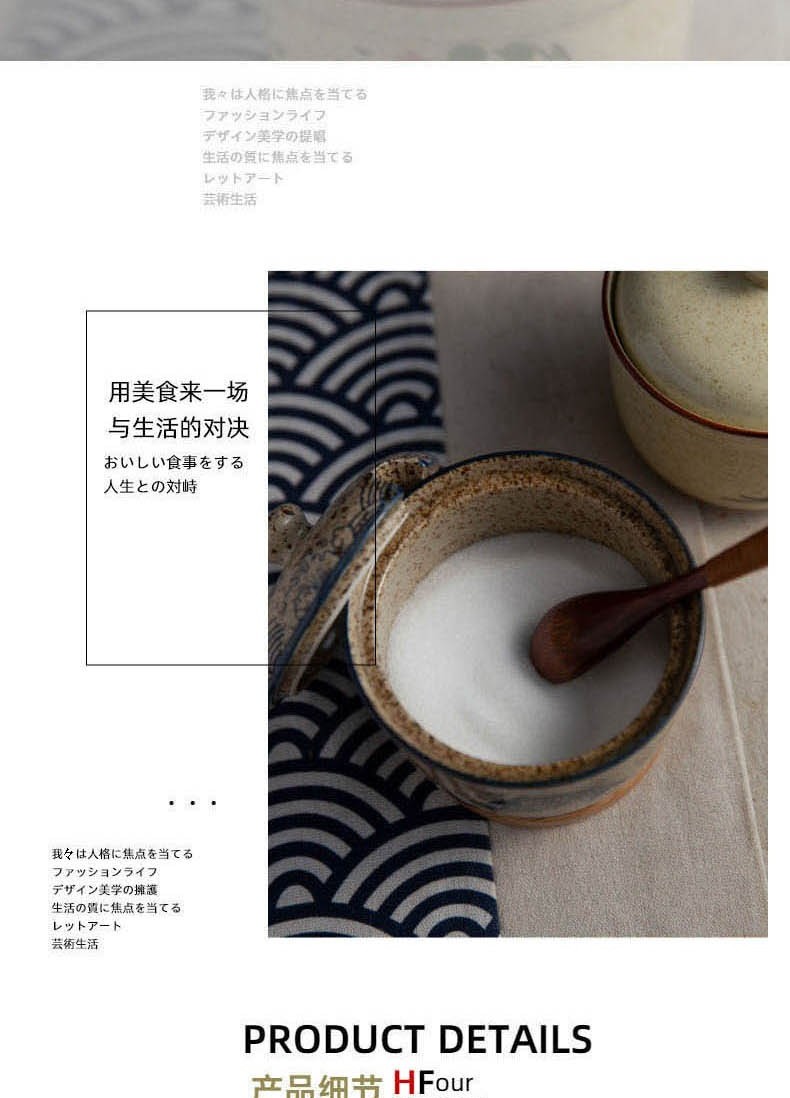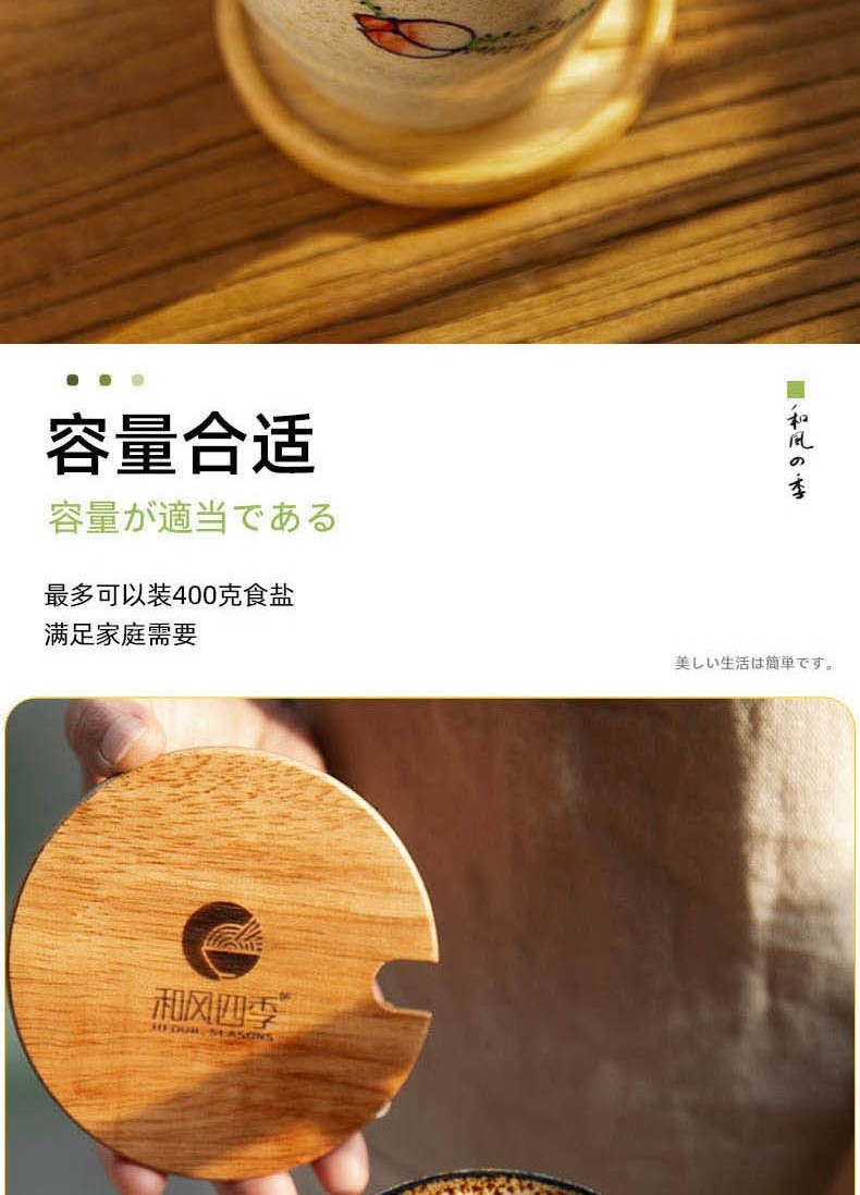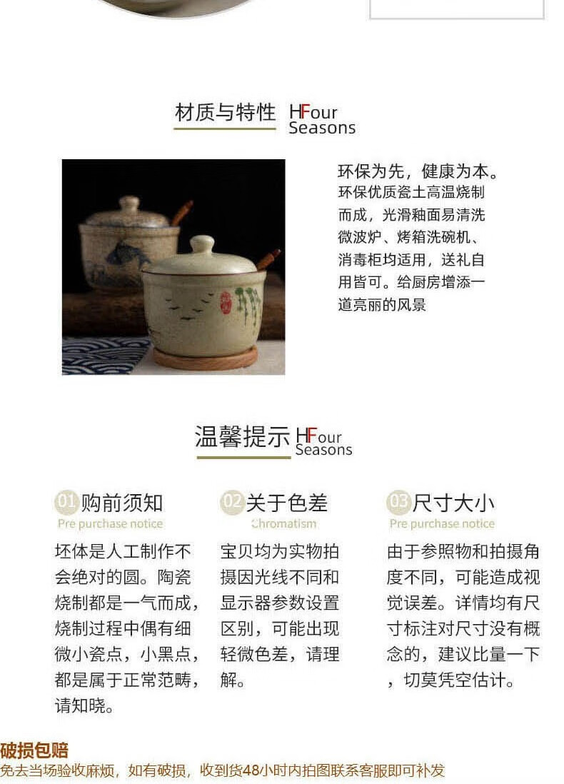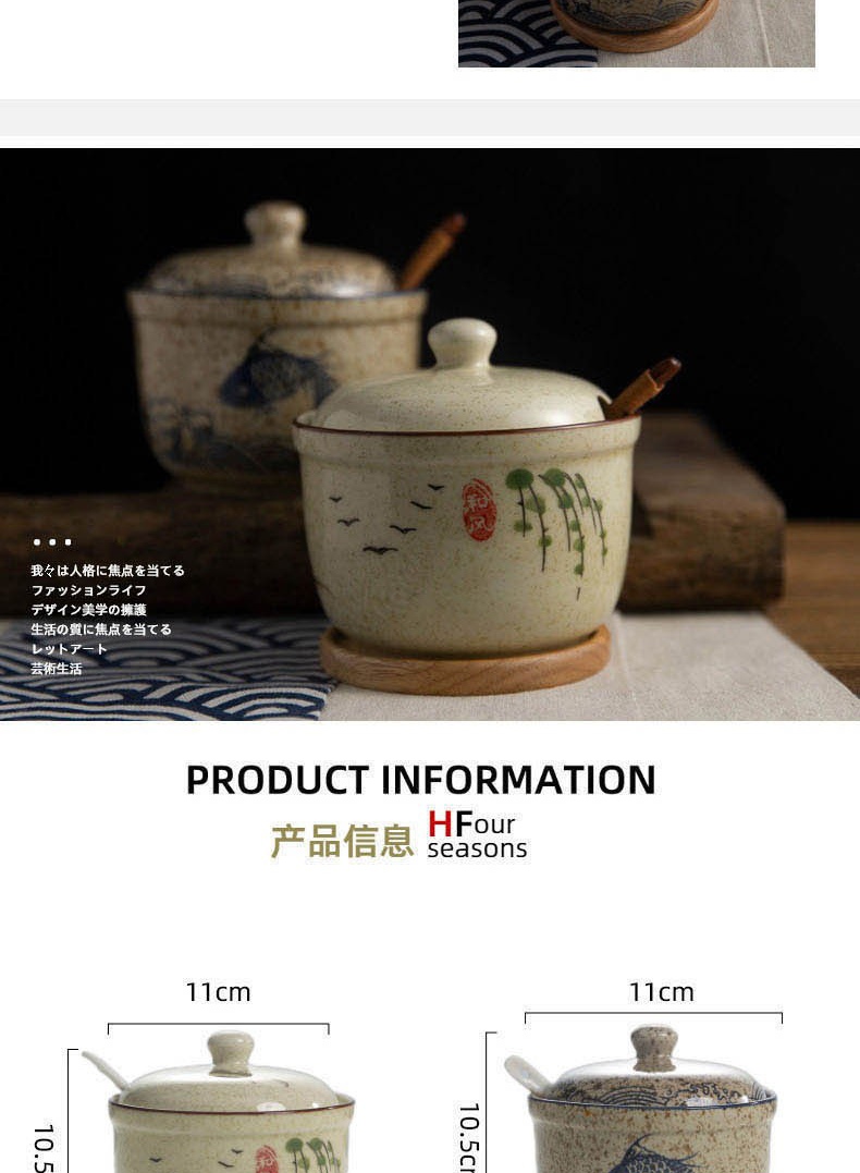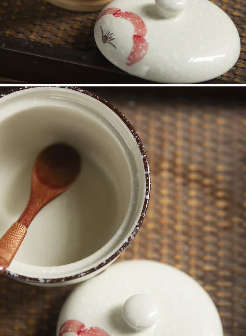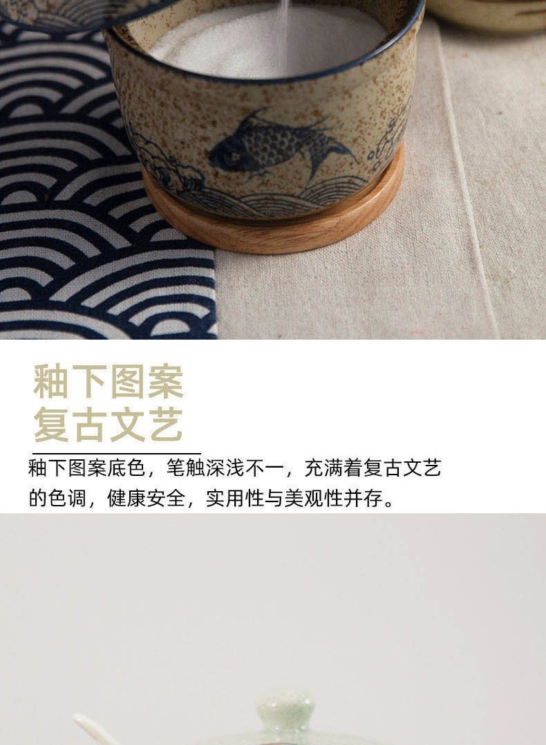 和风四季土火工坊釉下彩复古猪油罐油辣子罐家用餐厅盐罐调味罐陶瓷调料罐 和熙调料罐(360ml)配小白瓷勺
