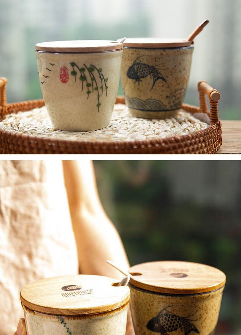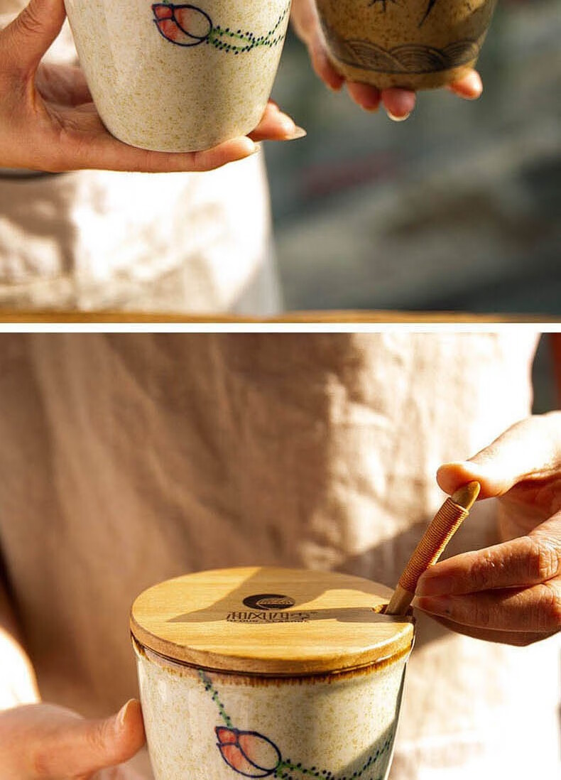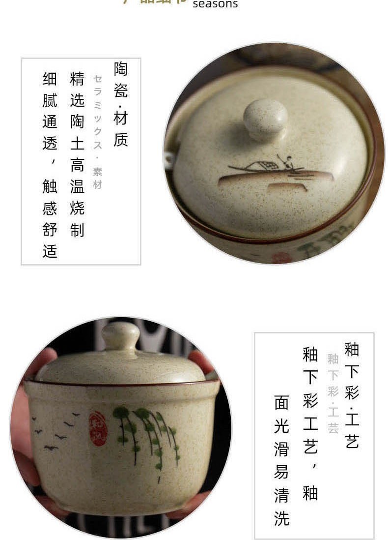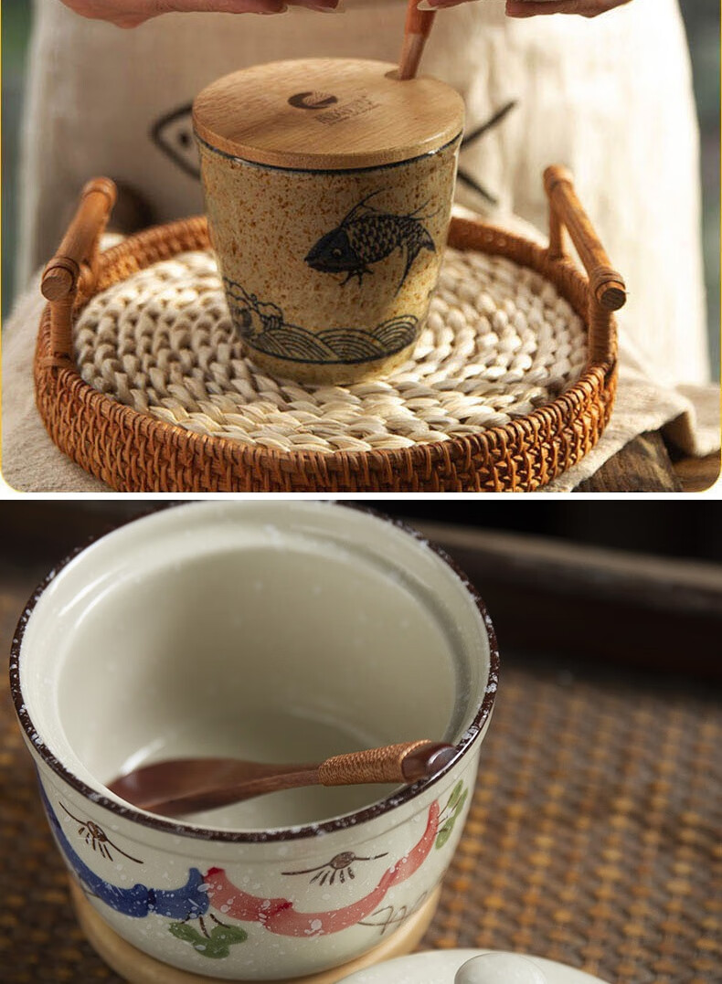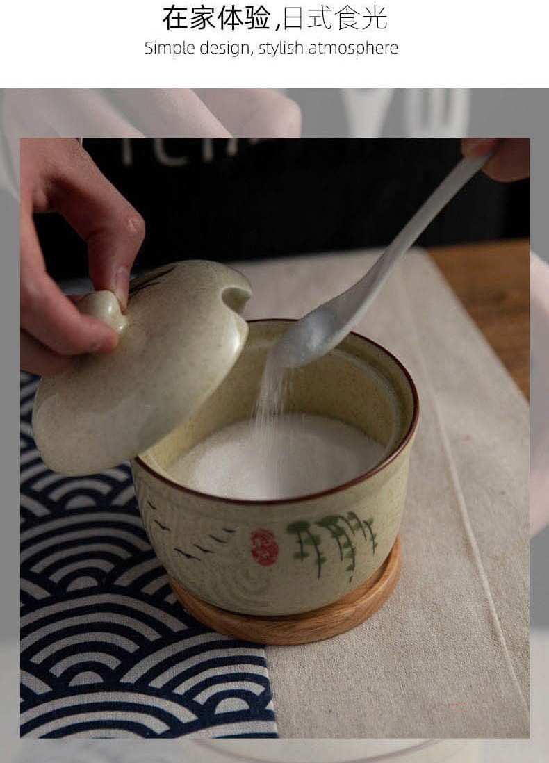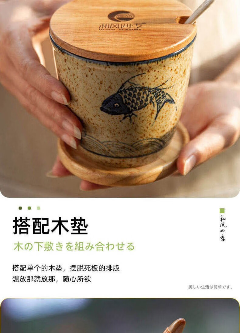 和风四季土火工坊釉下彩复古猪油罐油辣子罐家用餐厅盐罐调味罐陶瓷调料罐 和熙调料罐(360ml)配小白瓷勺