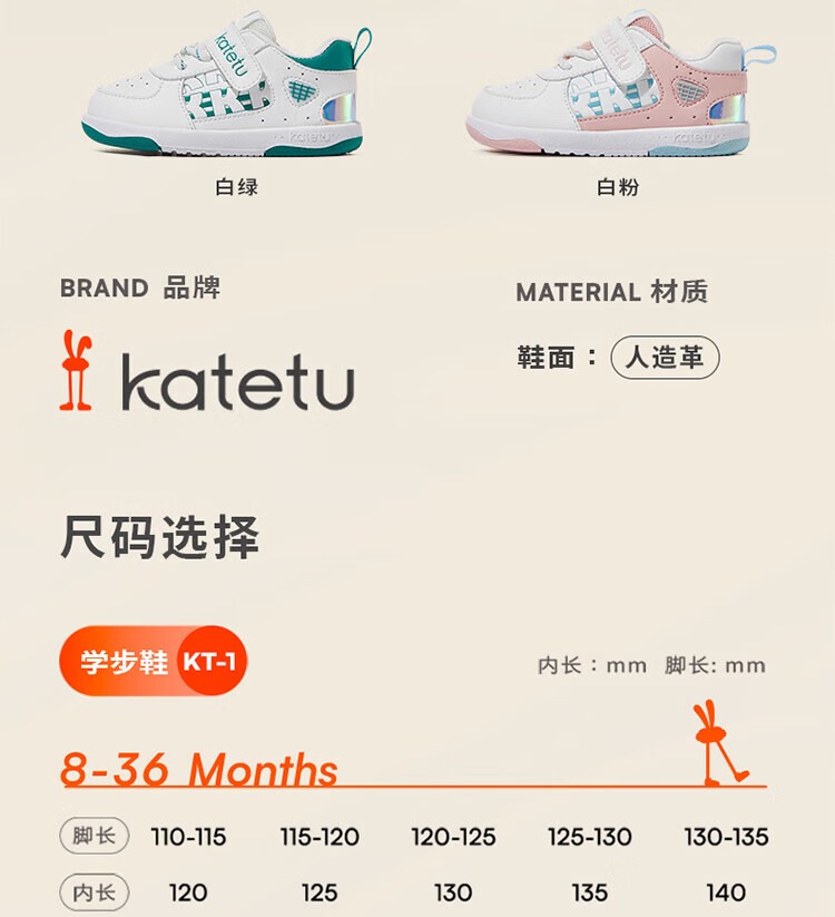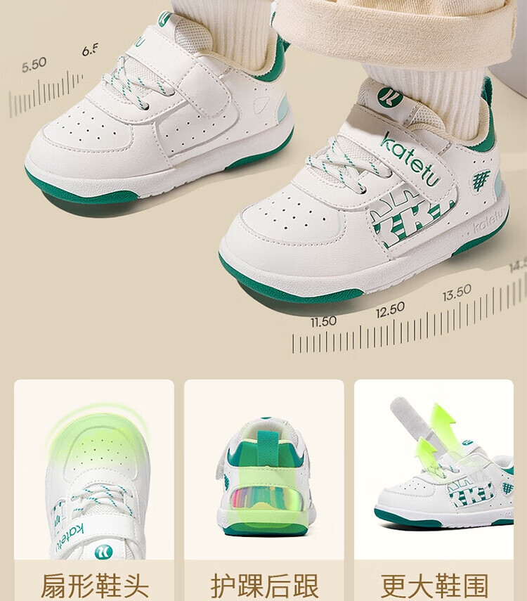 卡特兔婴儿学步鞋秋季幼儿园小白鞋软底透气机能鞋宝宝步前鞋子 白绿 20 内长12.5cm 脚长11.5-12.0