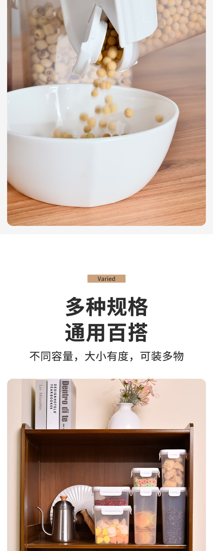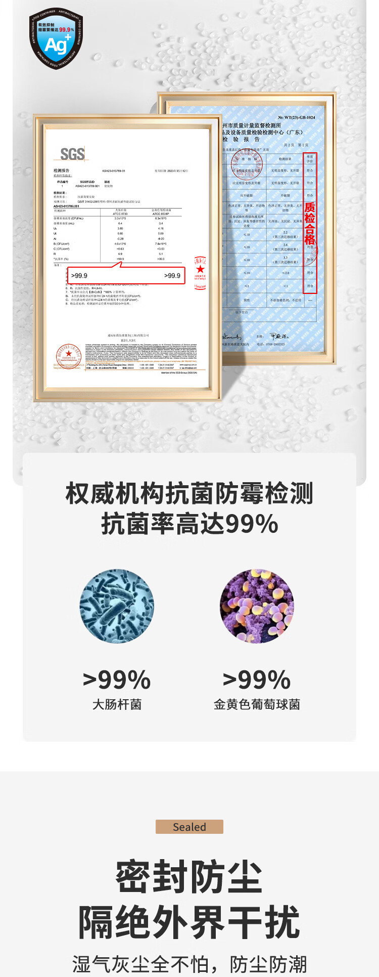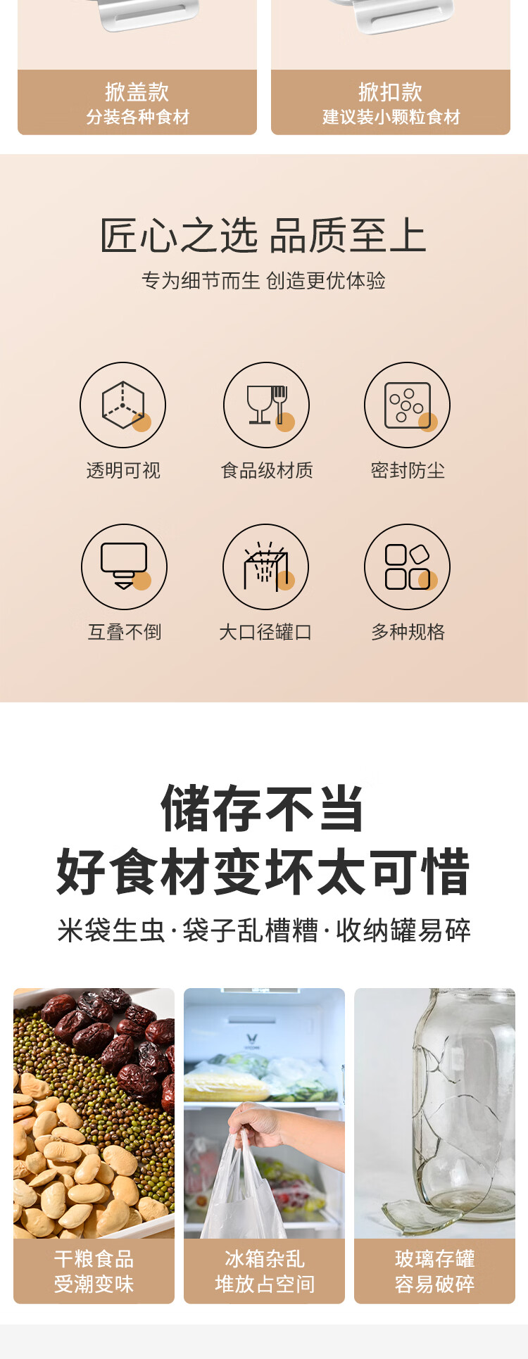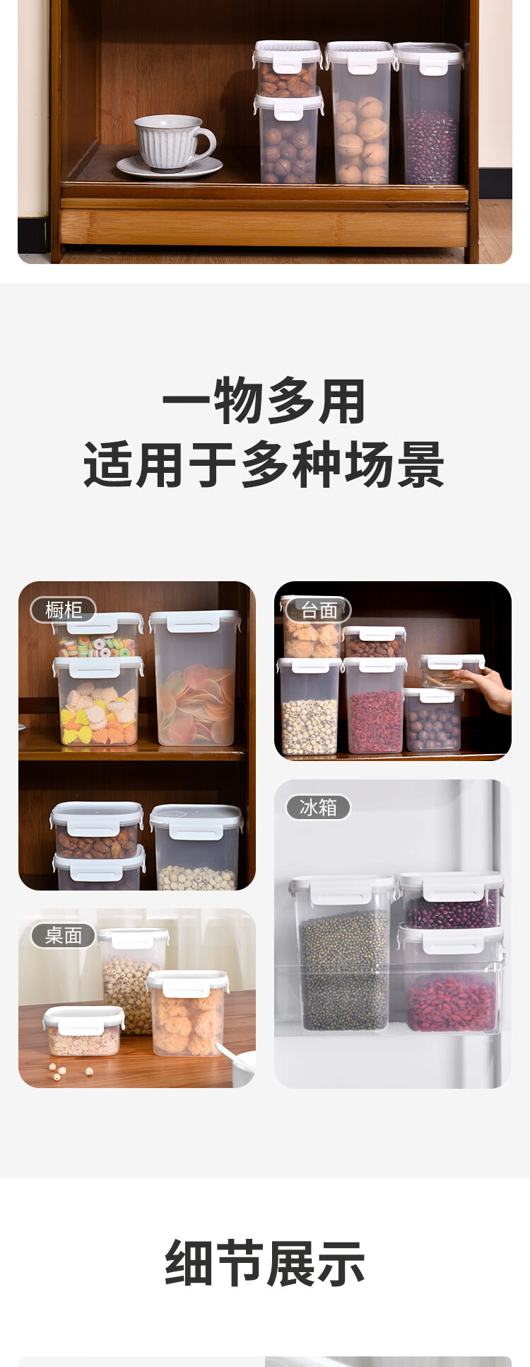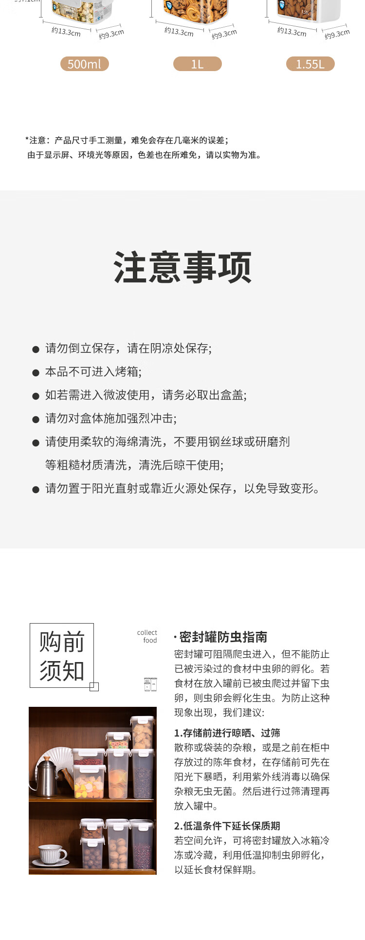 安买抗菌储物盒3件套 储物罐食品级塑料密封罐米桶厨房收纳盒S1289 【500ml+1L+1.55L】三件套
