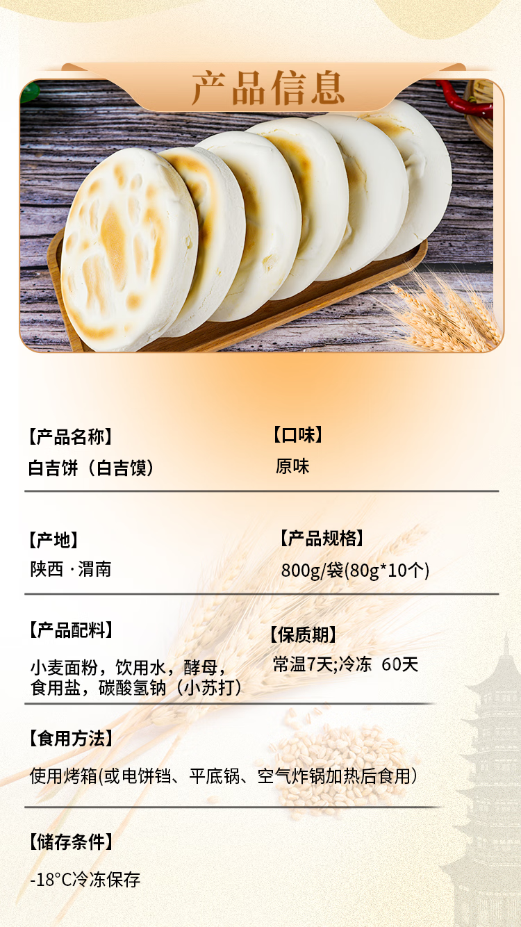 饼总管陕西白吉饼肉夹馍饼胚烧饼手工白吉馍百吉饼商用早餐速食 【陕西白吉饼】80g*10个