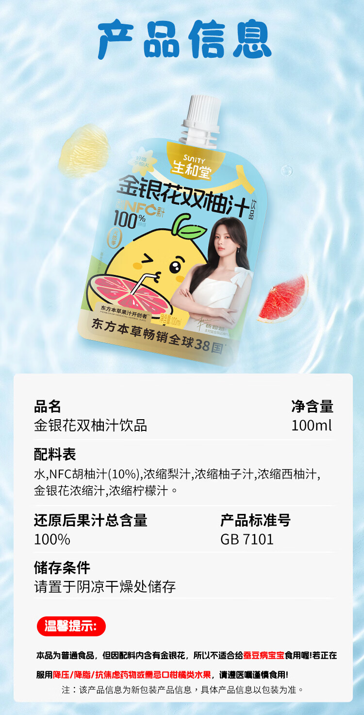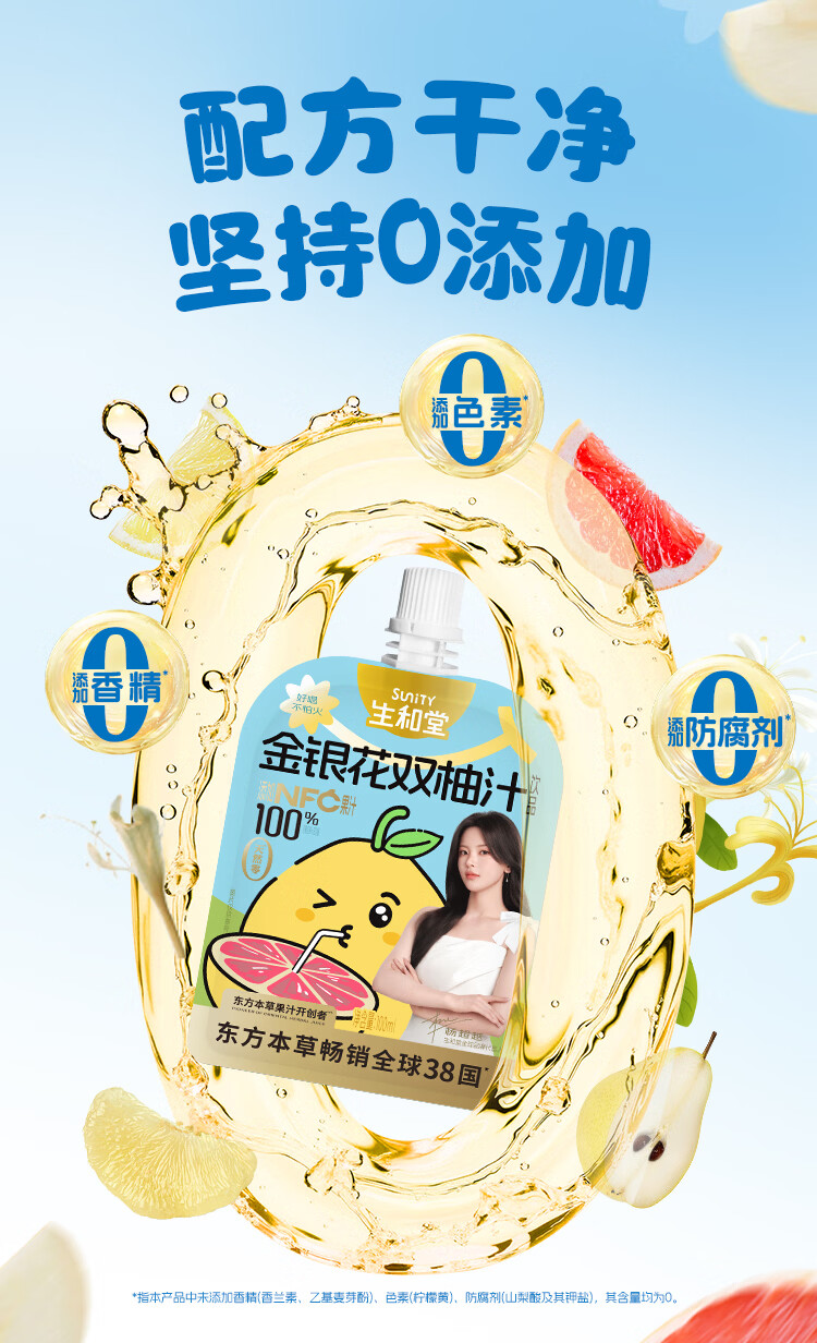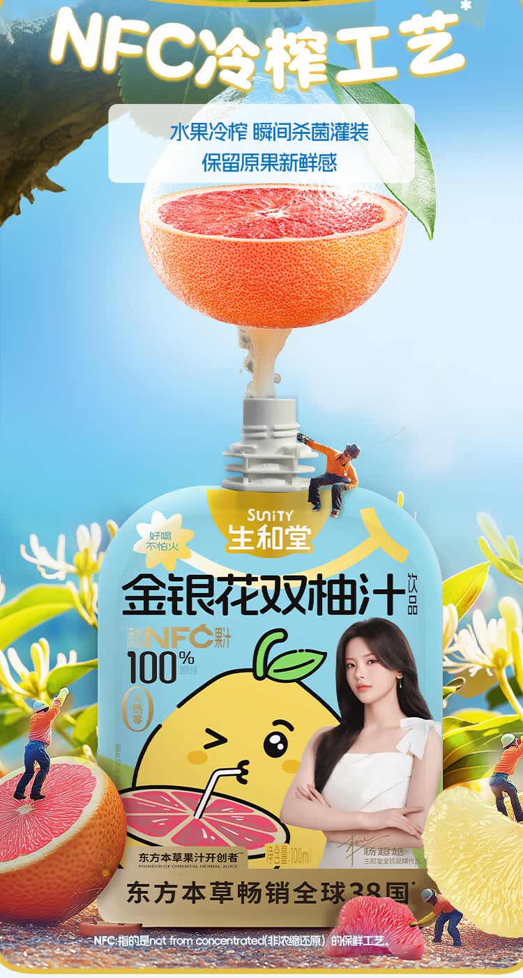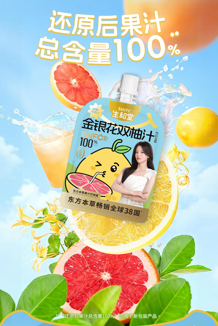 生和堂【杨超越推荐】金银花双柚汁苹果山楂汁儿童伴手礼饮料便携饮料 20袋*100ml金银花双柚汁