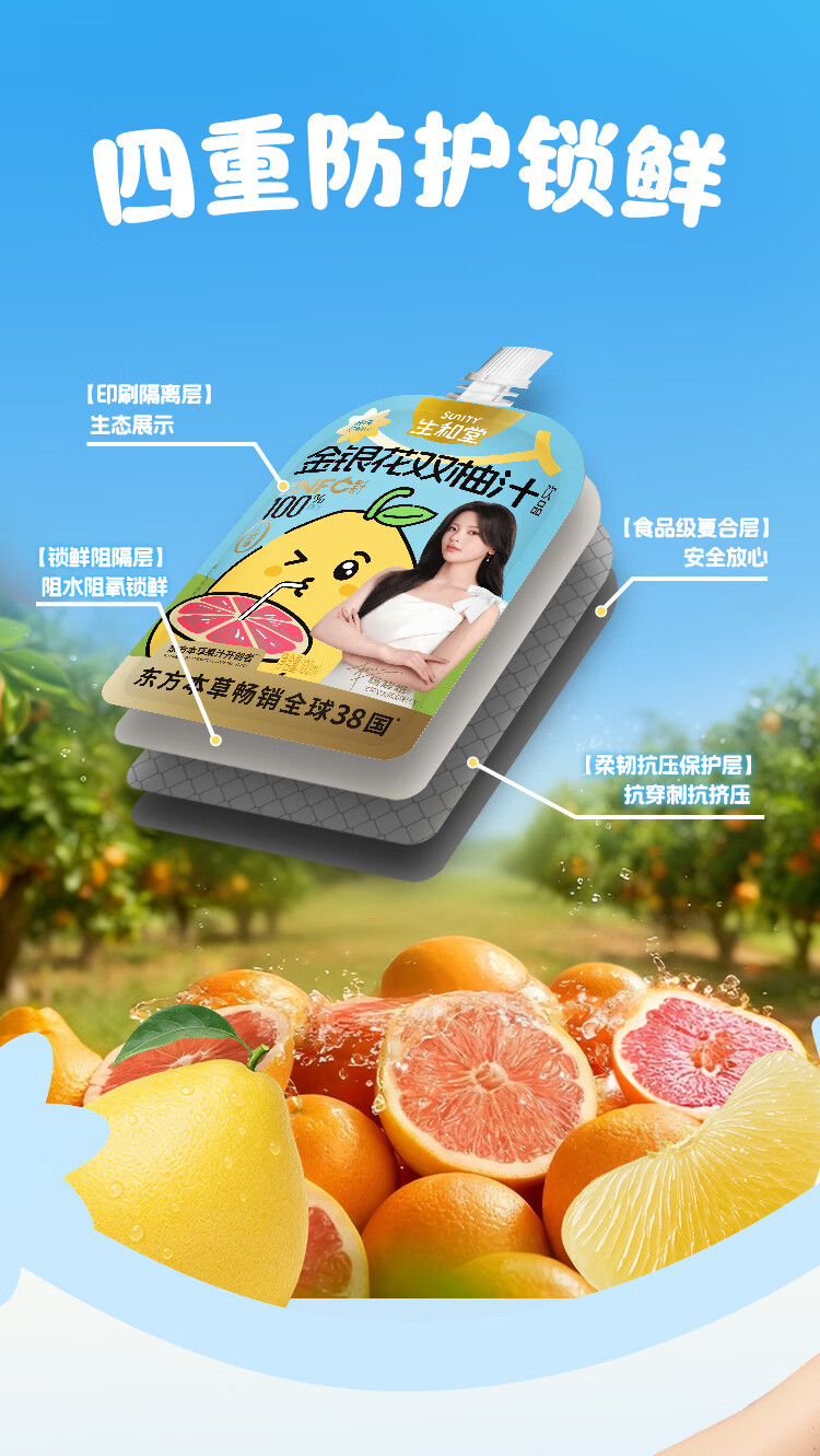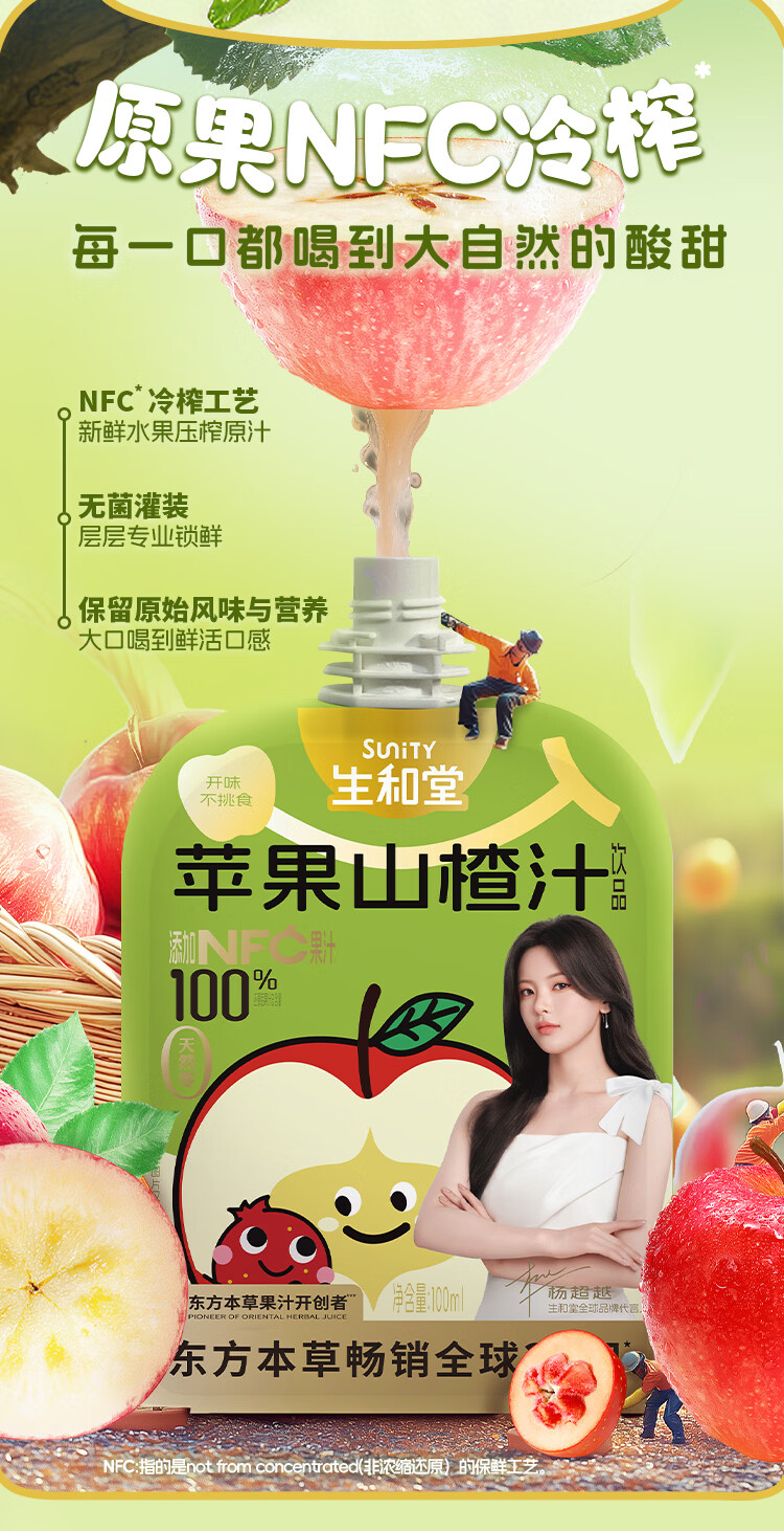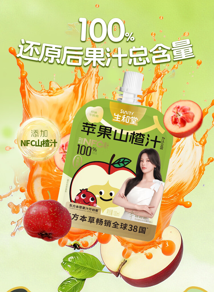 生和堂【杨超越推荐】金银花双柚汁苹果山楂汁儿童伴手礼饮料便携饮料 20袋*100ml金银花双柚汁