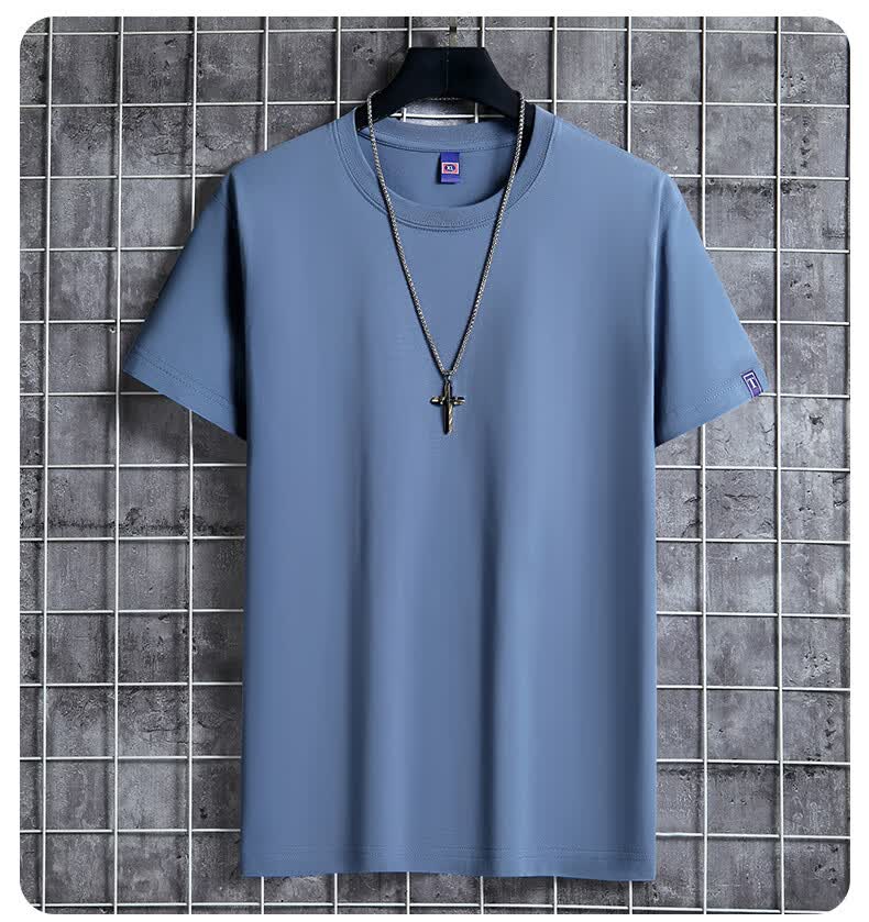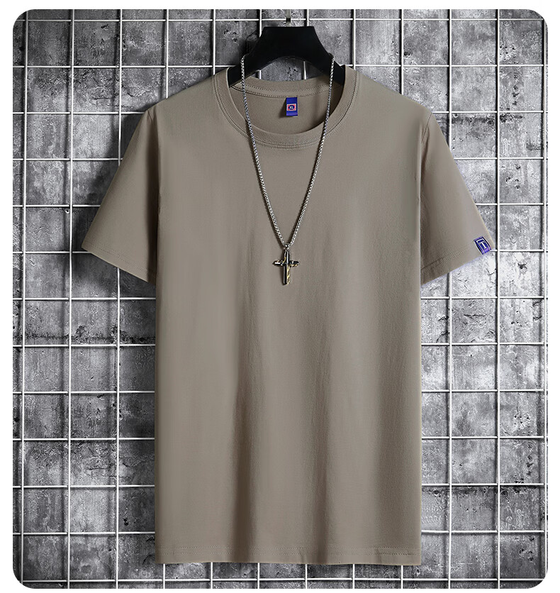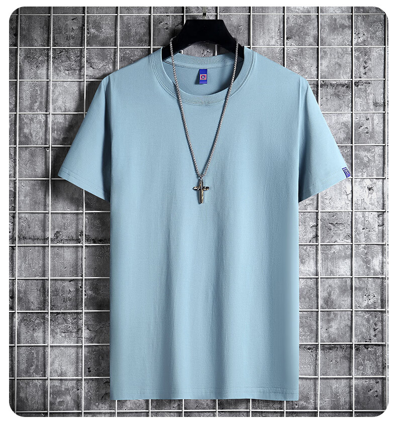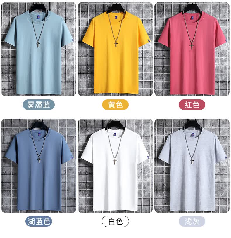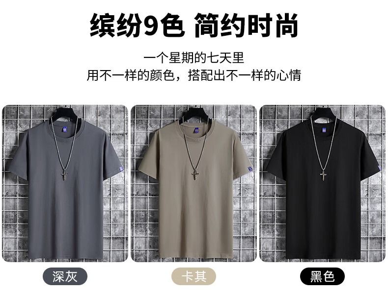 安舆【纯色3件装】短袖t恤男 纯棉半袖圆领韩版宽松大码夏季休闲上衣 【纯色基础款】湖蓝+卡其+雾兰 6XL 建议200-220斤