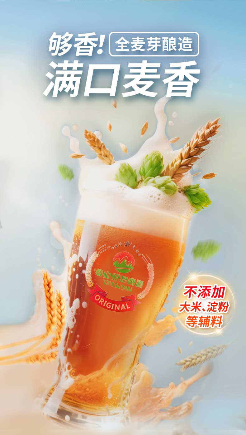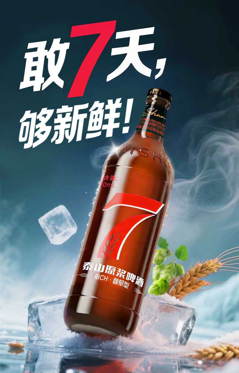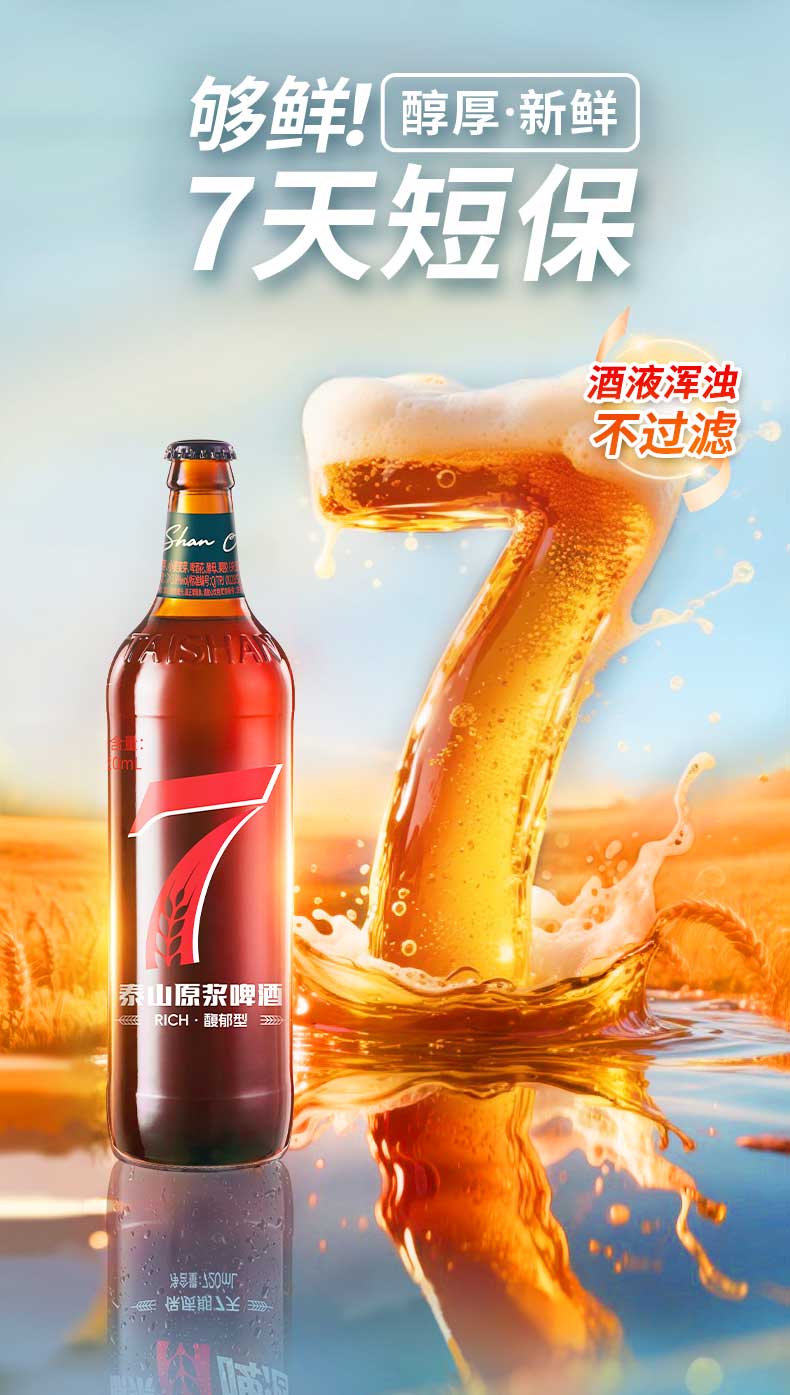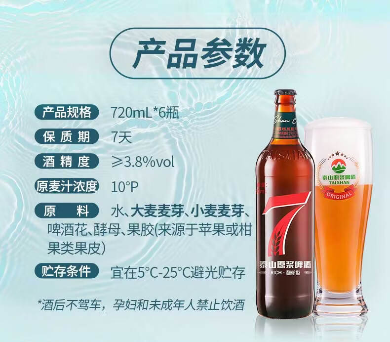 泰山原浆啤酒泰山原浆7天新鲜10°p全麦芽酿造精酿啤酒整箱 720mL 6瓶 整箱装