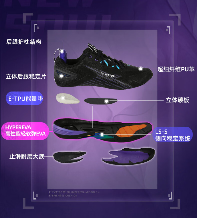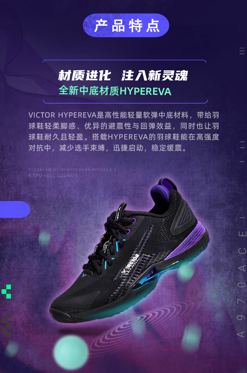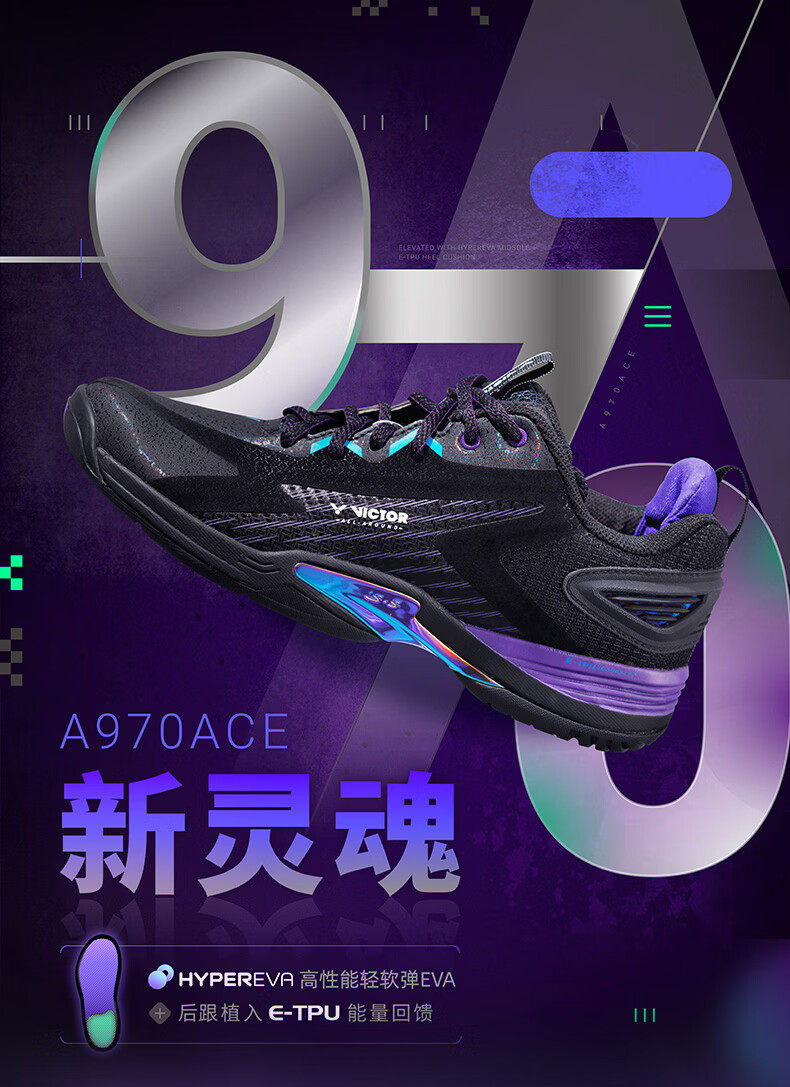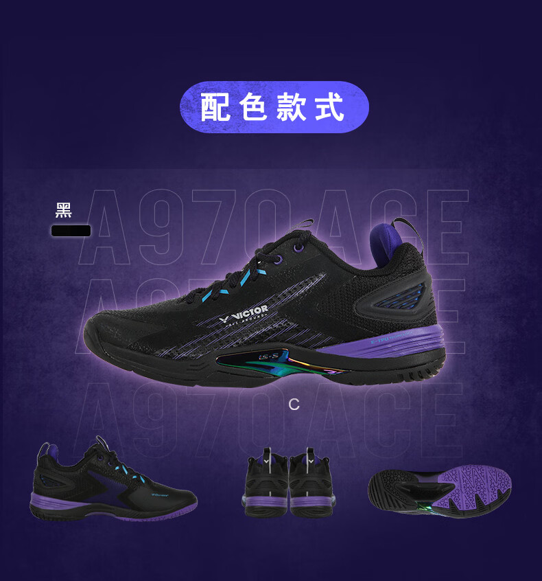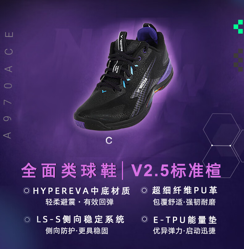 威克多(VICTOR)胜利新款专业羽毛球鞋a970nitrolite比赛鞋运动鞋缓震透气a970nl 【李梓嘉同款战靴】970ACE-C黑色 42