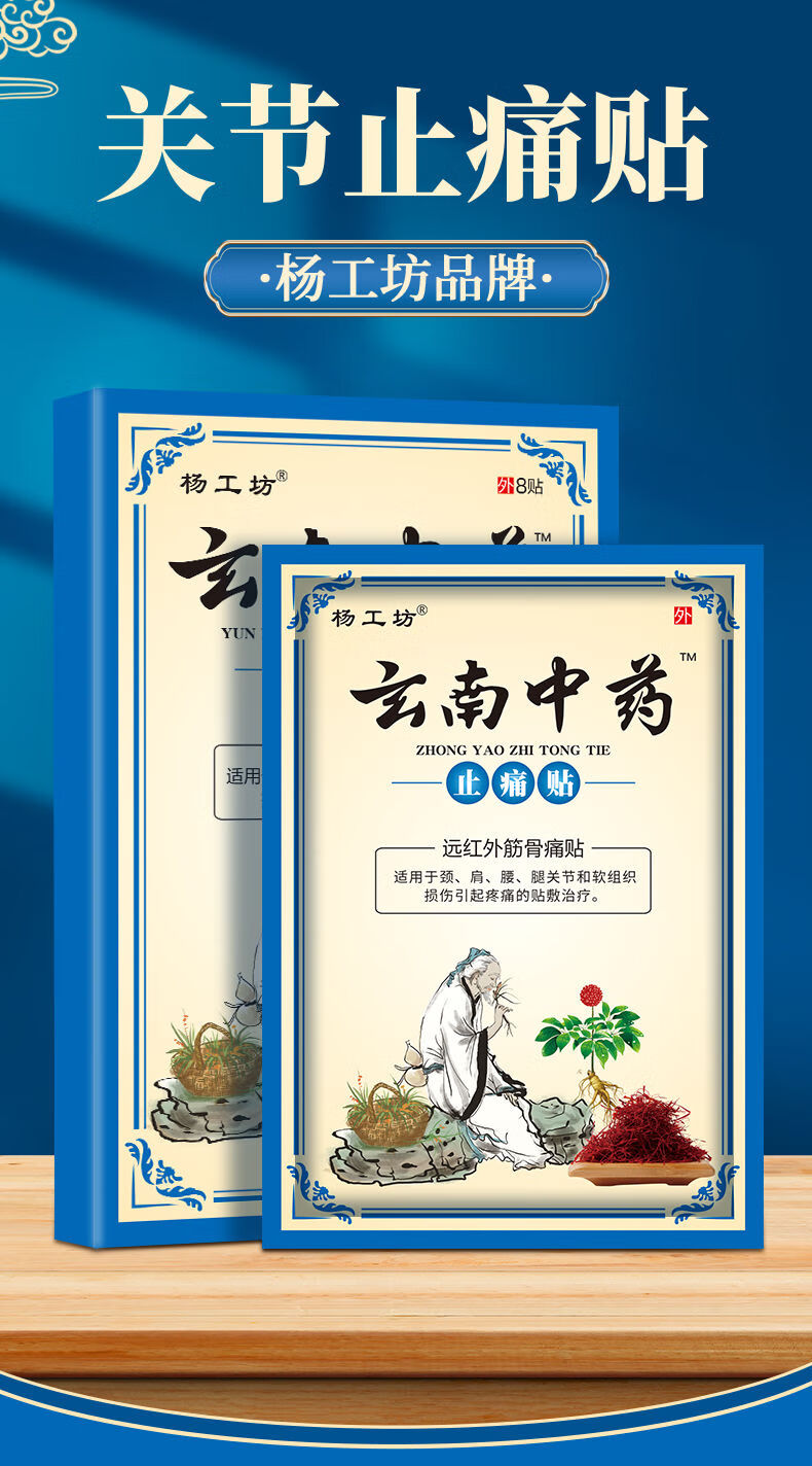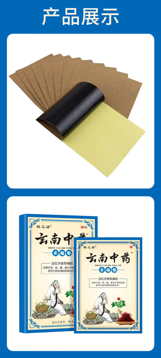 云南中药止痛贴远红外筋骨关节颈椎肩周腰间盘膝盖痛 一盒玄南中药(8贴/盒)