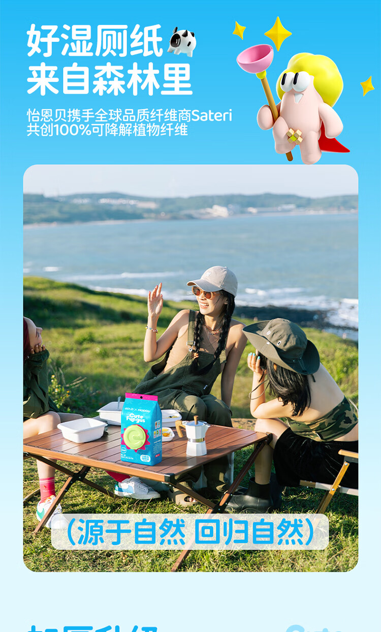 怡恩贝壁挂厕用湿巾断点珍珠纹悬挂式湿厕纸巾男女家用加大加厚湿厕纸