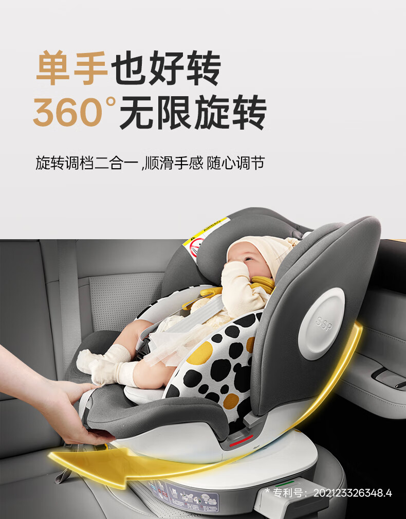 袋鼠爸爸(EURO KIDS)安全座椅婴儿0-12岁360度旋转儿童车载座椅新国标星途pro星空灰