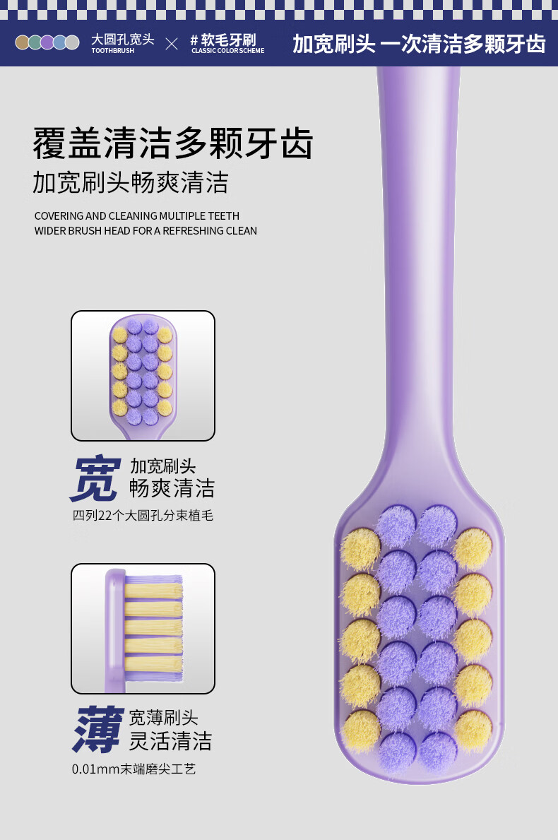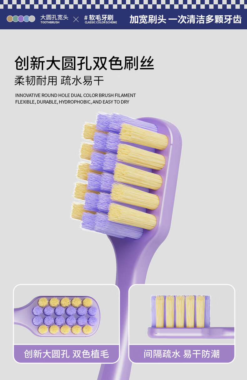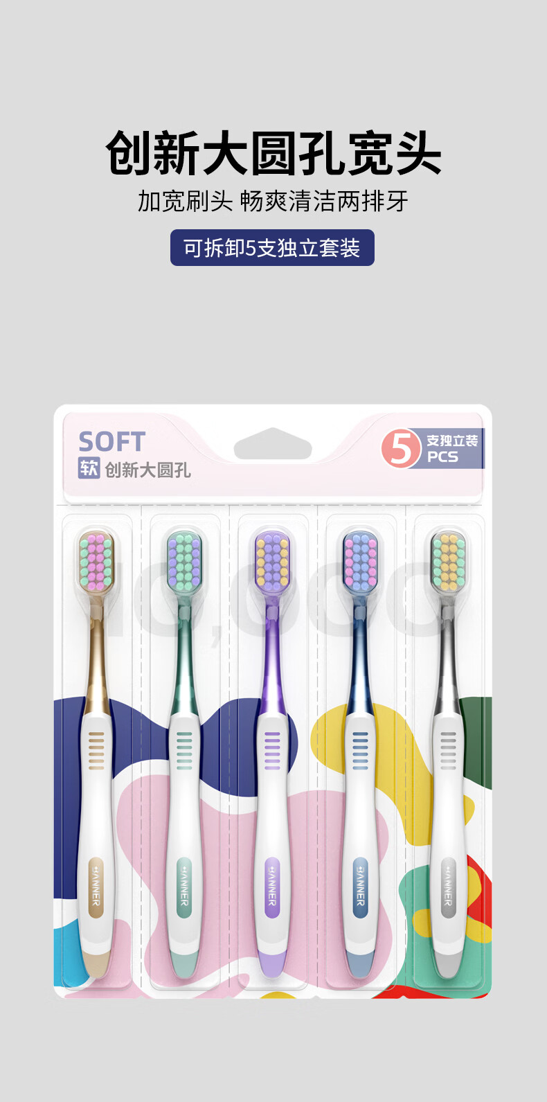 伊诺齿软毛牙刷成人宽头牙刷男女士通用家庭装情侣款大头牙刷家用便携刷 独立可拆卸包装+加宽刷头【2盒】 10支