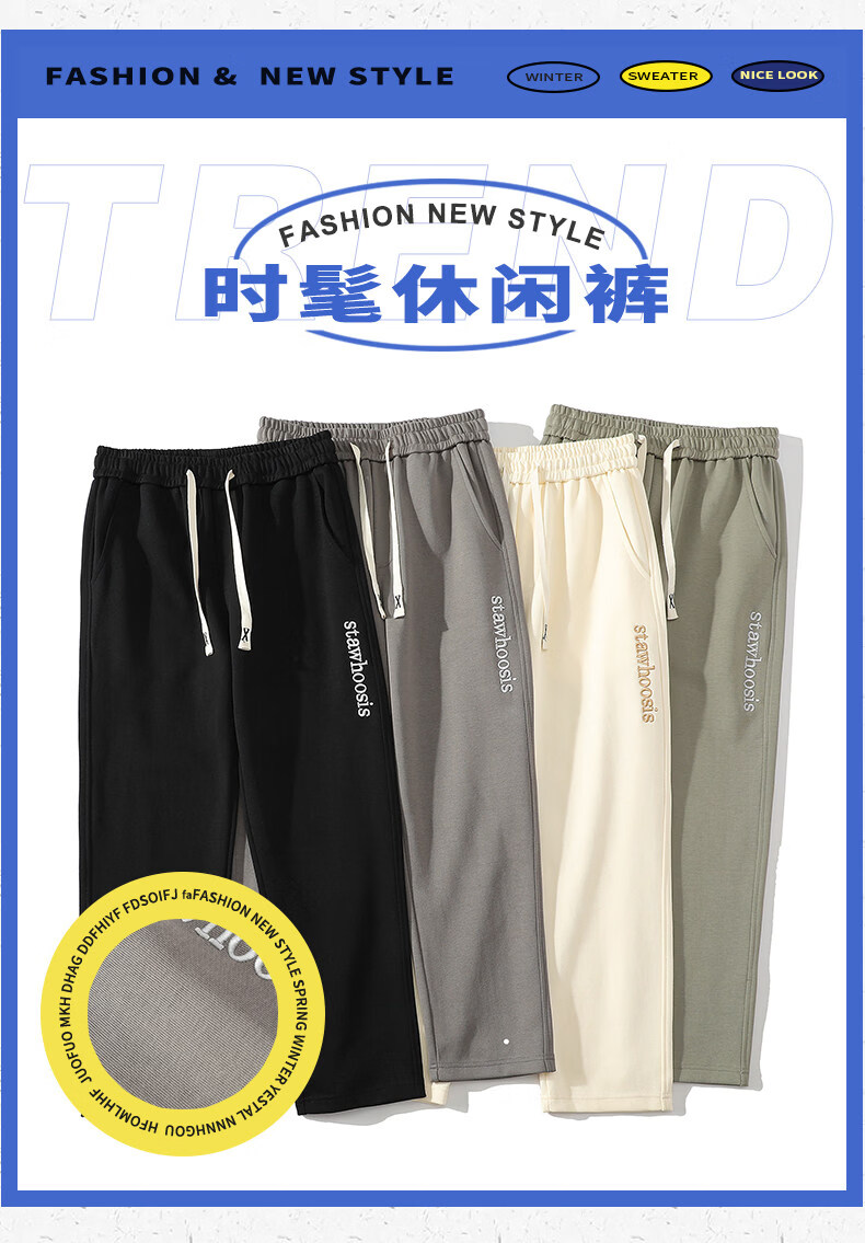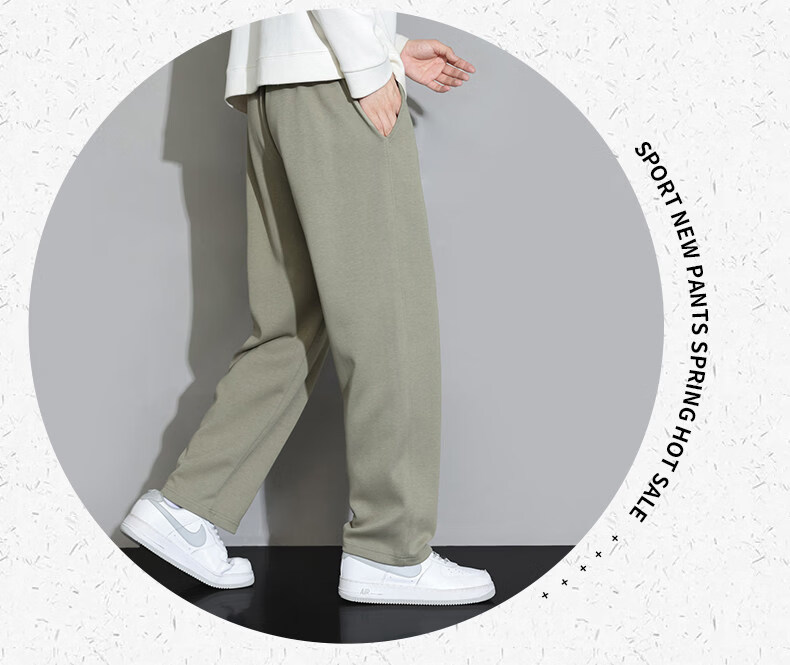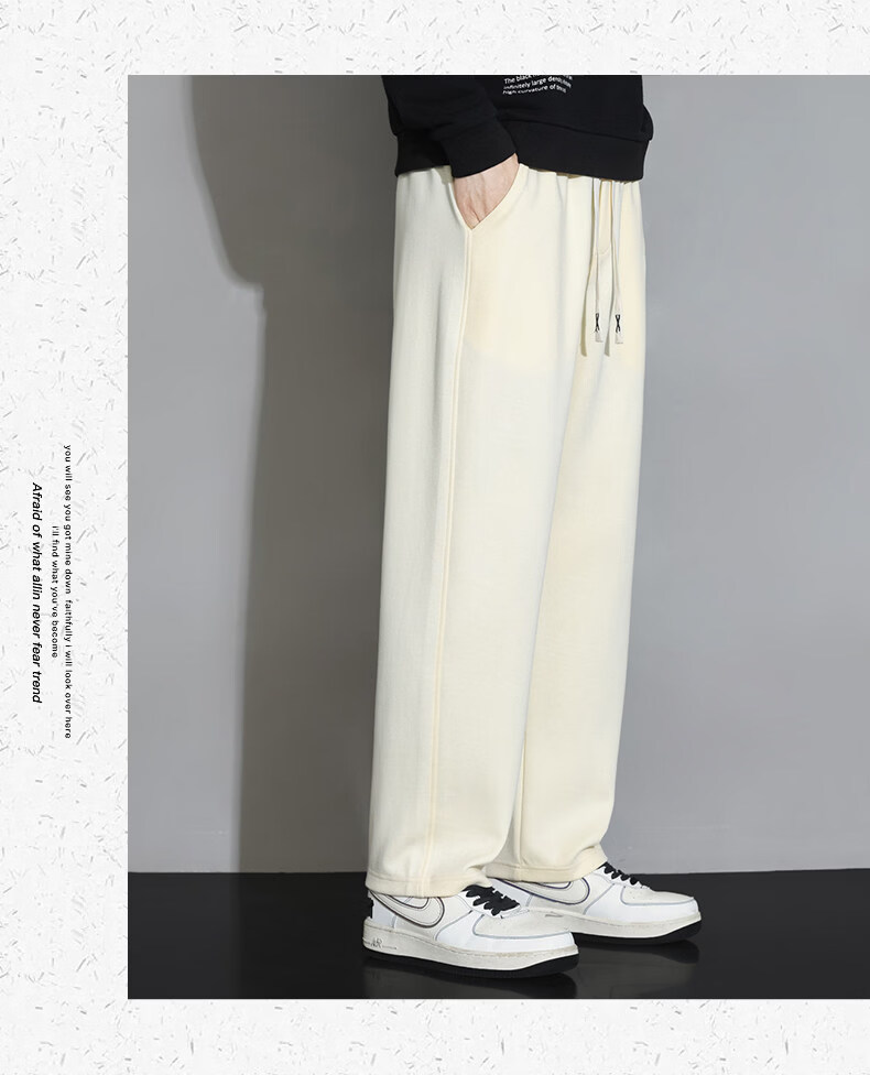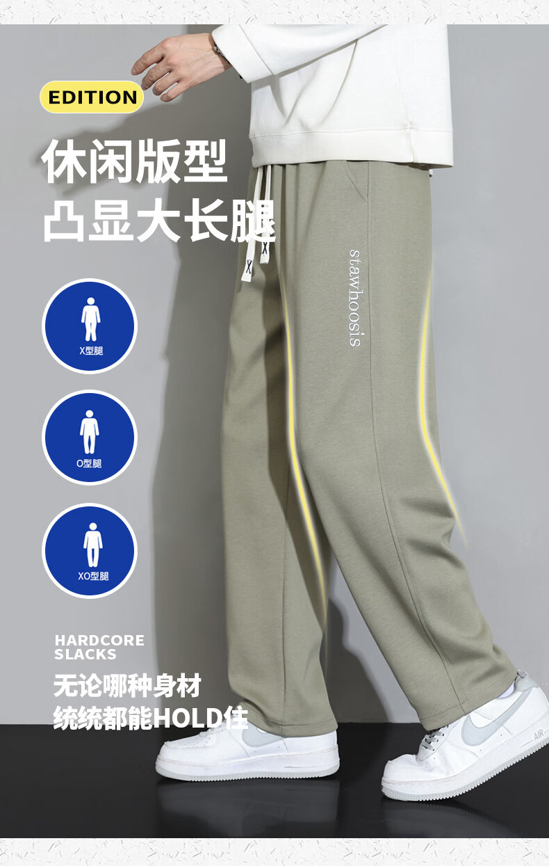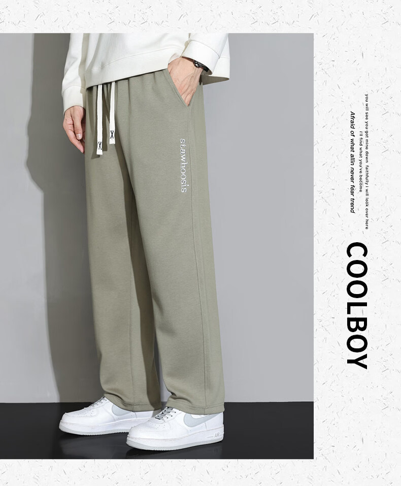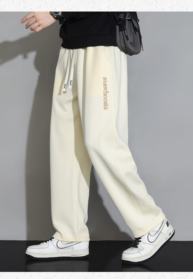 真维斯(Jeanswest)2026直筒刺绣休闲长裤男士春季痞帅运动装宽松舒适男装休闲长裤子 米黄 【舒适柔软】 M 【建议】