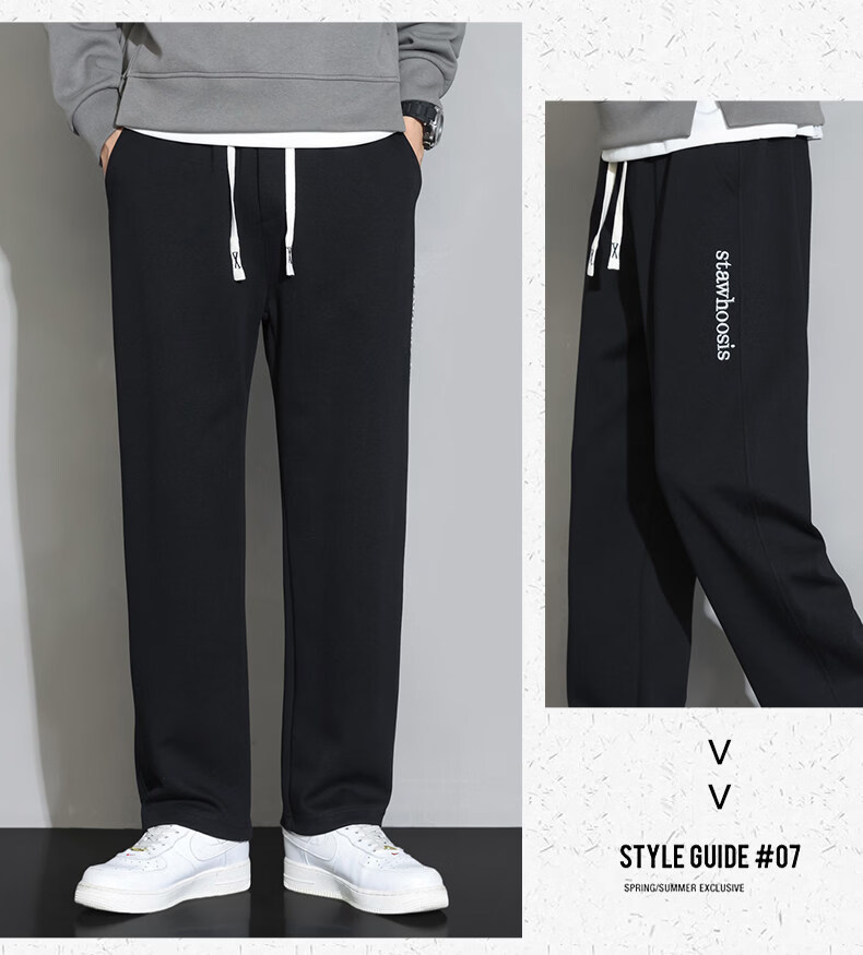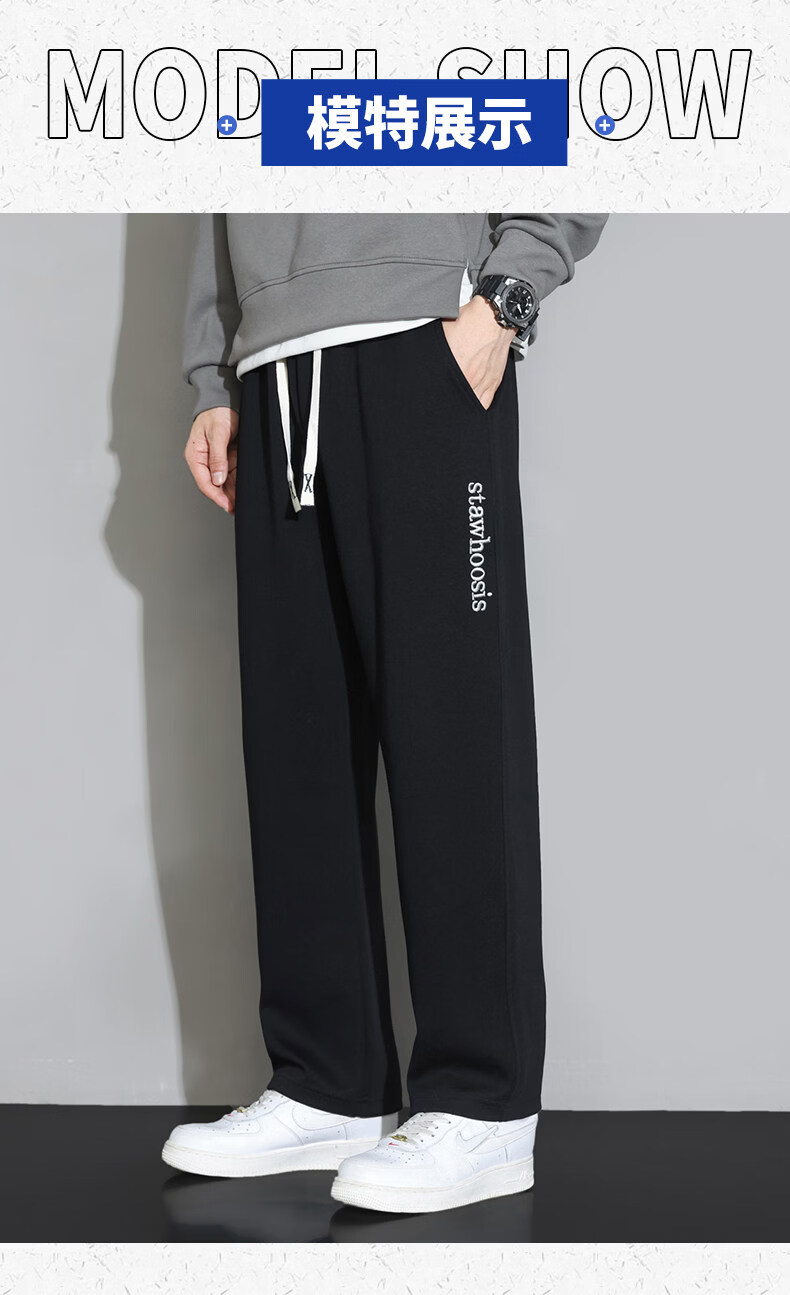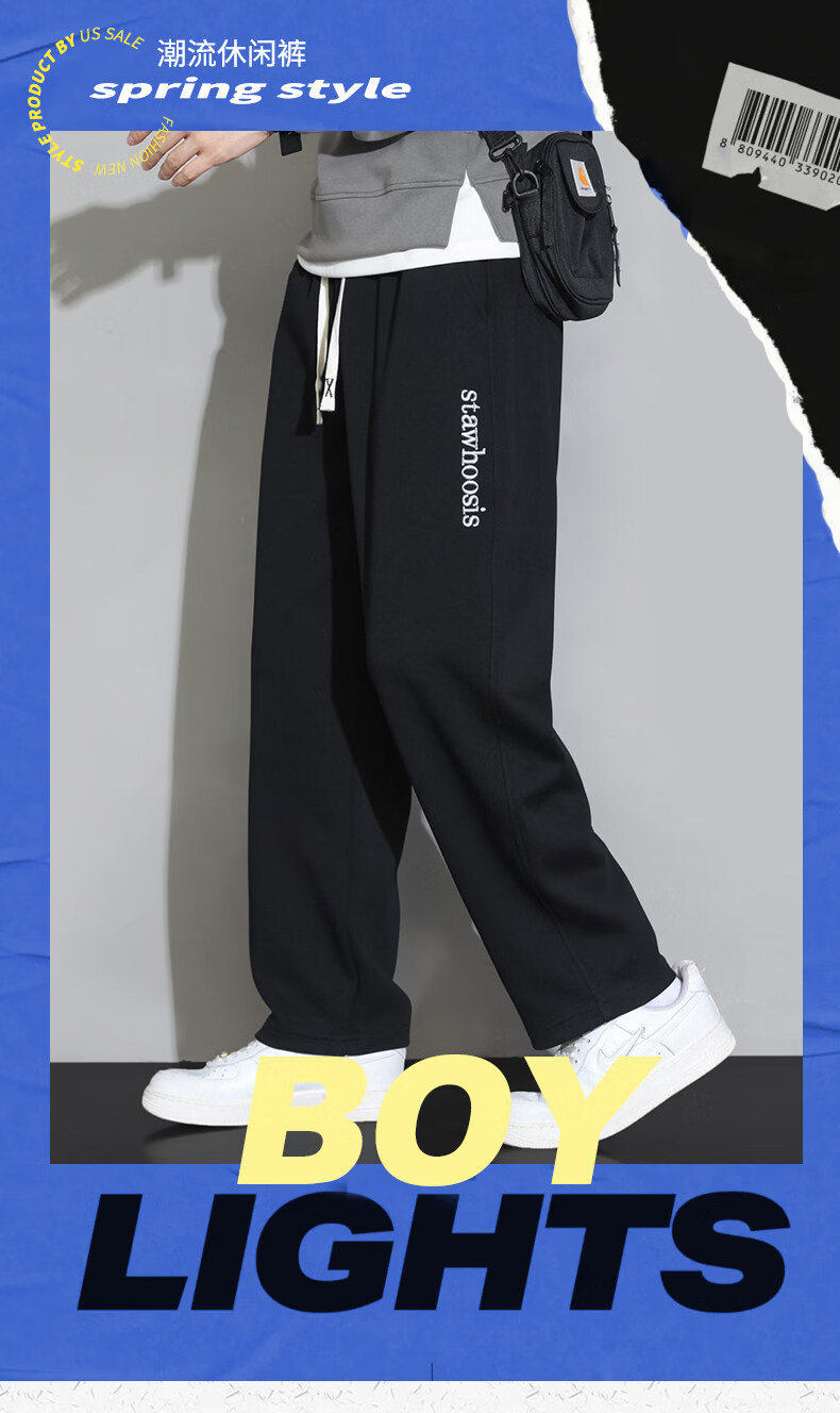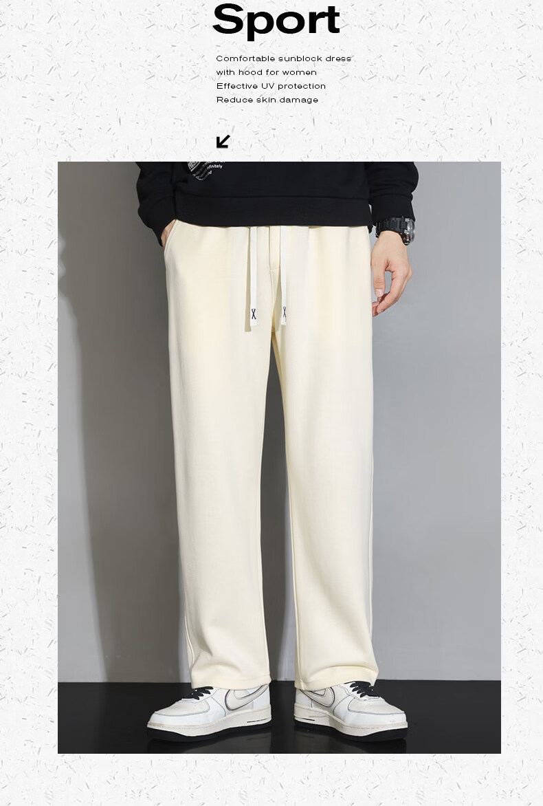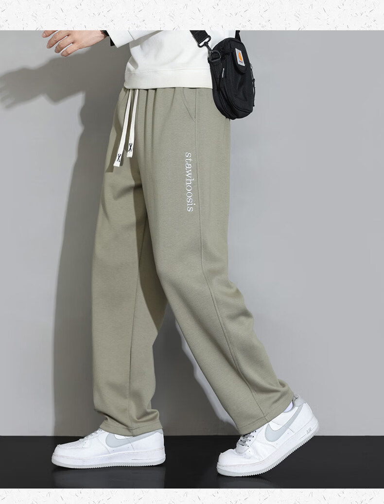 真维斯(Jeanswest)2026直筒刺绣休闲长裤男士春季痞帅运动装宽松舒适男装休闲长裤子 米黄 【舒适柔软】 M 【建议】