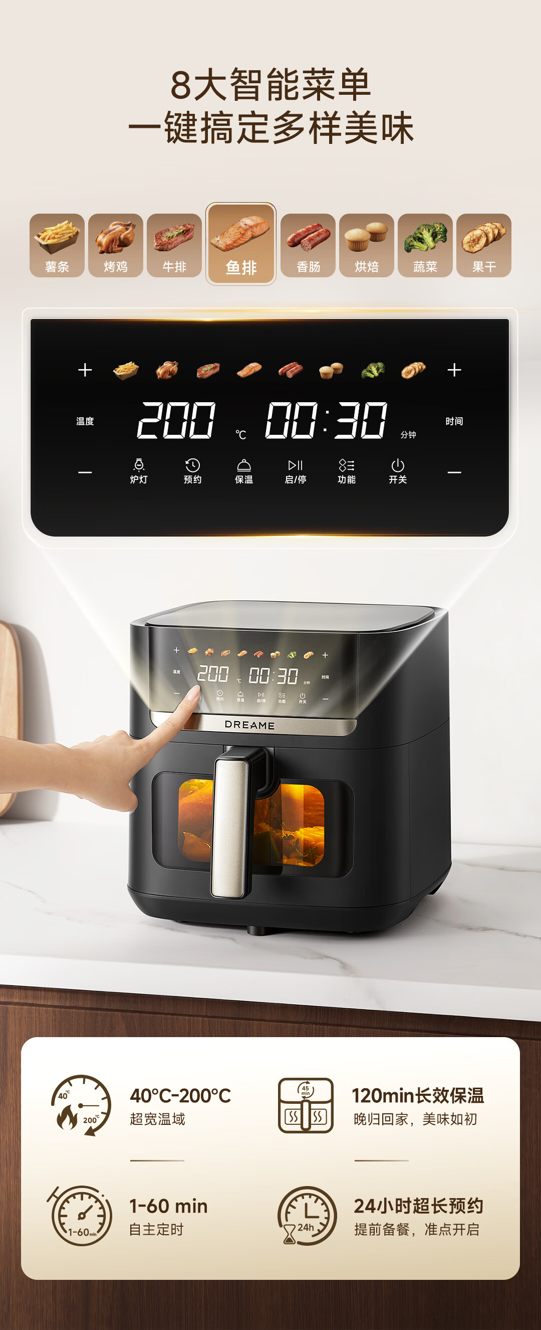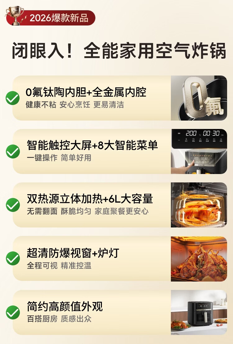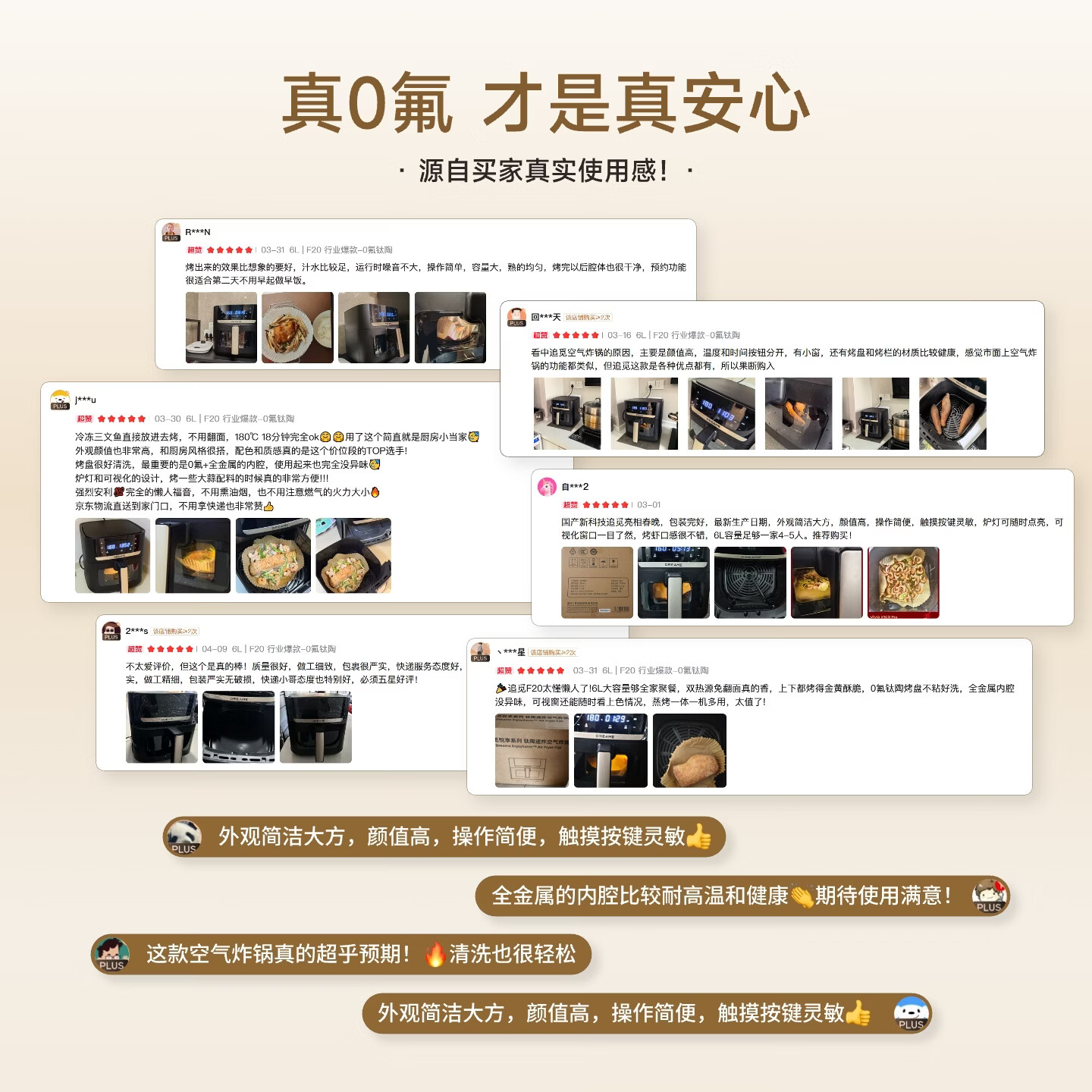 追觅空气炸锅蒸烤一体 F20 家用大容量 6L 双热源免翻面 0氟钛陶烤盘 全金属内腔 可视大窗 2026年新款