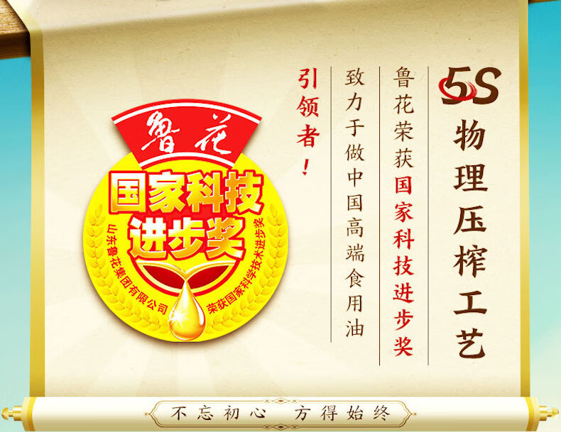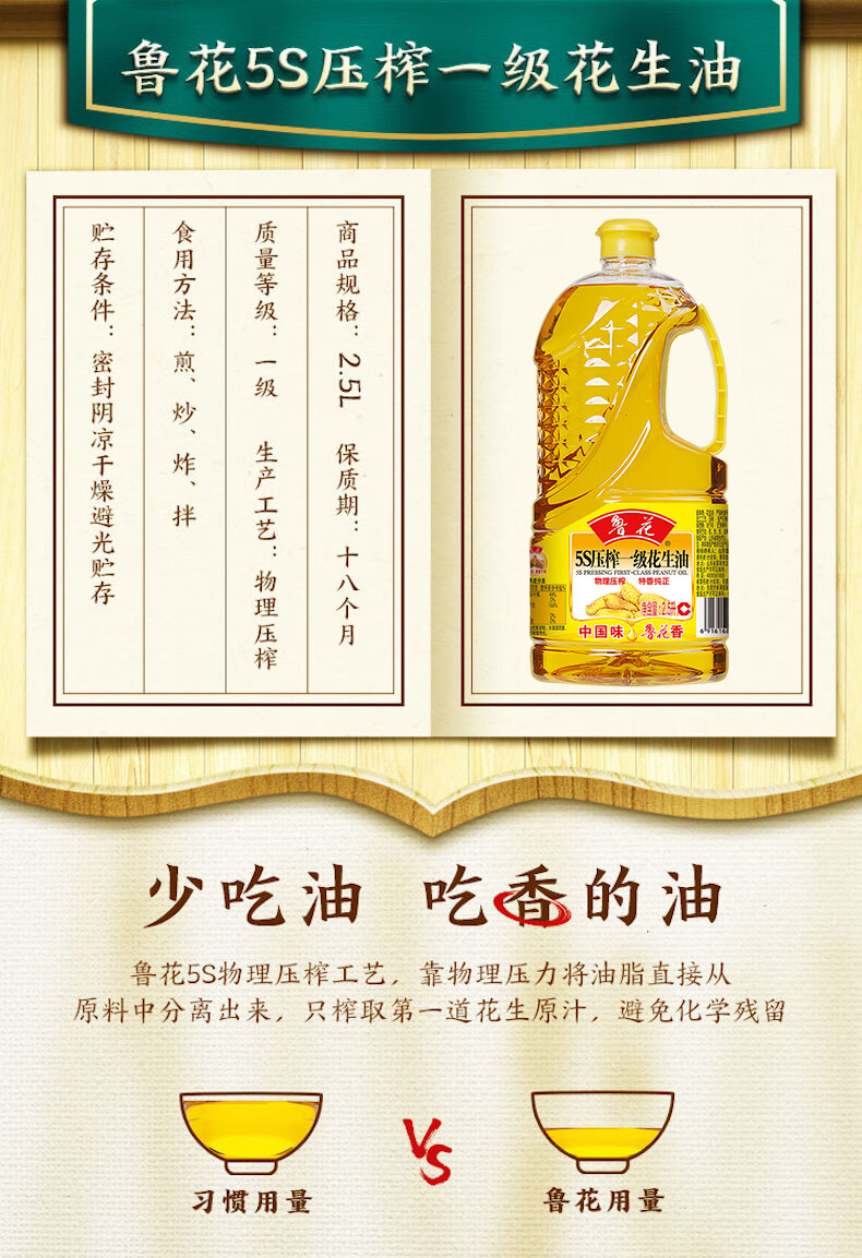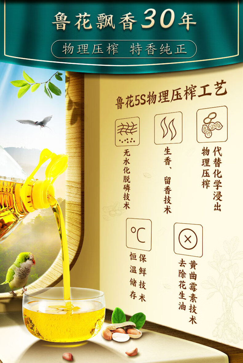 鲁花 【保真花生油】食用油 5S 物理压榨 压榨一级 花生油2.5L