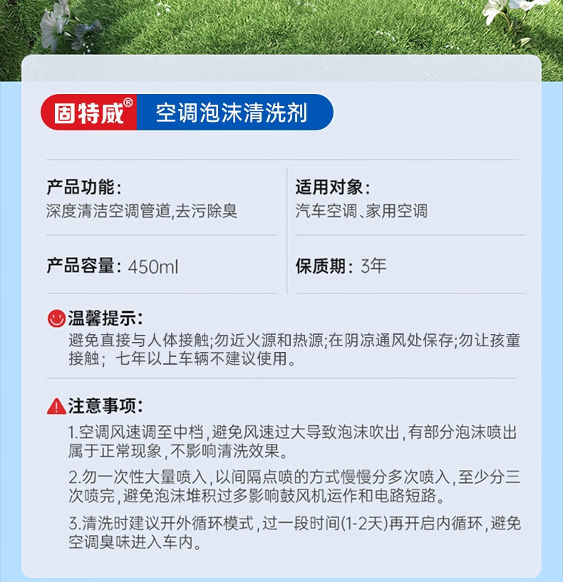 固特威汽车空调清洗剂车内空调除味杀菌剂空调清洁车居两用总容量860ML