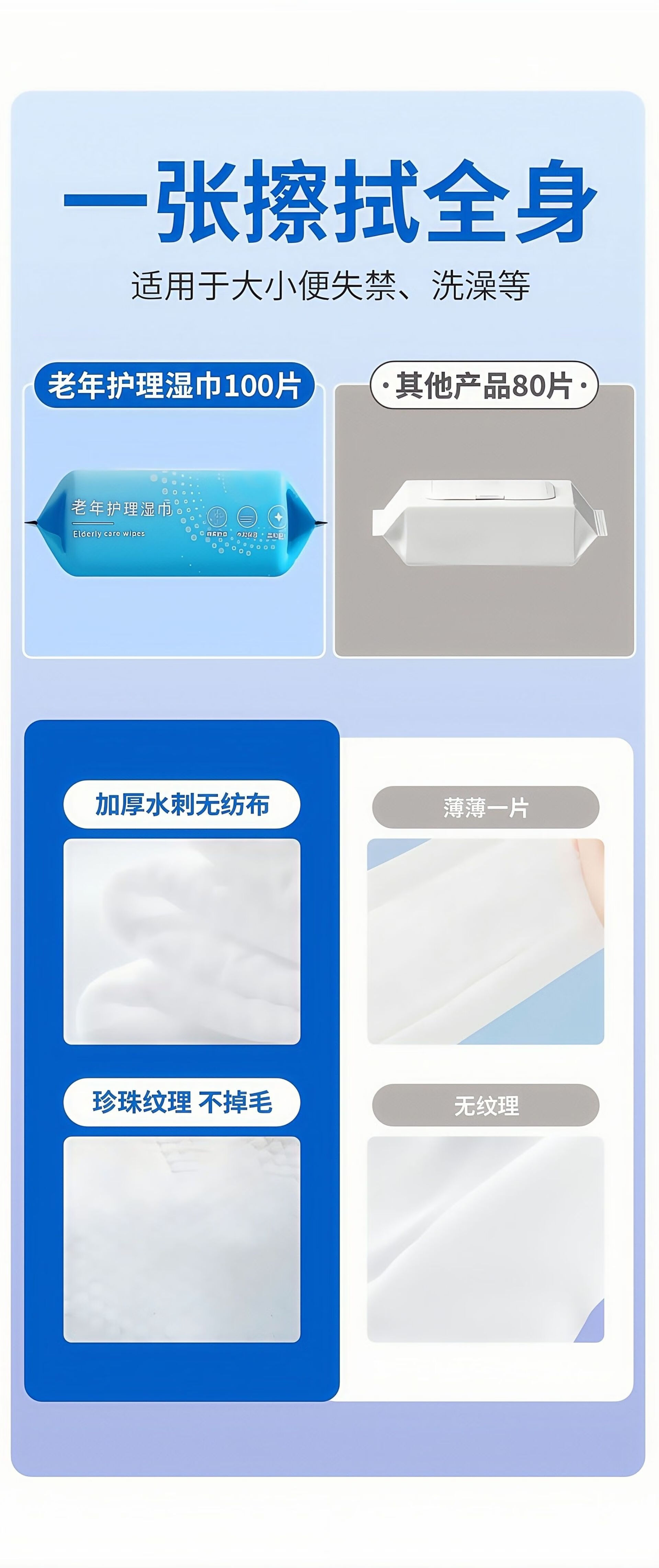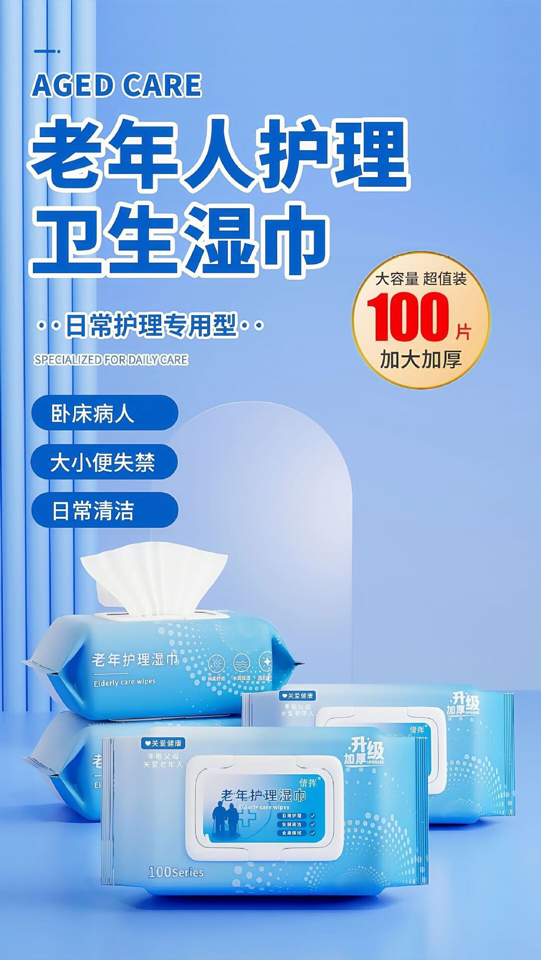 【加大加厚100抽】加大湿巾成人湿巾成人擦屁股专用湿纸巾零酒精 1包