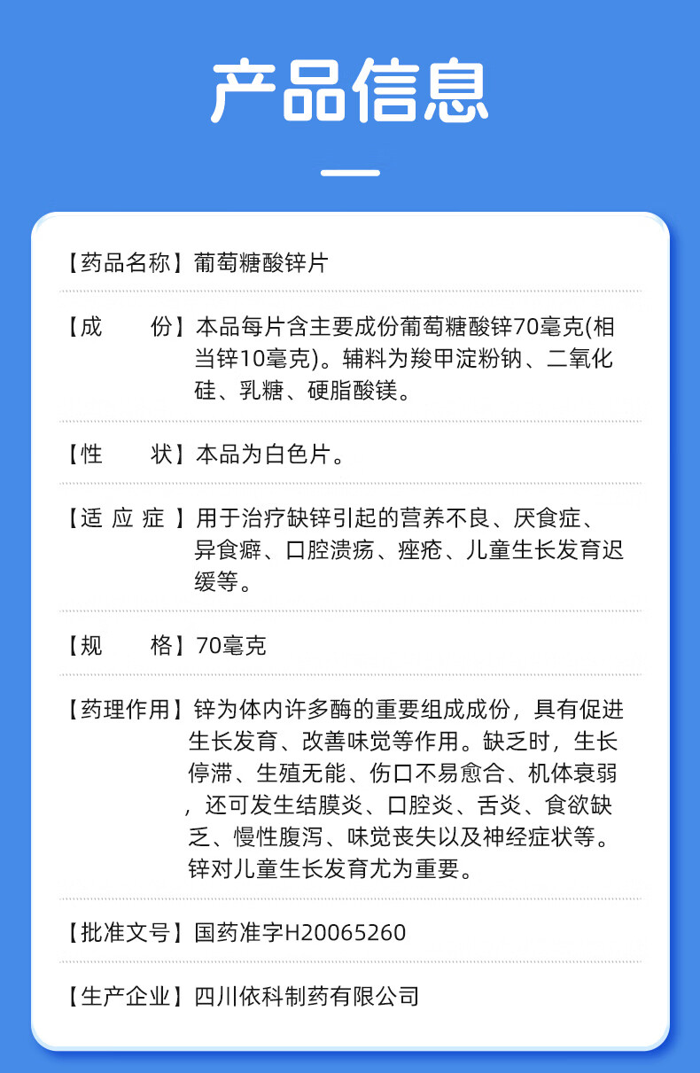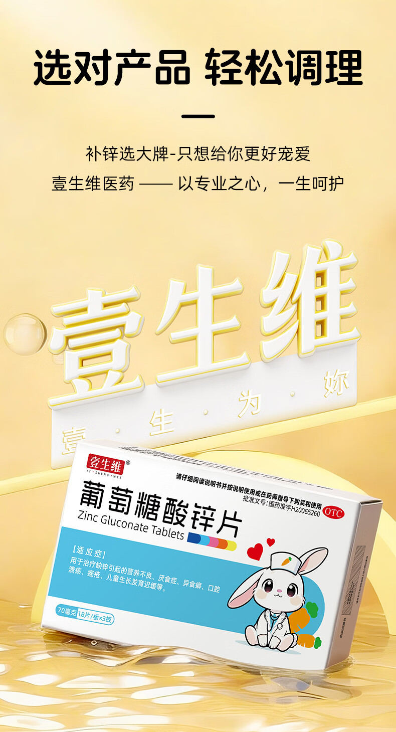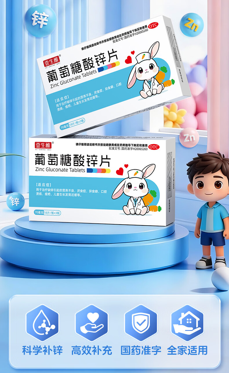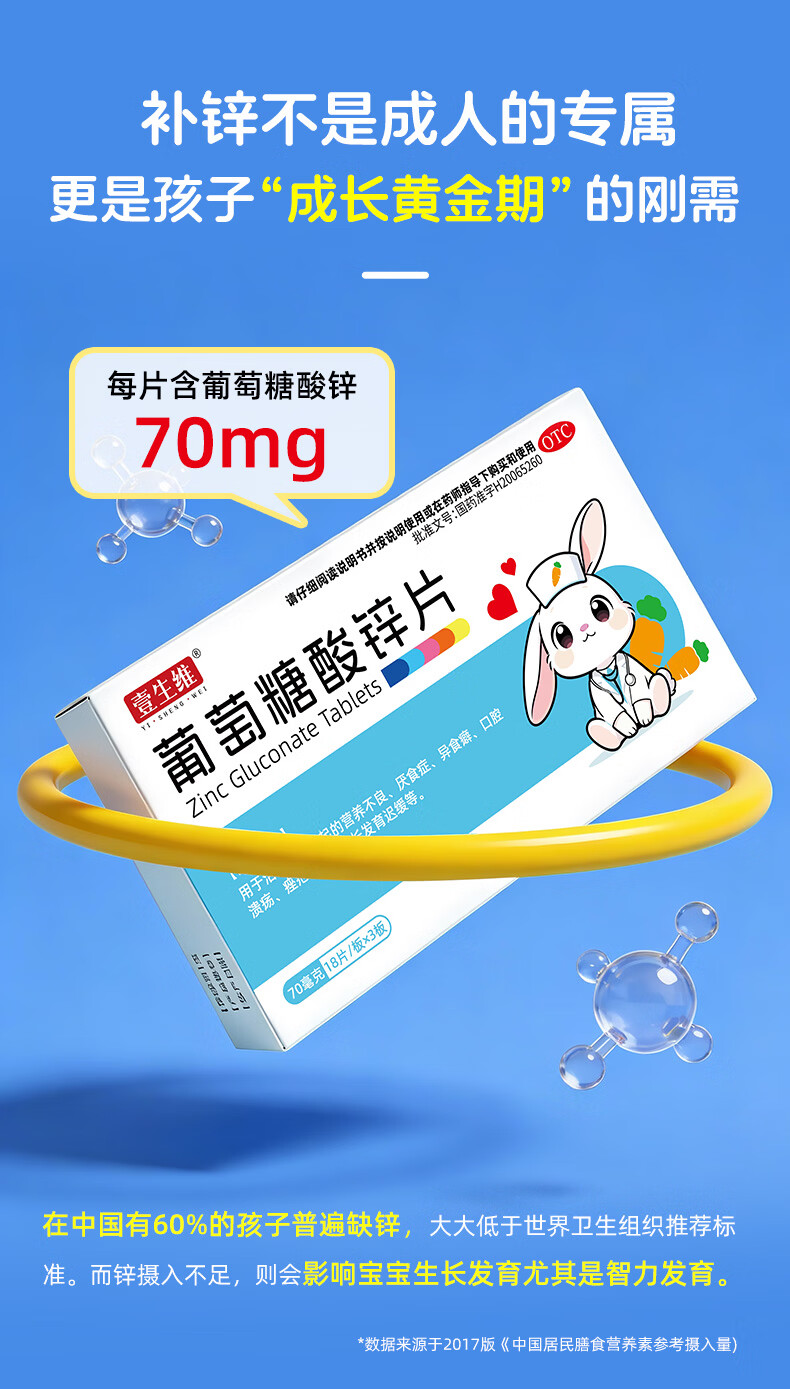 [壹生维]葡萄糖酸锌片 70mg*54片 5盒装 儿童成人补锌 治疗缺锌引起营养不良厌食口腔溃 痤疮生长发育迟缓国药准字otc 90天用量