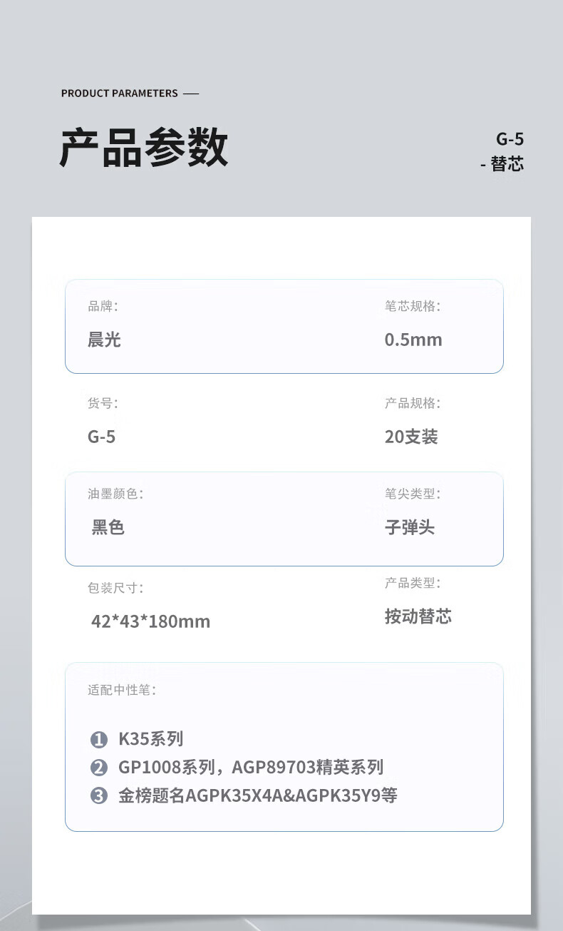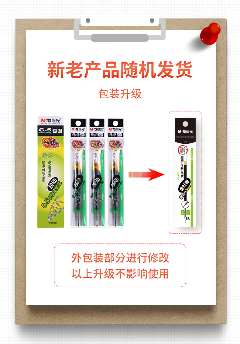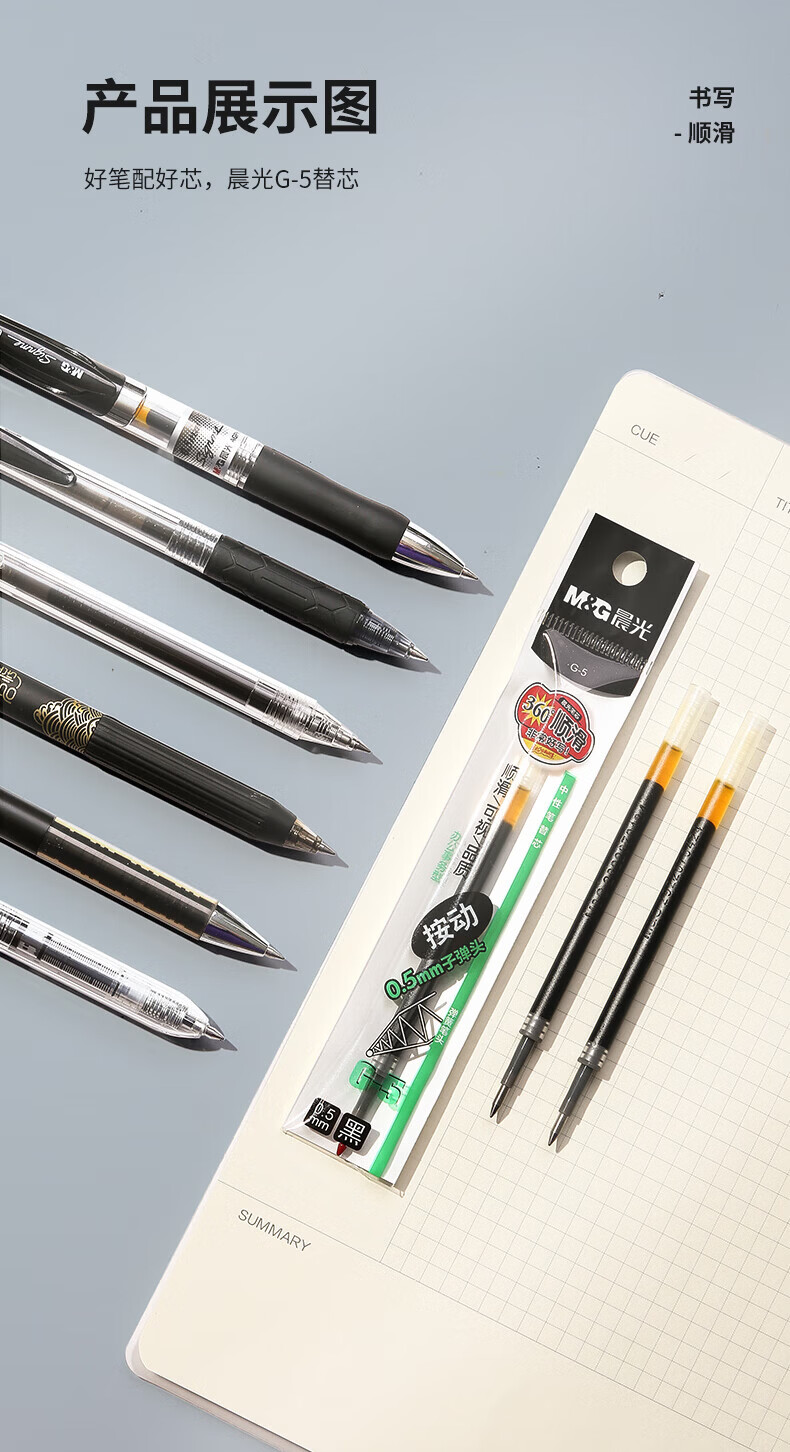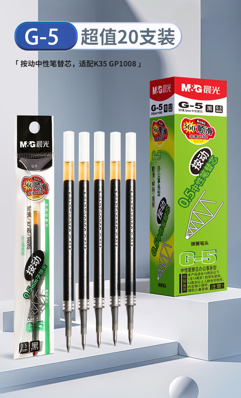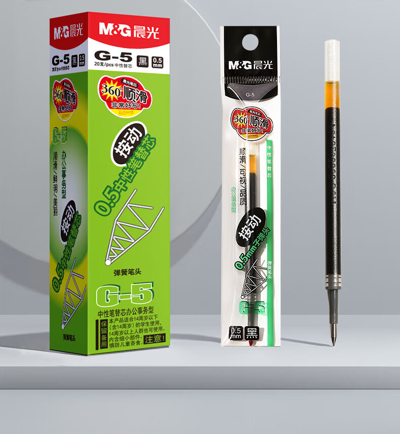 晨光(M&G)文具按动笔芯中性笔芯G-5大容量水笔替芯0.5mm黑色k35优品替芯子弹头全针管弹簧g5按压式