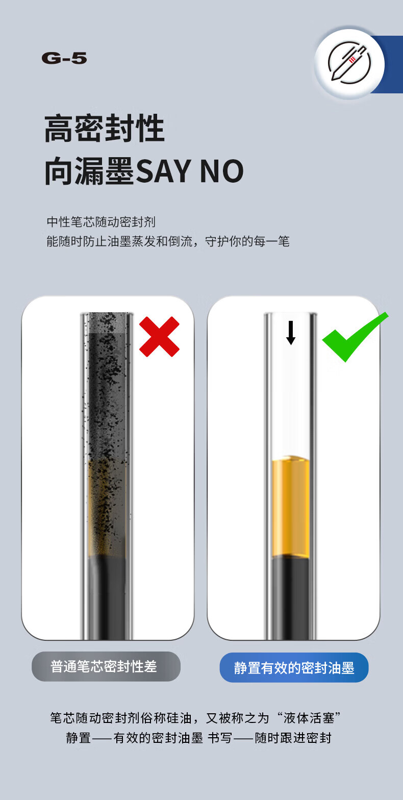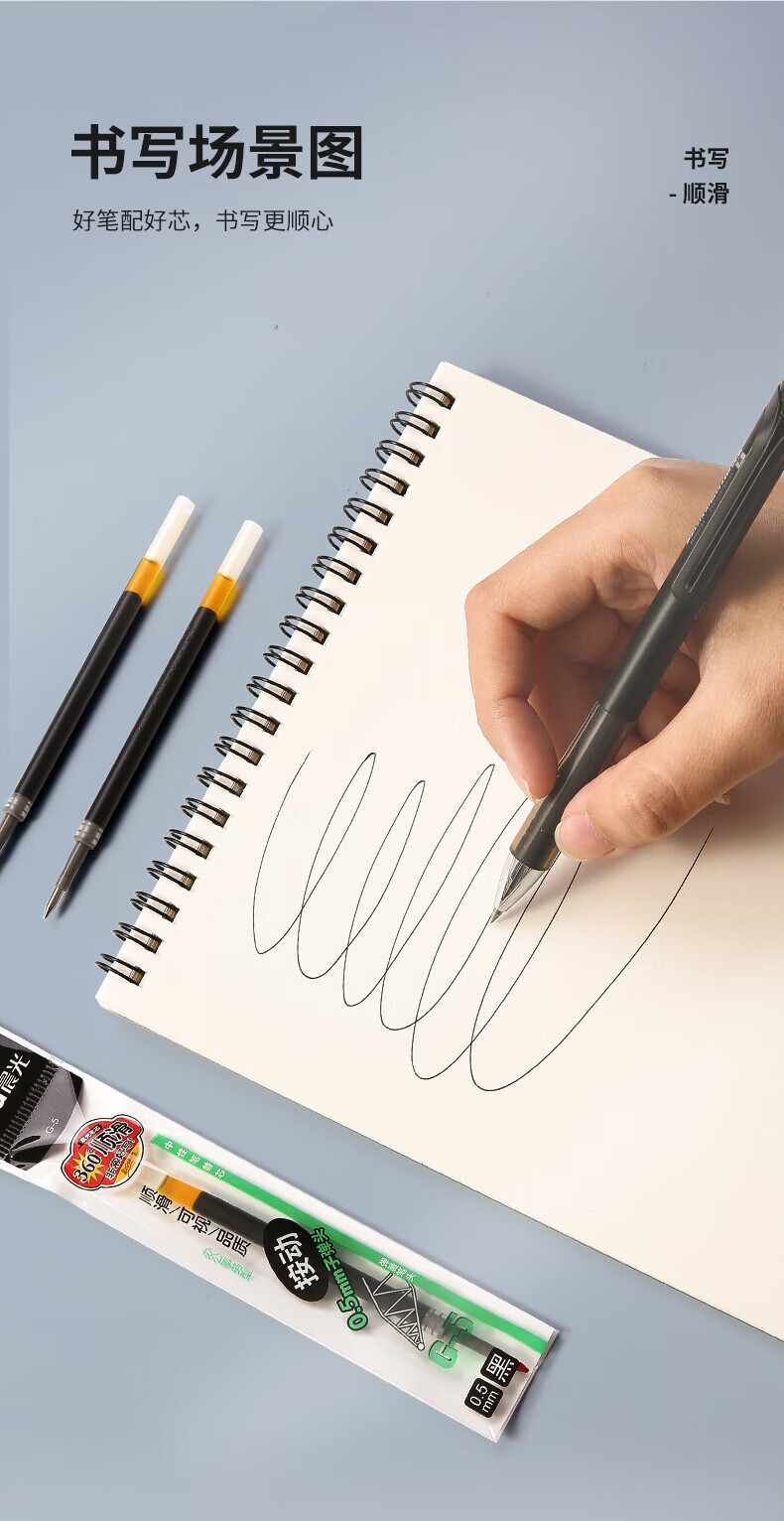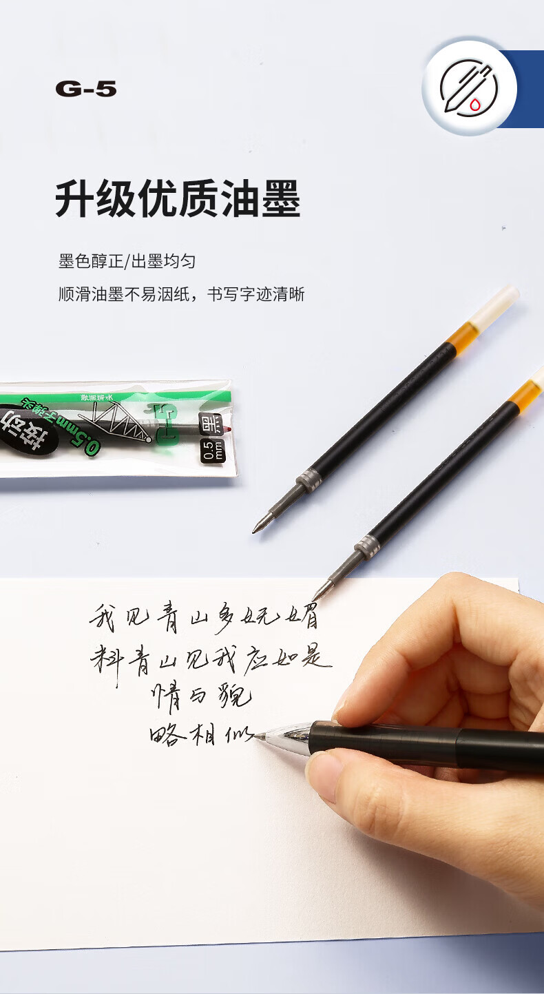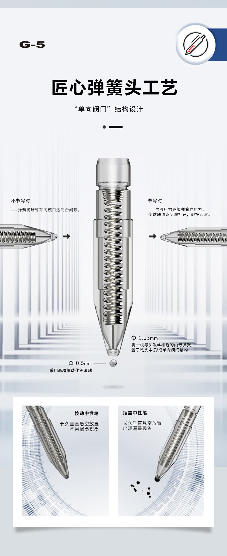 晨光(M&G)文具按动笔芯中性笔芯G-5大容量水笔替芯0.5mm黑色k35优品替芯子弹头全针管弹簧g5按压式