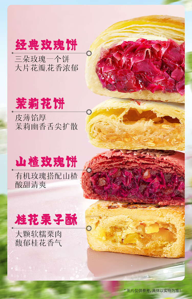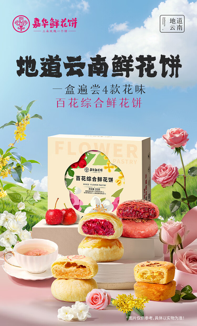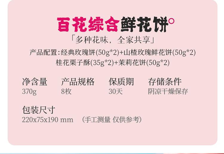 嘉华鲜花饼百花综合礼盒370g零食糕点早餐点心玫瑰茉莉山楂桂花栗子酥