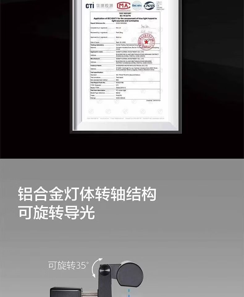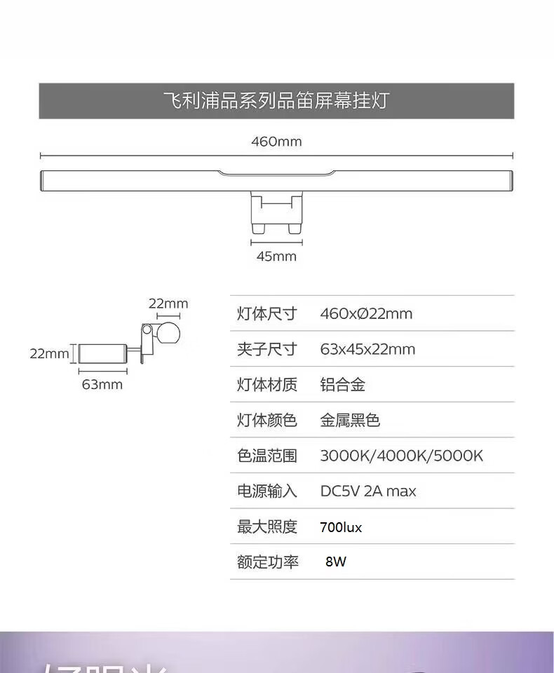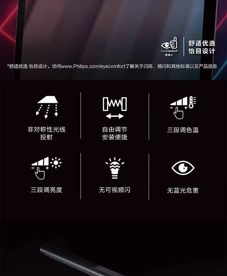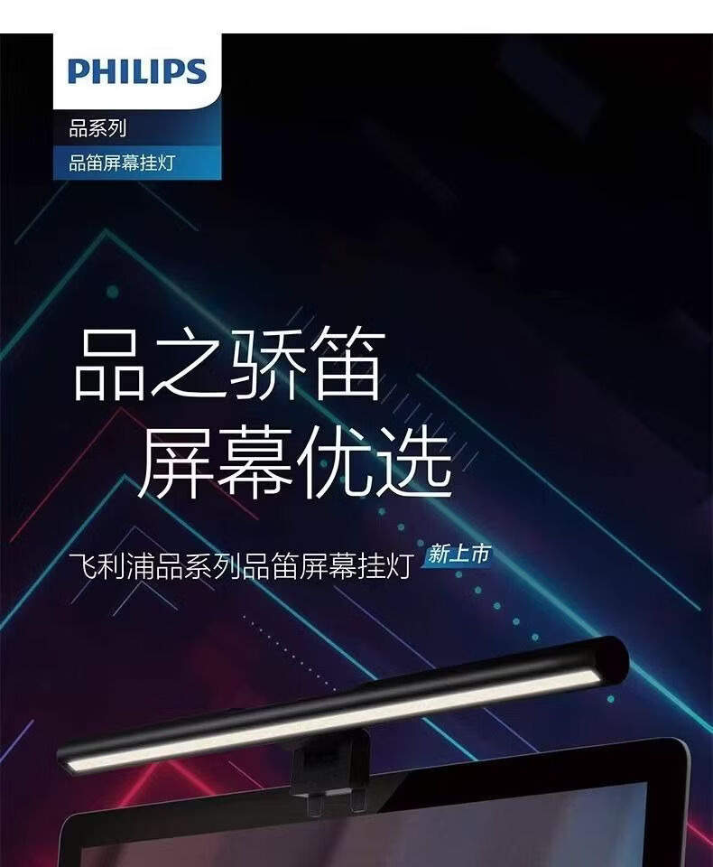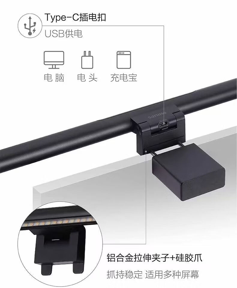 飞利浦(PHILIPS)品笛电脑屏幕显示器挂灯书桌挂屏灯补光灯屏幕台灯 66219 S3品笛I代屏幕挂灯