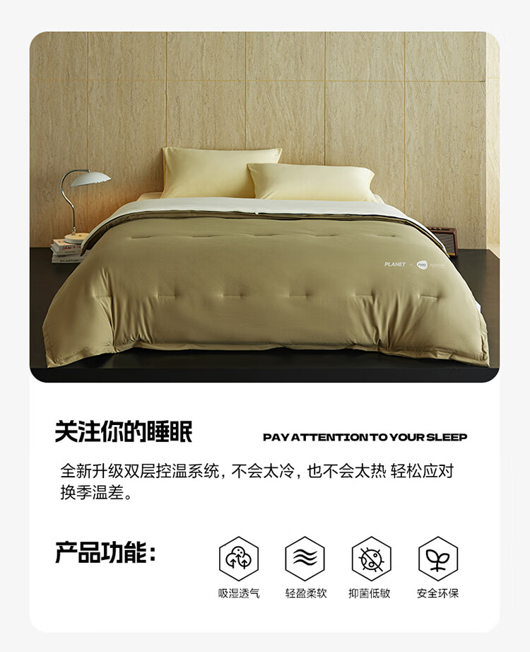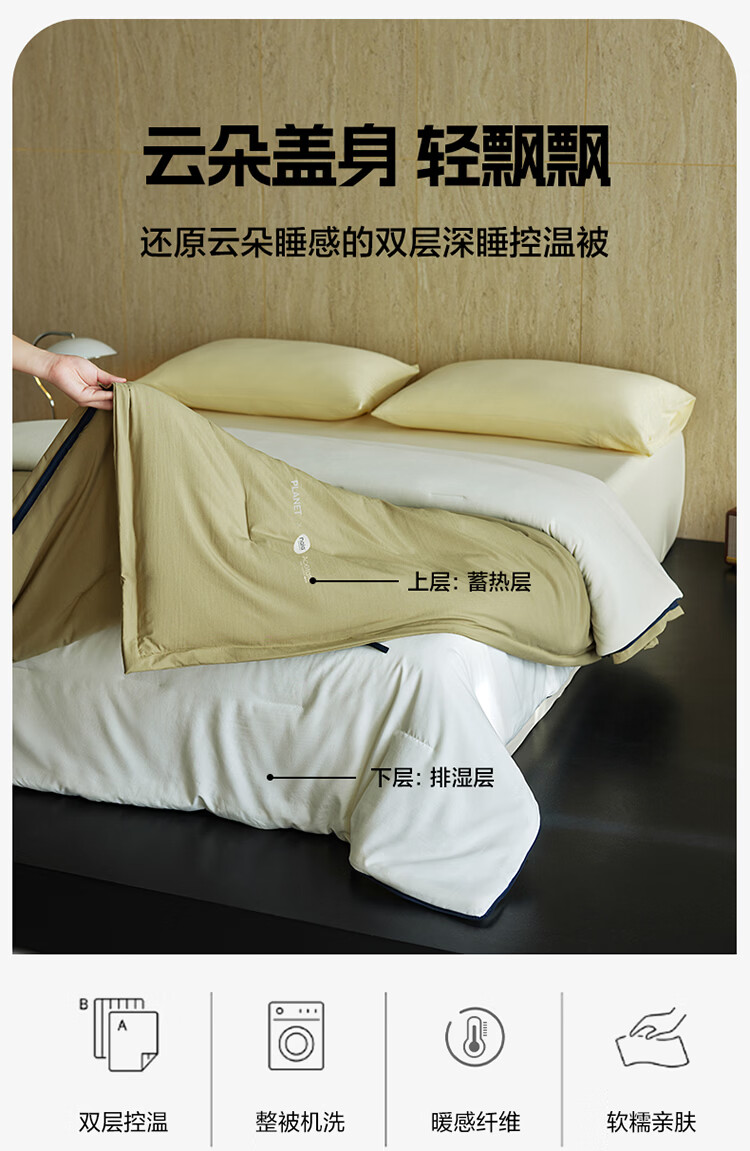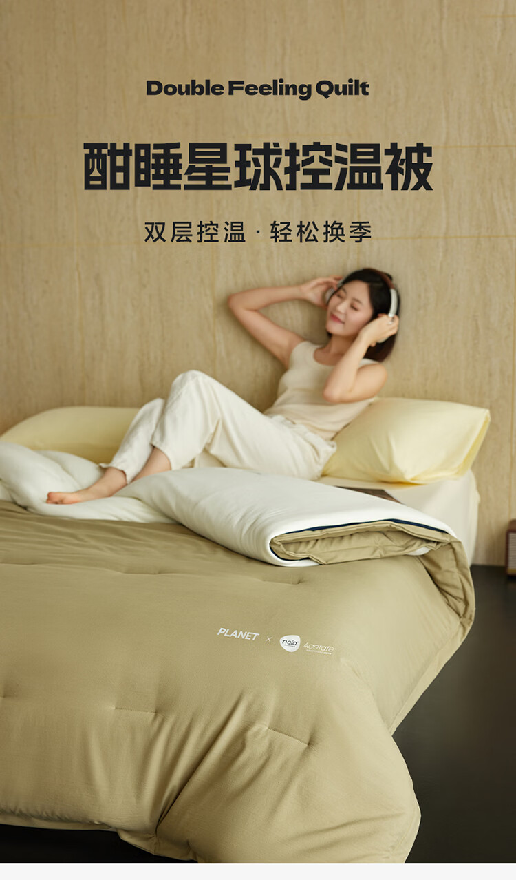 ROLAND LIVE四季被酣睡星球双层深睡控温被A类加厚秋冬被可拆卸懒人被免被套 LFS 酣睡星球双层控温被-苔原绿 150cm*200cm【约5.9斤】