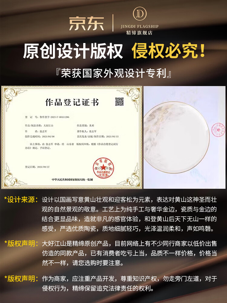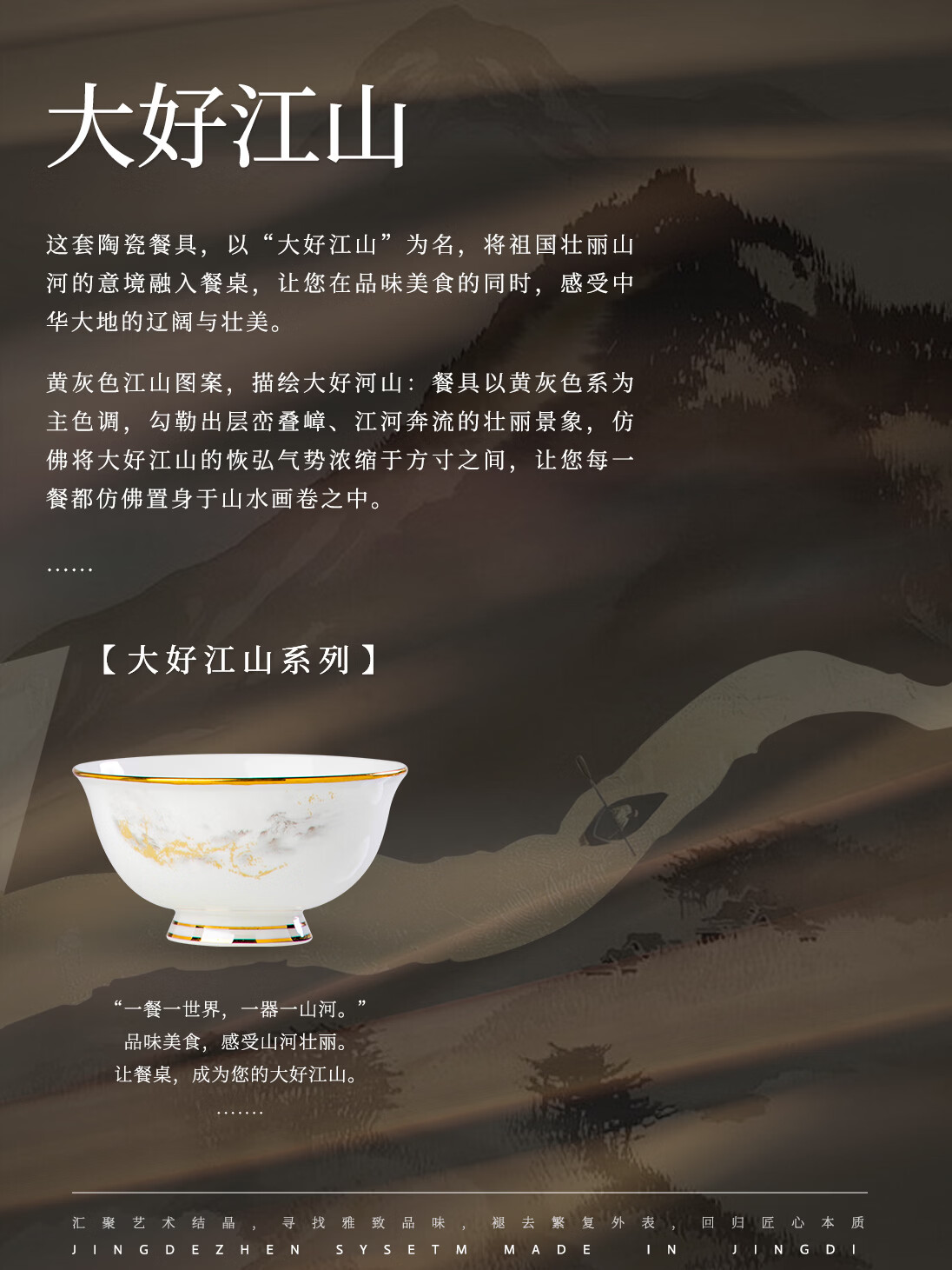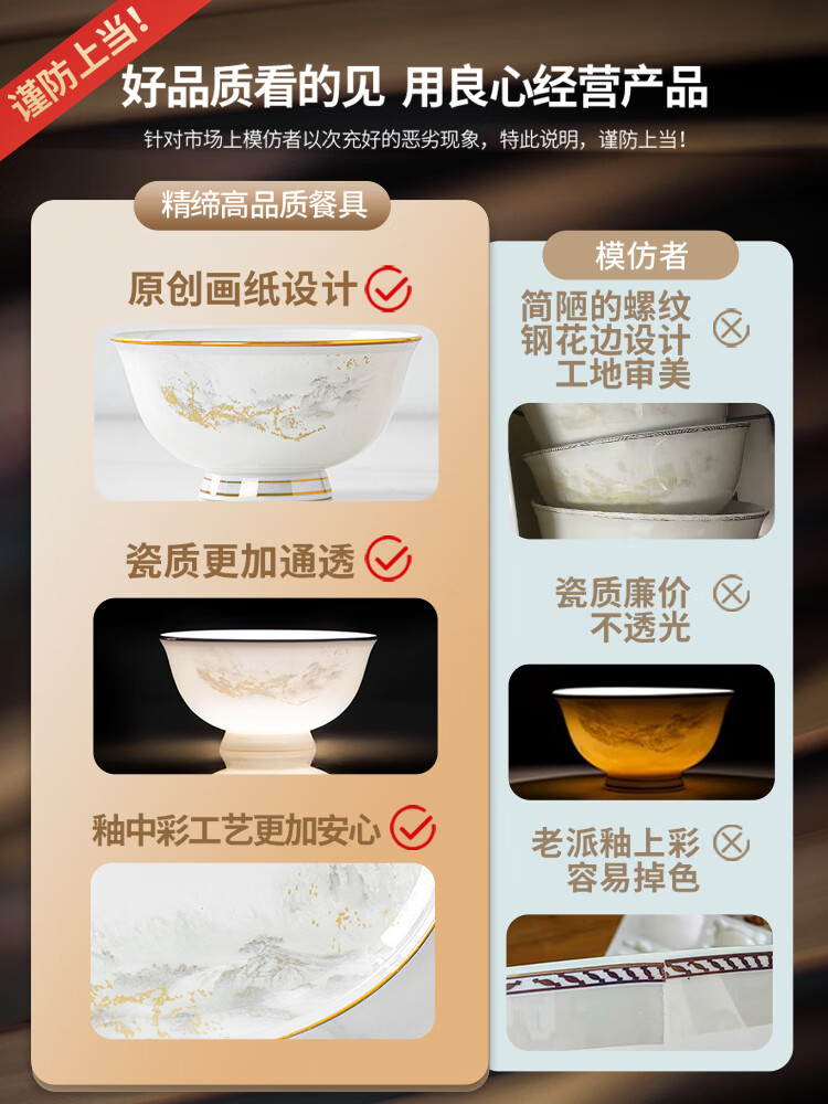 精缔陶瓷JINGDI景德镇家用新款碗碟套装中式高颜值陶瓷骨瓷餐具套装碗盘乔迁新居 【超值性价比】大好江山富贵煲配置 86件套