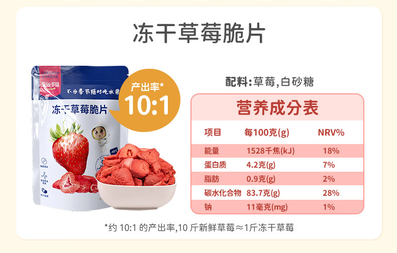 果仙多维15g冻干水果脆片宇航冻干 草莓1袋