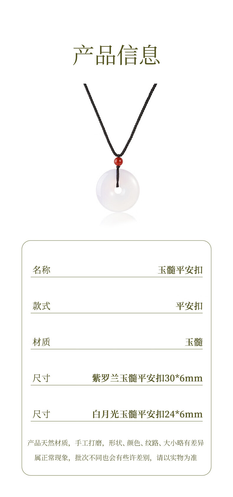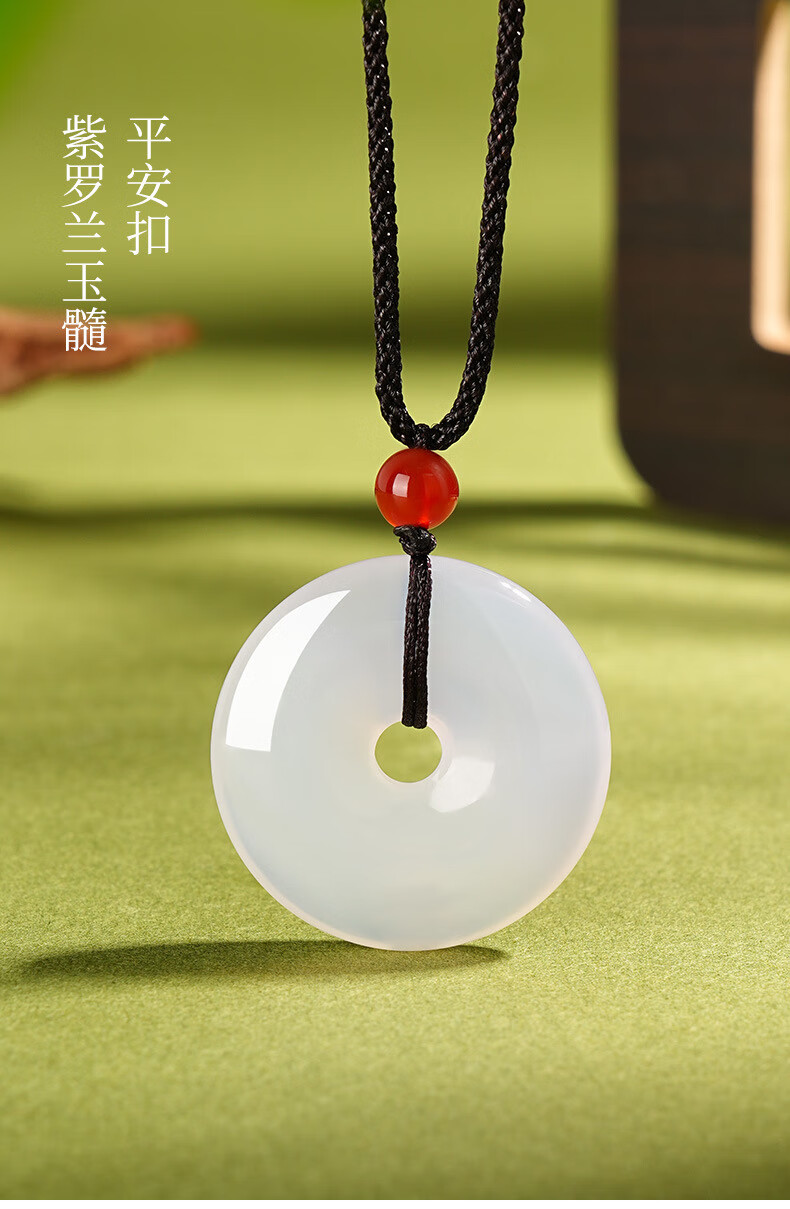 DOMAIWINS冰种玉髓玛瑙平安扣吊坠紫罗兰白月光玉石男女款饰品挂件玉佩 【白月光玉髓平安扣】24*6mm