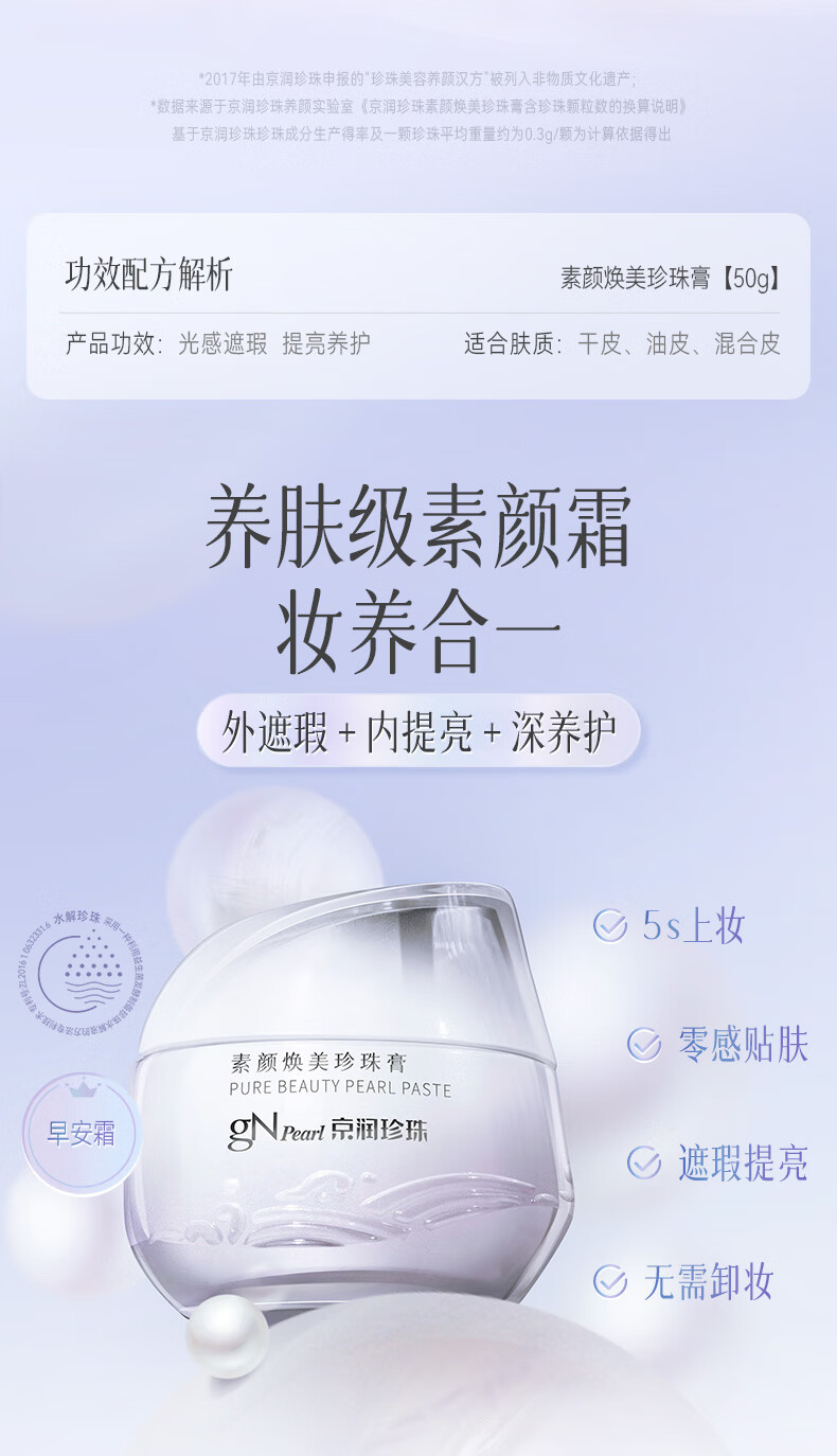 京润珍珠(gNPearl) 妆前隔离遮瑕懒人面霜一抹焕亮早安霜 素颜霜 贵妇膏 素颜焕美珍珠膏1.0版50g*2