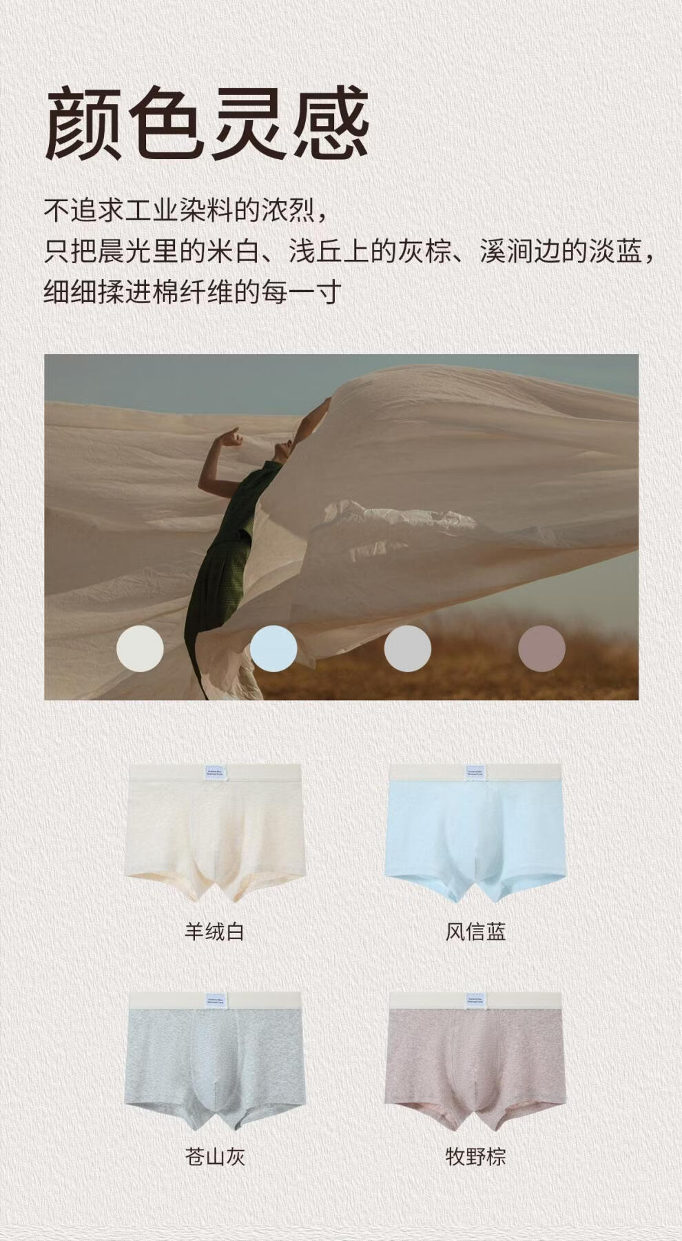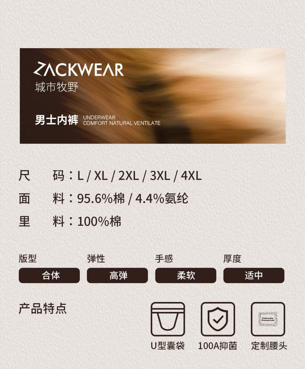 Zackwear色纱纯棉100A底档男士内裤男生款平角四角短裤送男友父亲礼物 牧野棕+羊戎白+风信蓝+苍山灰 2XL