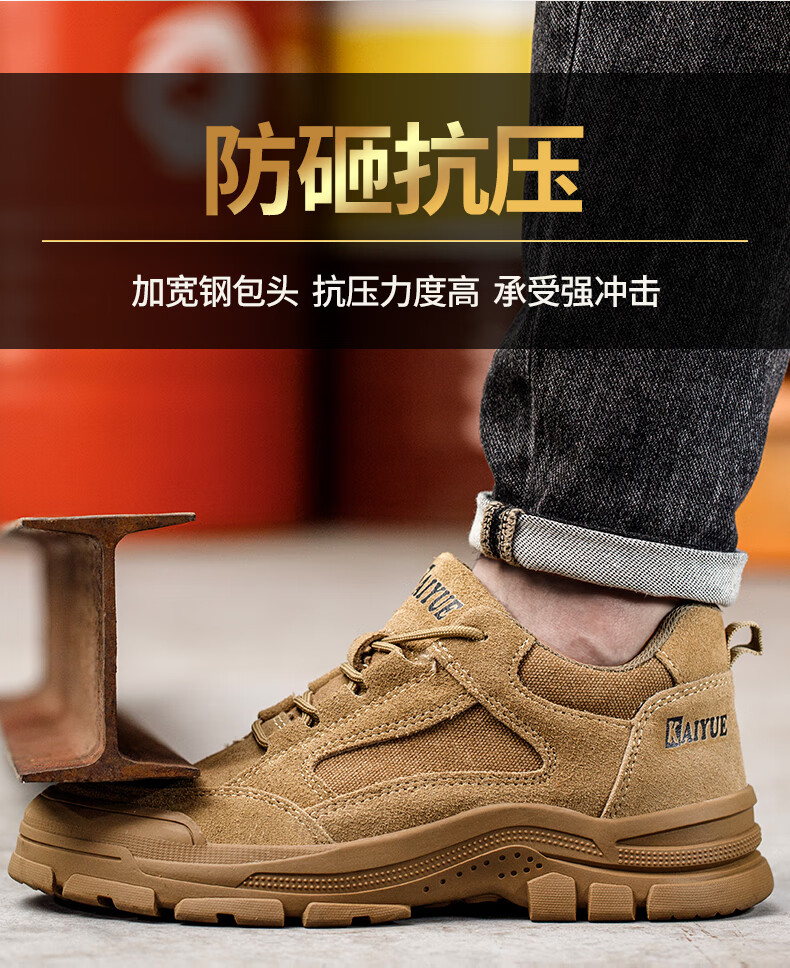 KINGXIAOJING德国劳保鞋全牛皮钢头防砸防刺穿焊工耐磨透气安全工作鞋 24k2低帮防砸防刺 【升级牛皮实心底】 43
