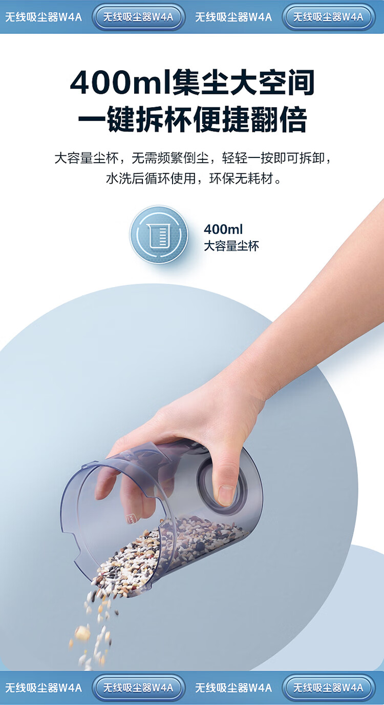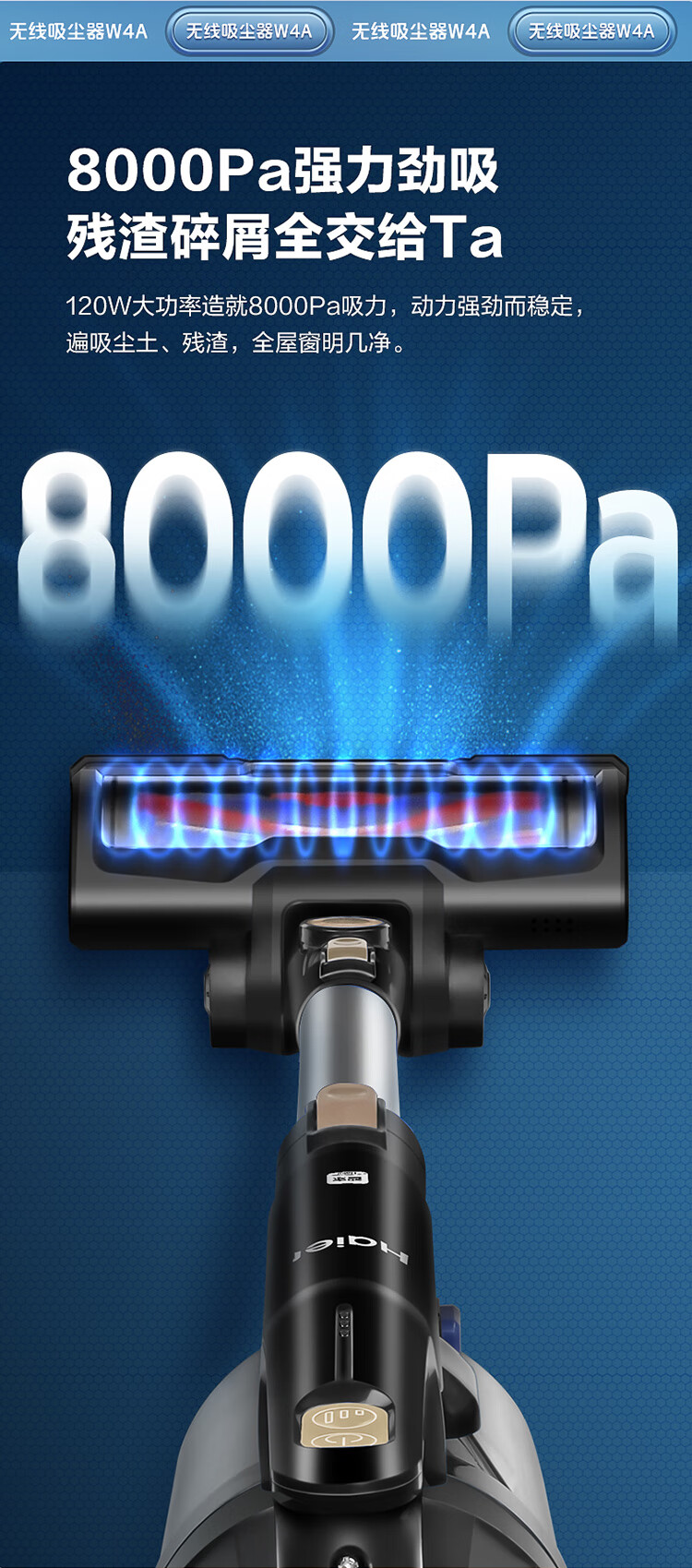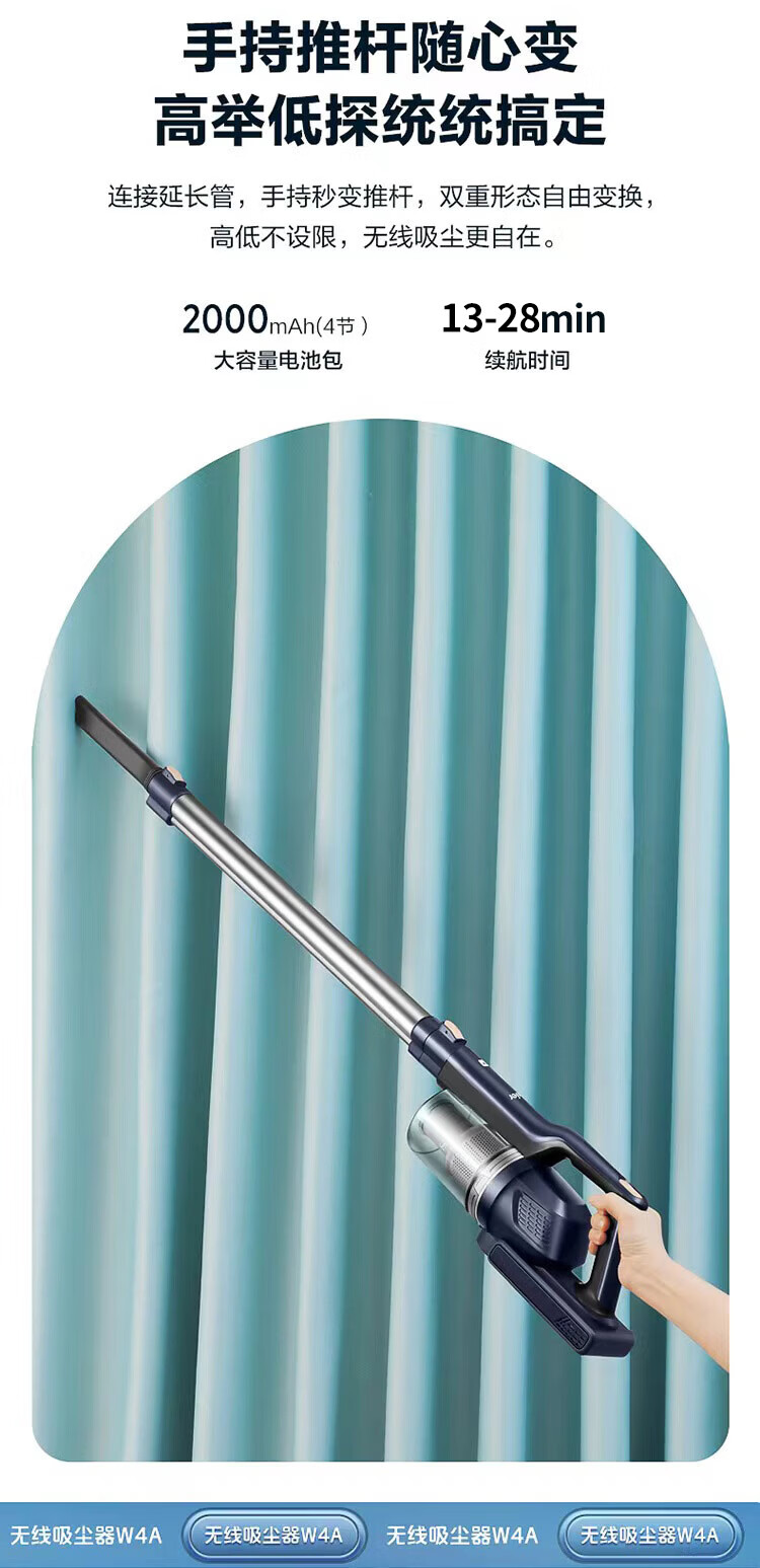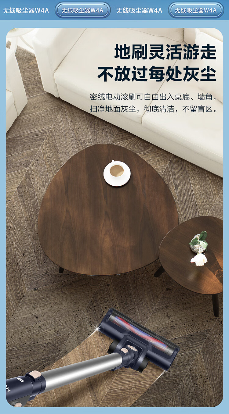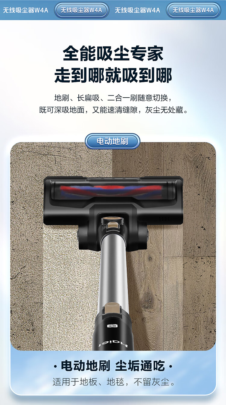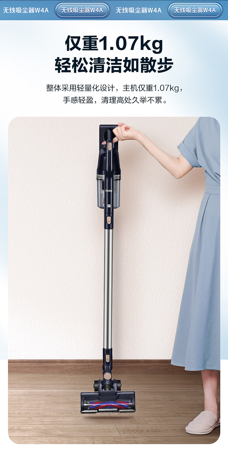 海尔(Haier)家用吸尘器卧室客厅无线手持吸尘器大吸力电池续航多功能大功率除尘 HZ-W4A