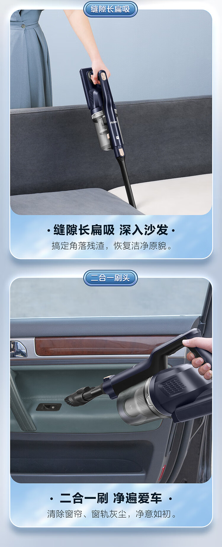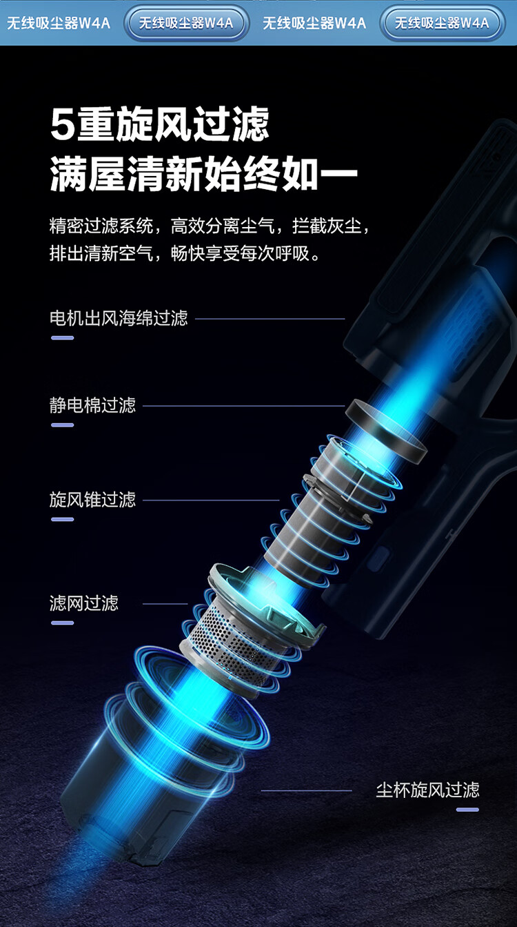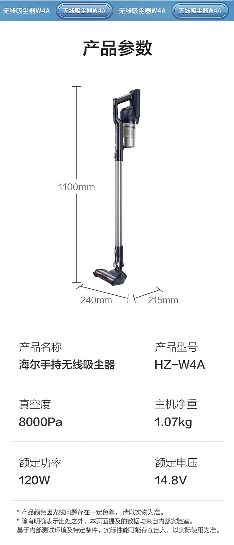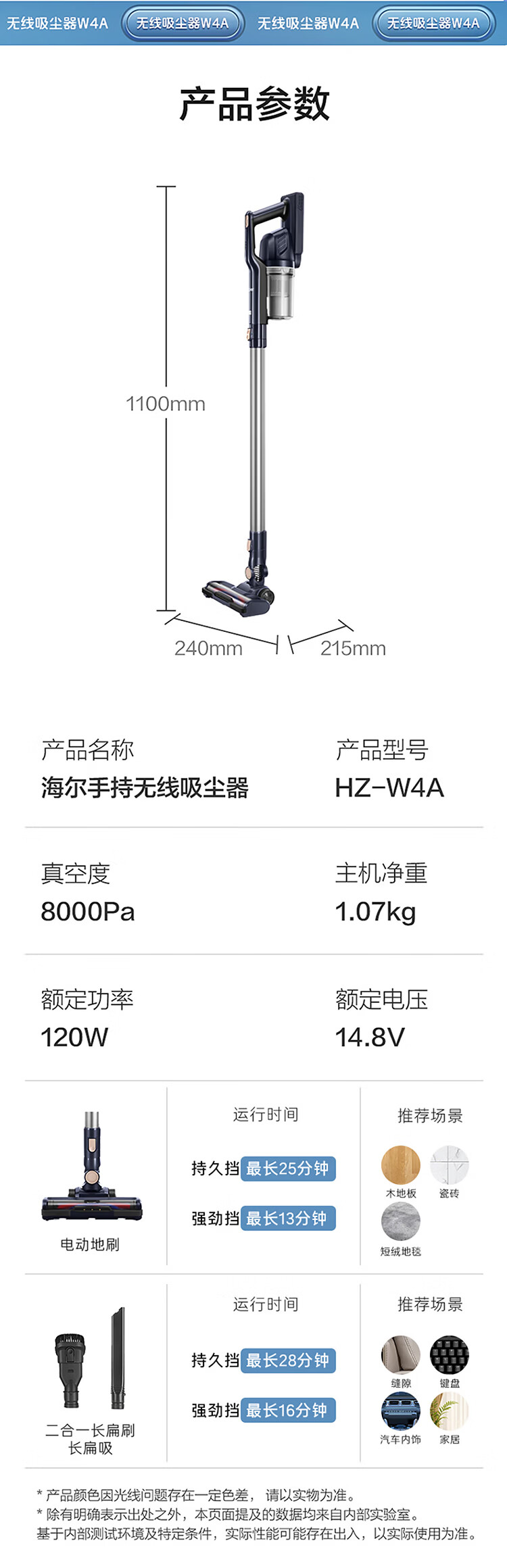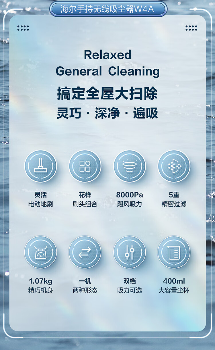海尔(Haier)家用吸尘器卧室客厅无线手持吸尘器大吸力电池续航多功能大功率除尘 HZ-W4A