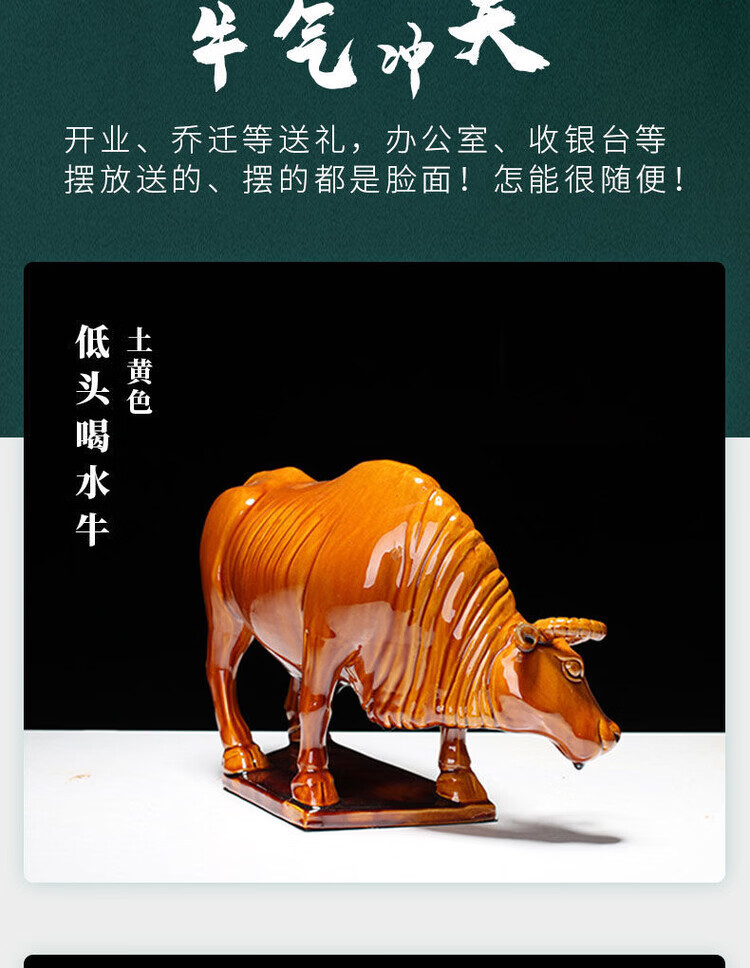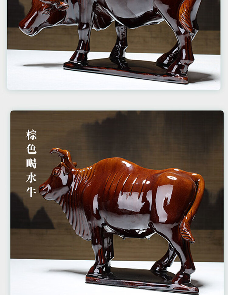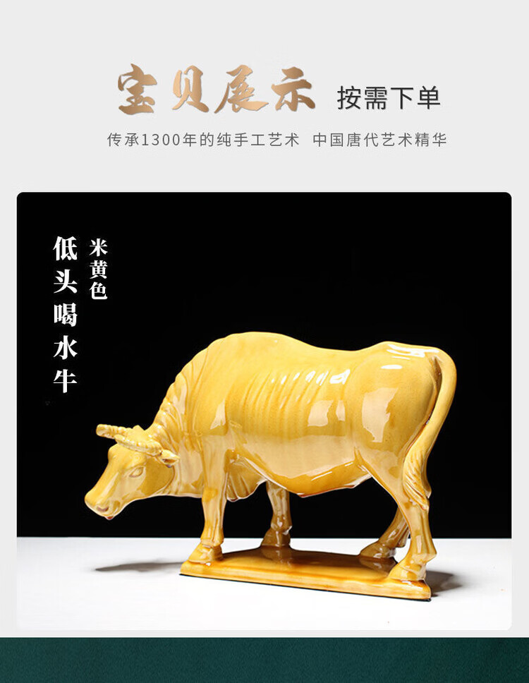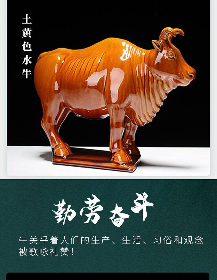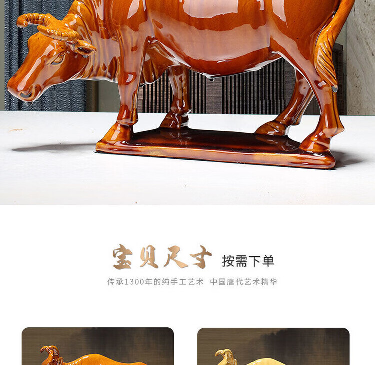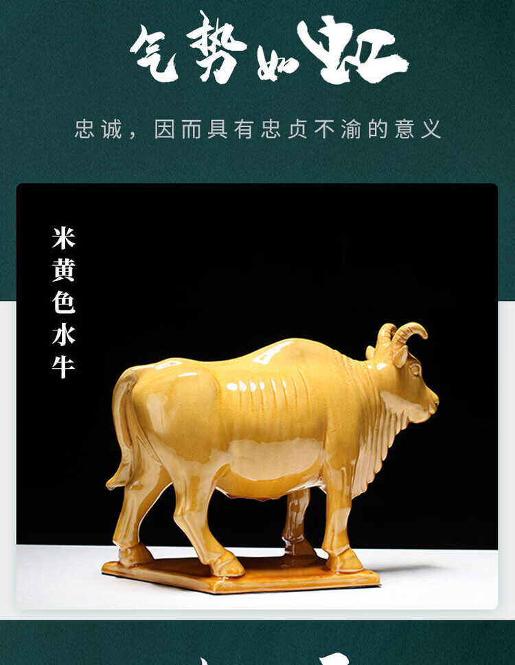 陶瓷摆件十二生肖牛纳财水牛好运牛 乔迁办公司开业旺 生肖牛纳财 土黄大号老黄牛