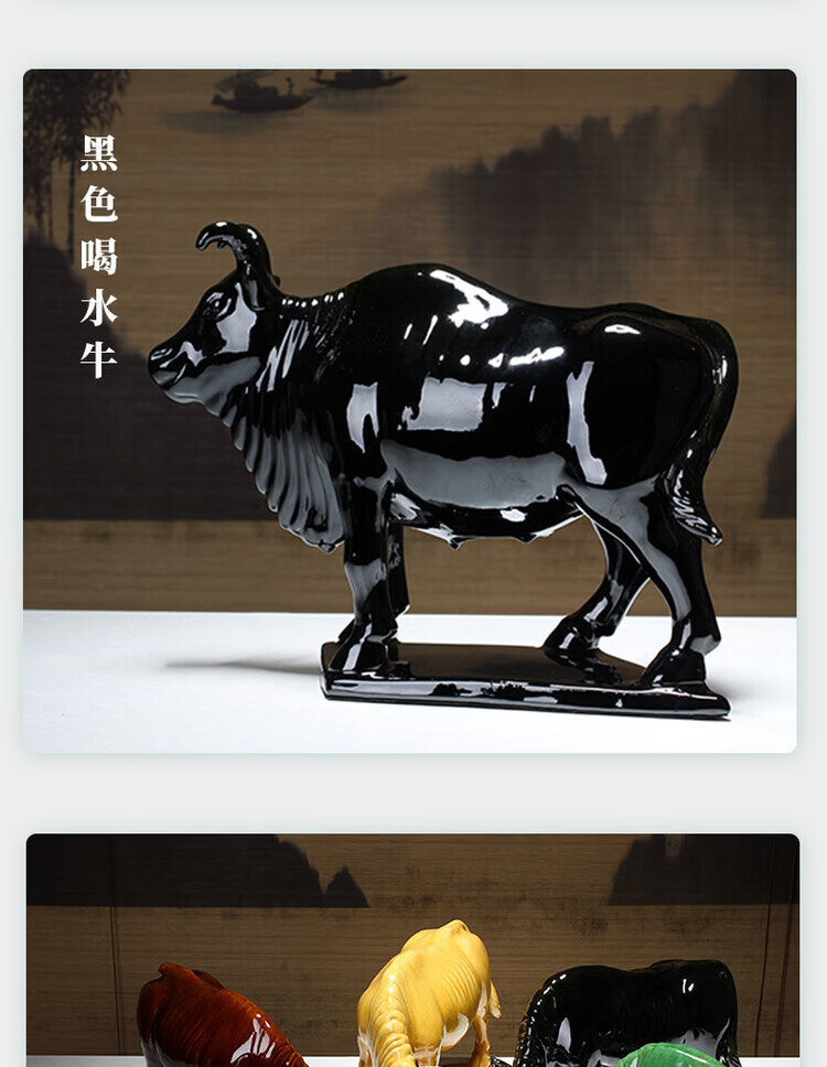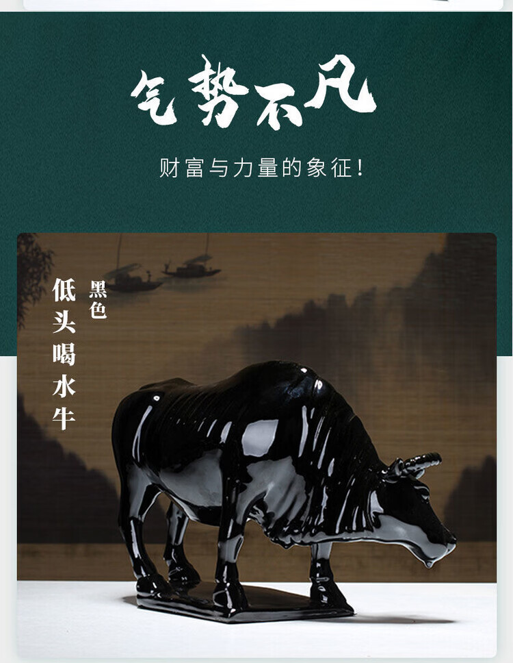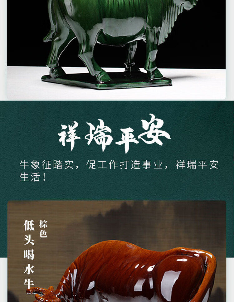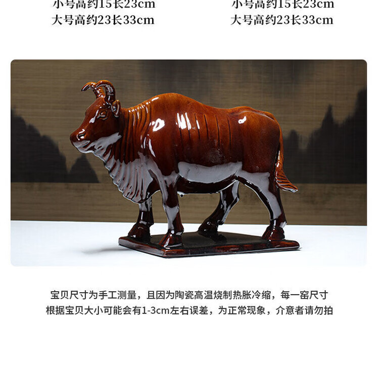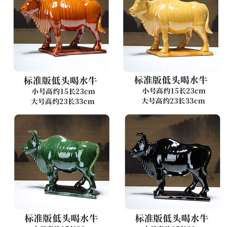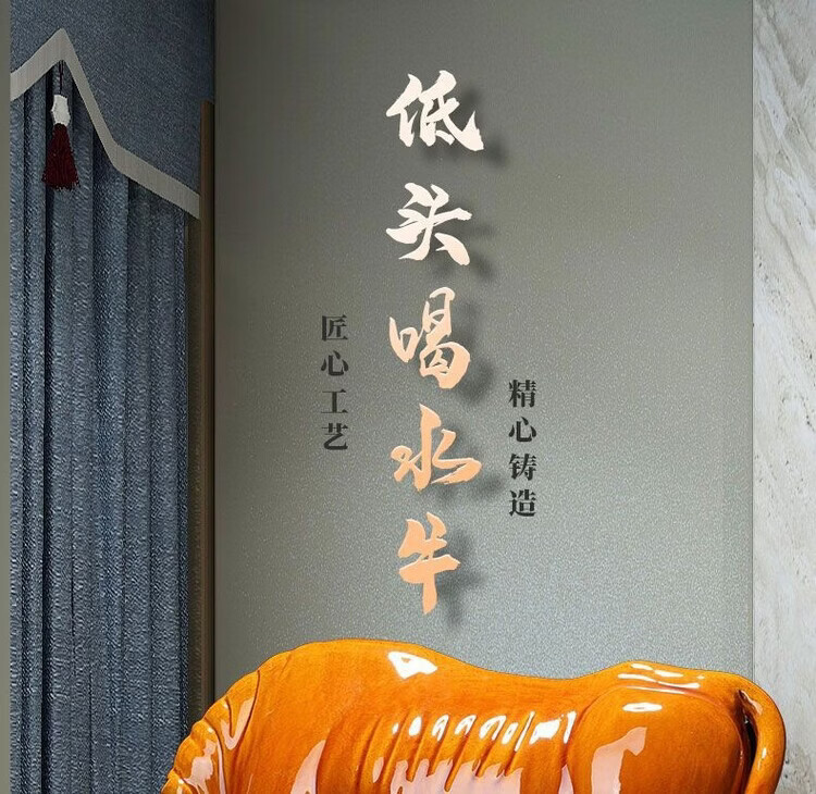 陶瓷摆件十二生肖牛纳财水牛好运牛 乔迁办公司开业旺 生肖牛纳财 土黄大号老黄牛