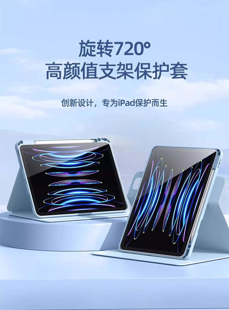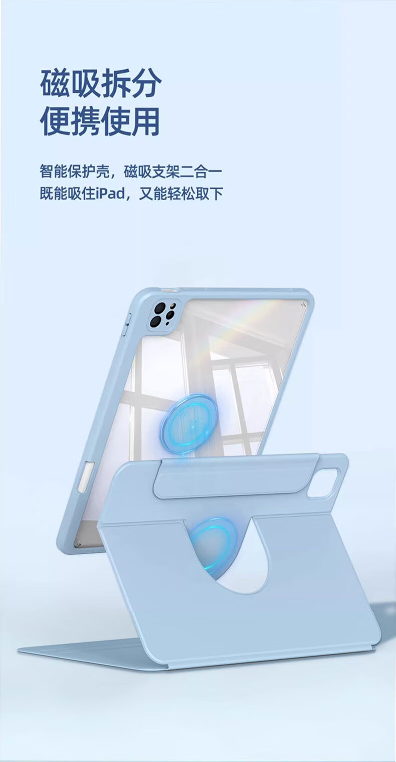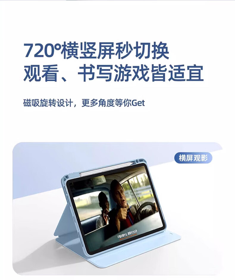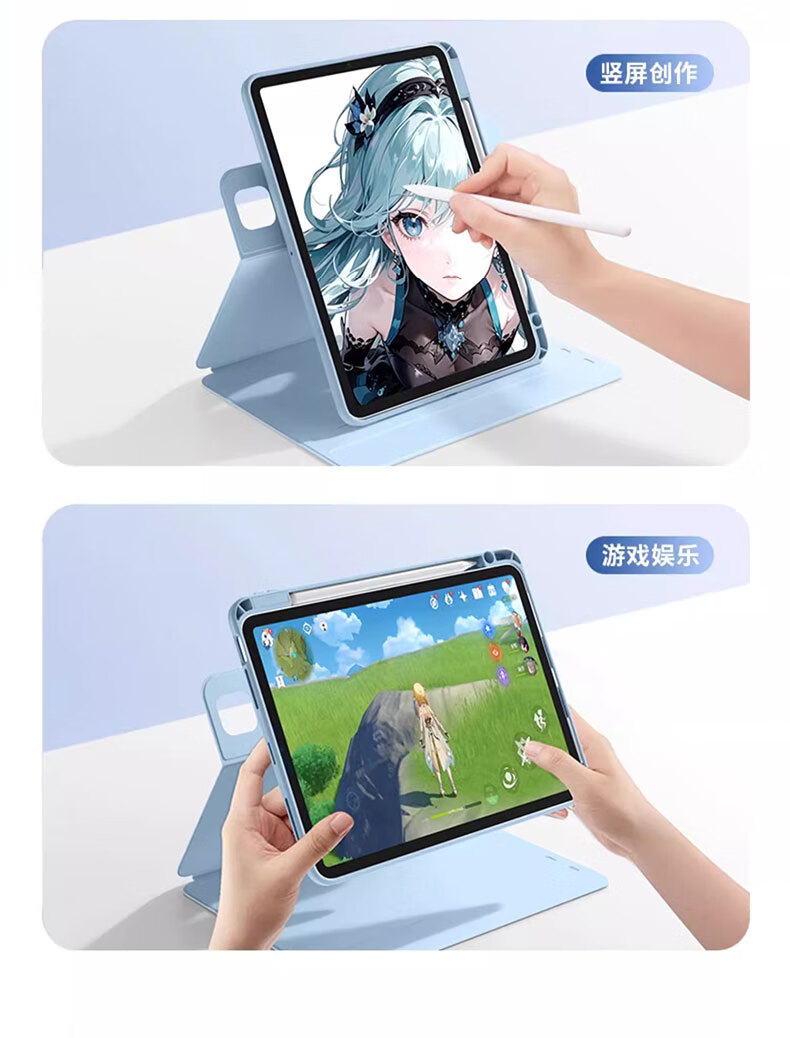 CANHOOGD适用ipad保护套9/8/7/10/11代苹果air8/7/6/5/4/pro11平板保护壳A16磁吸拆分防弯抗摔带笔槽旋转壳 雅致黑【磁吸旋转可拆分】+钢化膜 iPad 11(A16)/10代通用