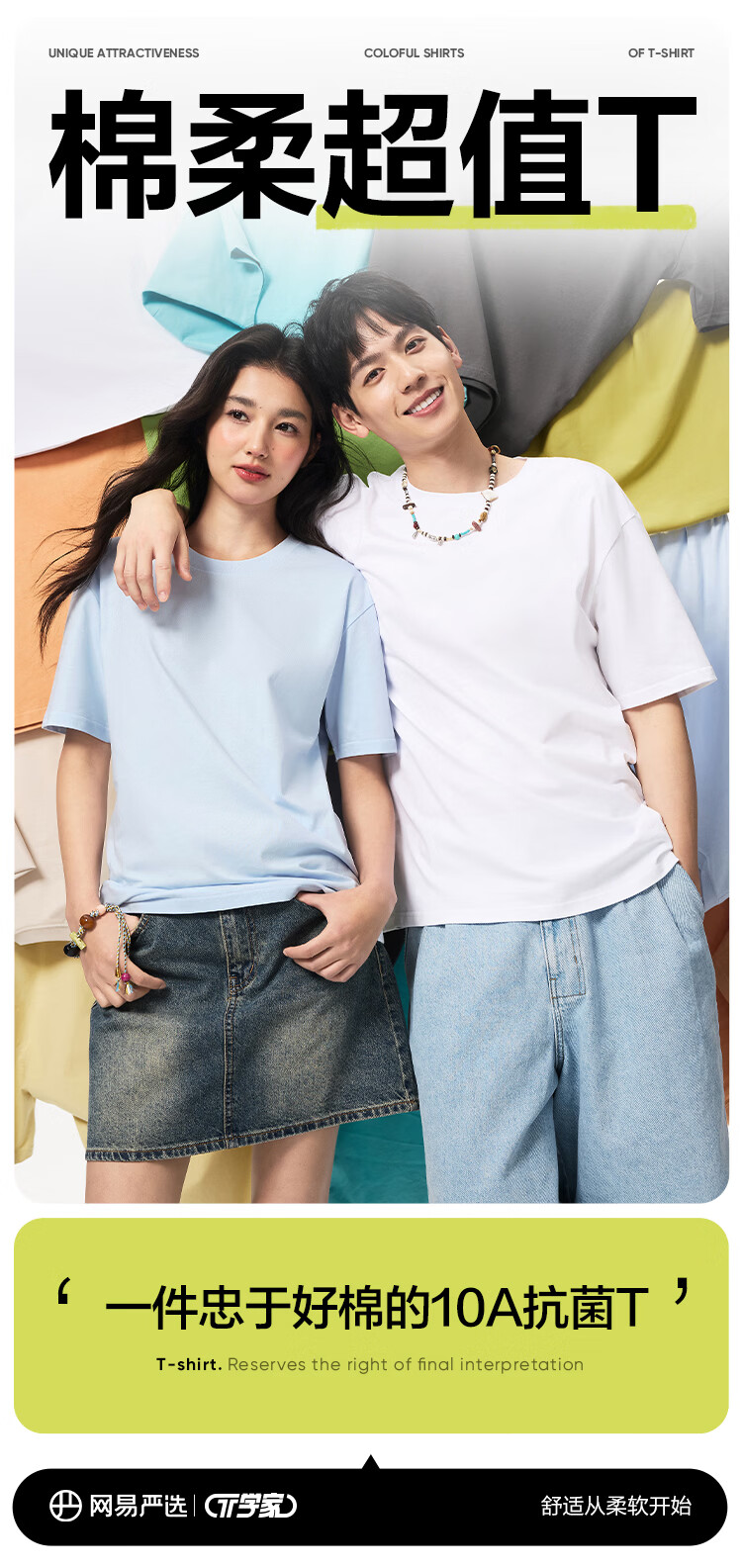 网易严选26新品10A抗菌纯棉短袖T恤100%新疆棉内搭圆领男女同款 质感黑 棉柔T3.0升级 M