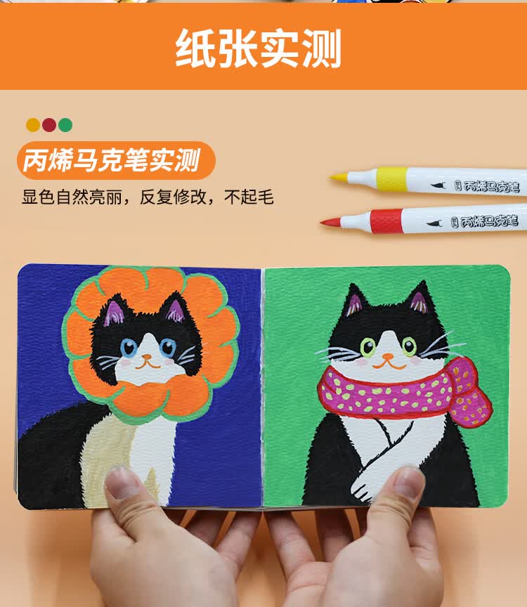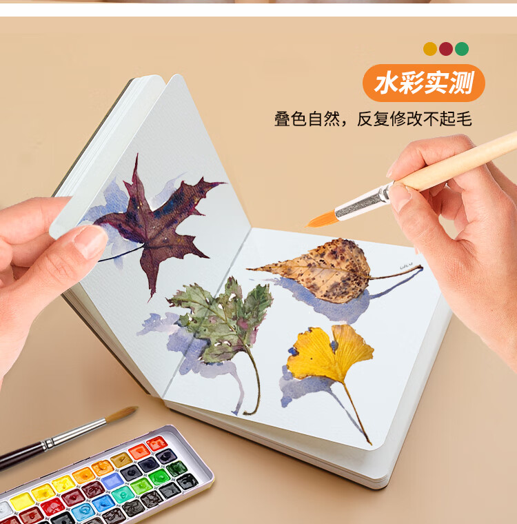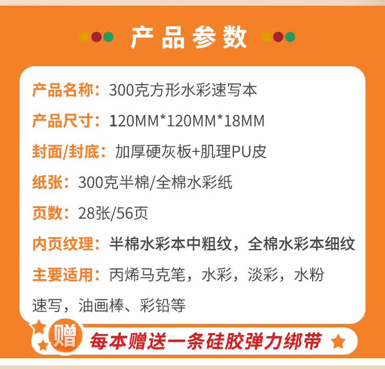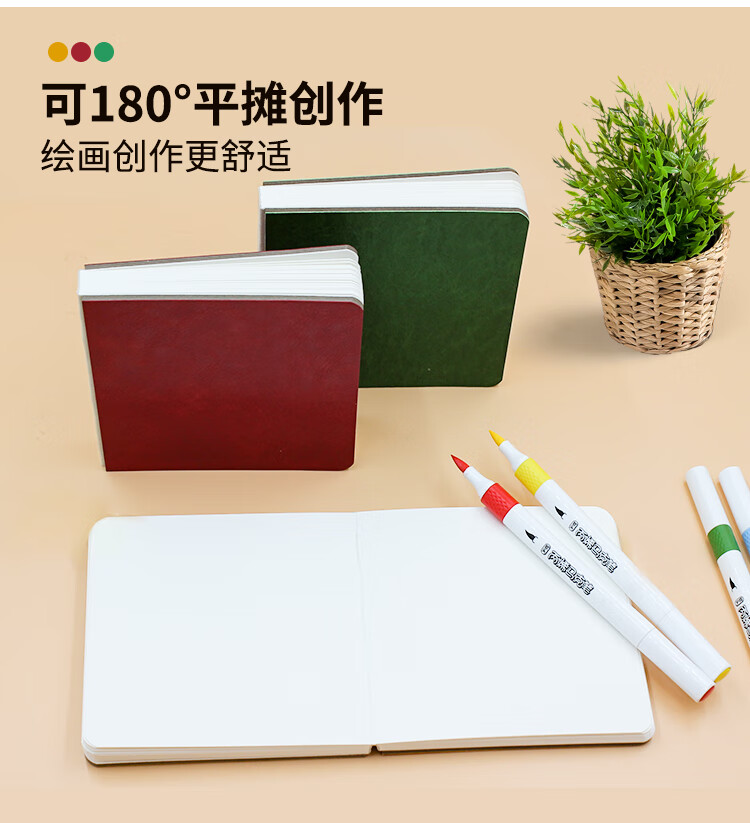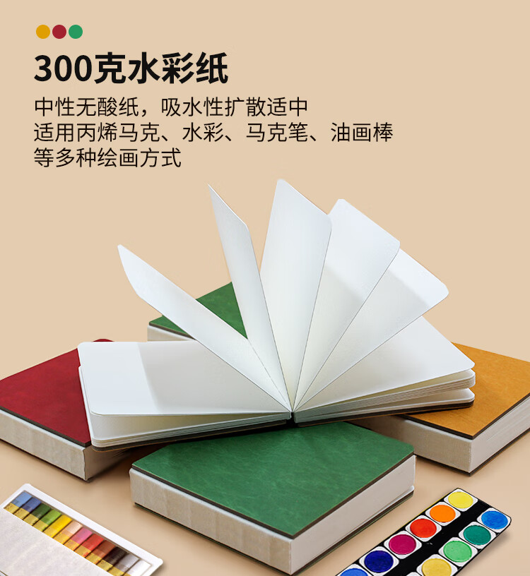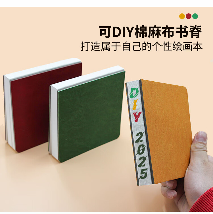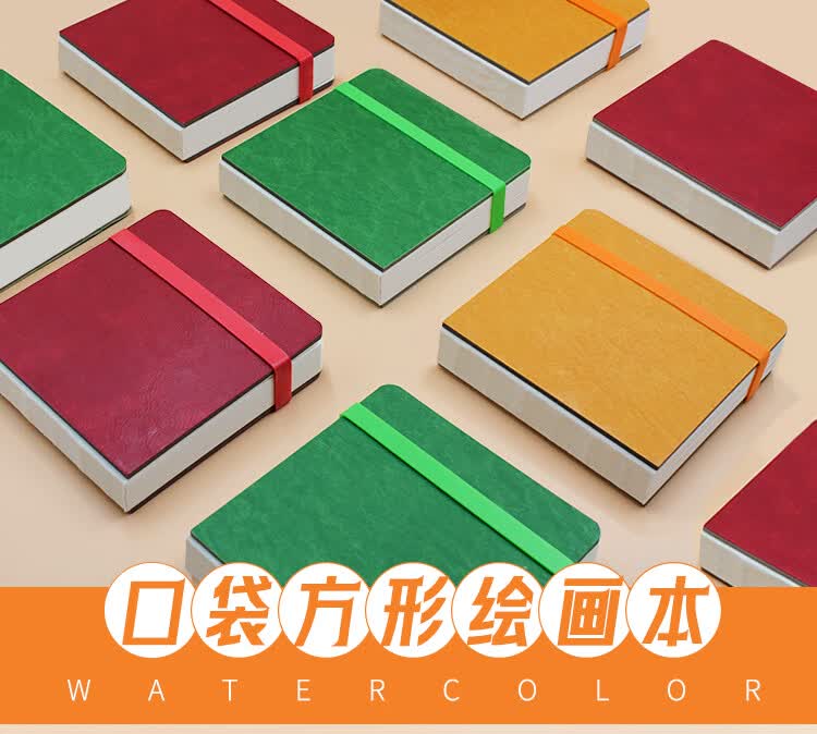 本语时光全棉半棉水彩丙烯马克笔速写方形随身绘画本仿皮300克中粗细纹硬面彩铅油画棒涂鸦画画本 绿色(半棉中粗, 12厘米*12厘米)