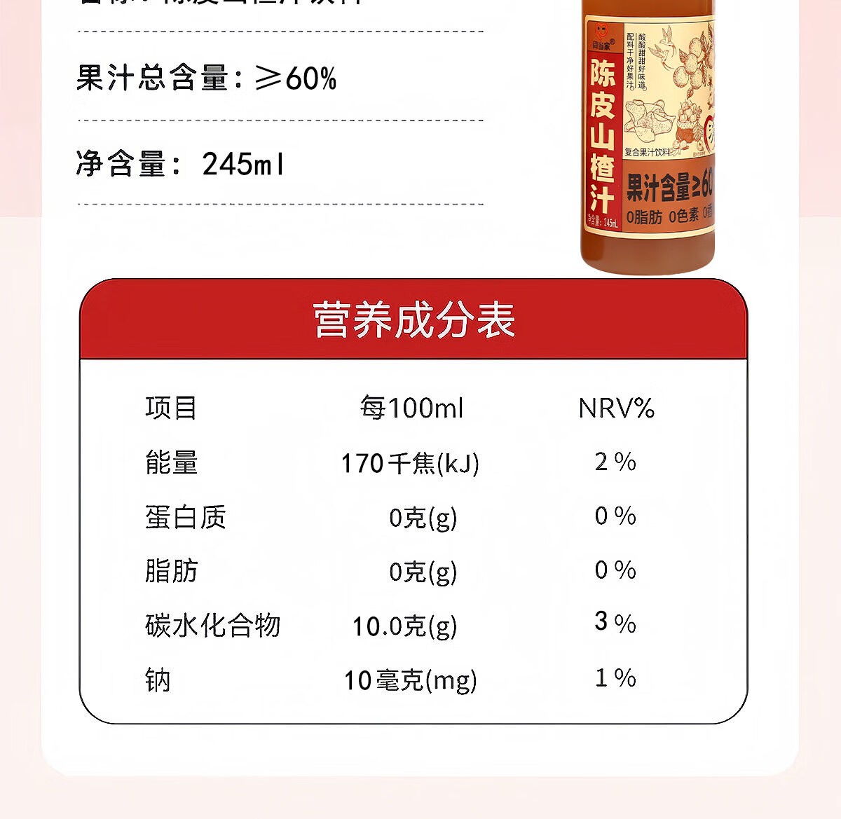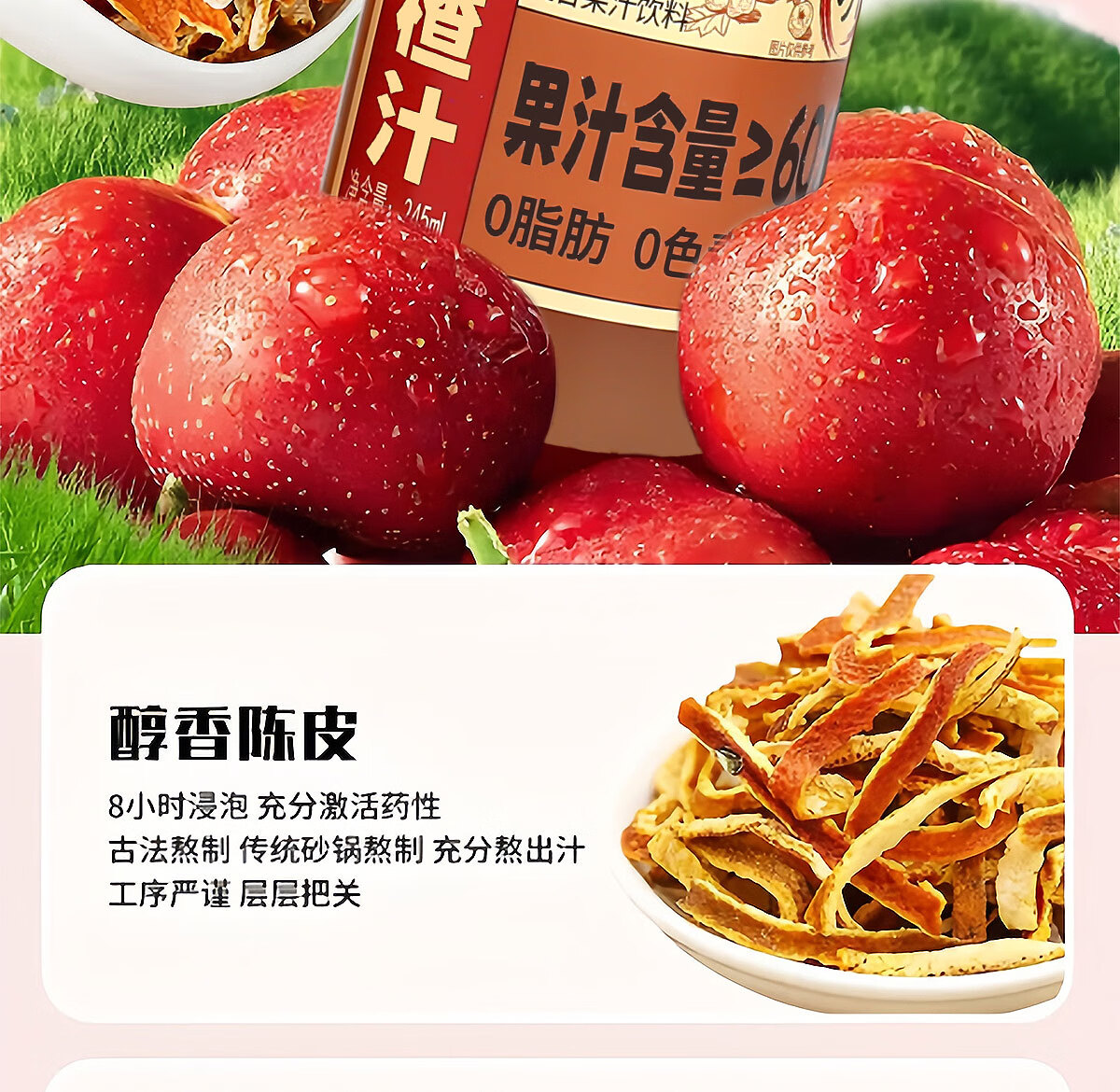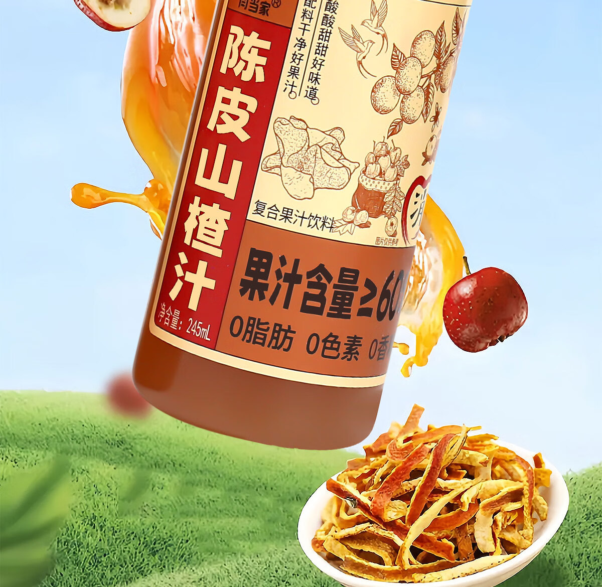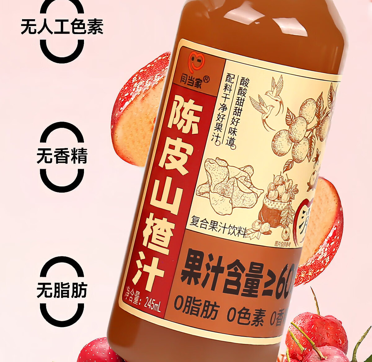 闫当家陈皮山楂汁解腻开胃果汁0色素0香精0脂肪245ml瓶装便携款整箱礼盒 16瓶*245ml
