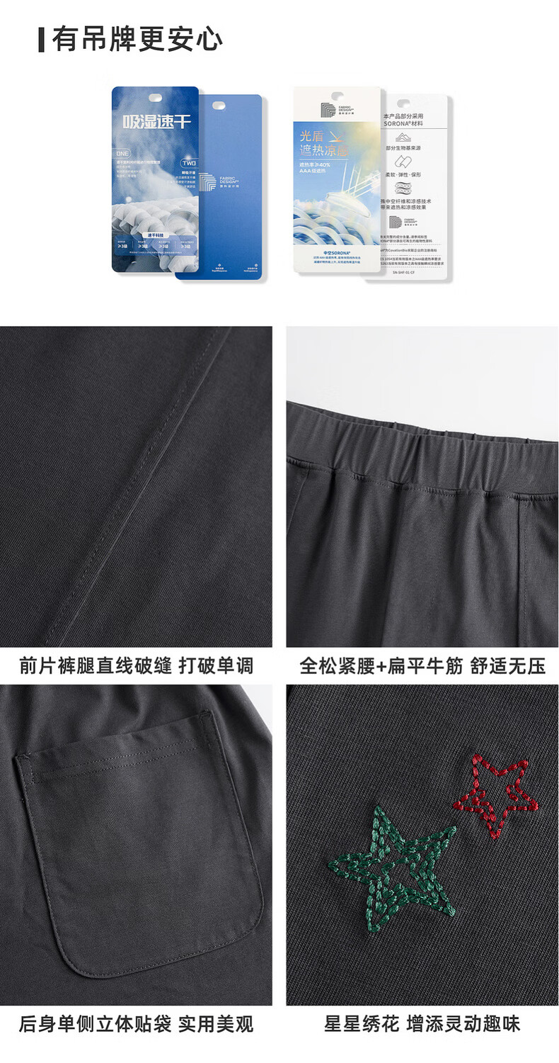 棉叔叔【凉感索罗娜香蕉裤】棉叔叔女童春夏遮热星星绣花休闲裤男童3.18 橡木灰 120 120