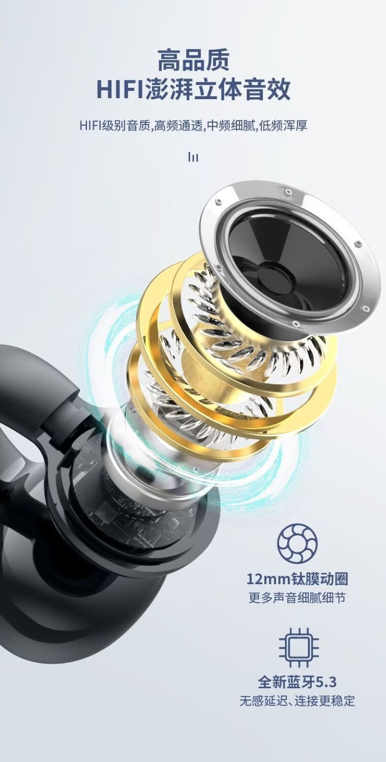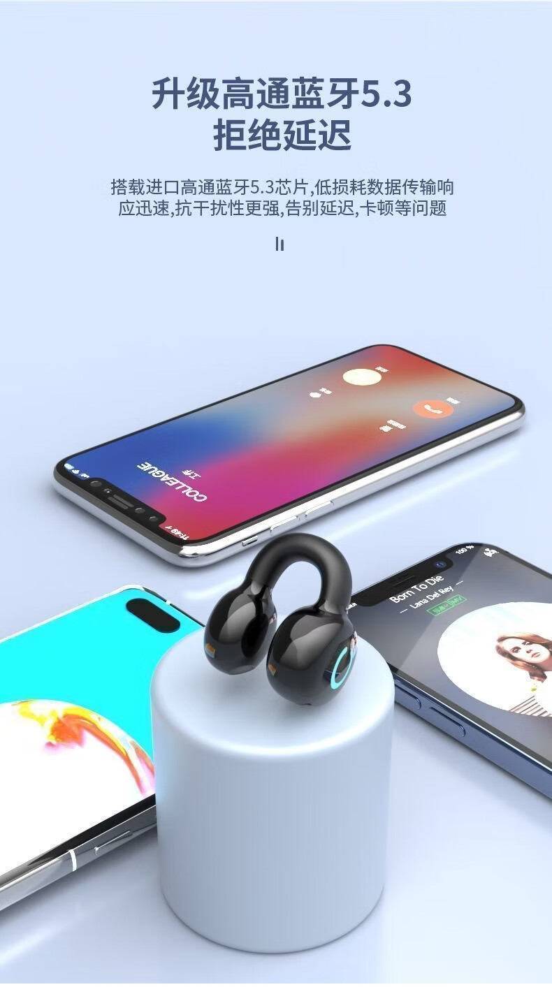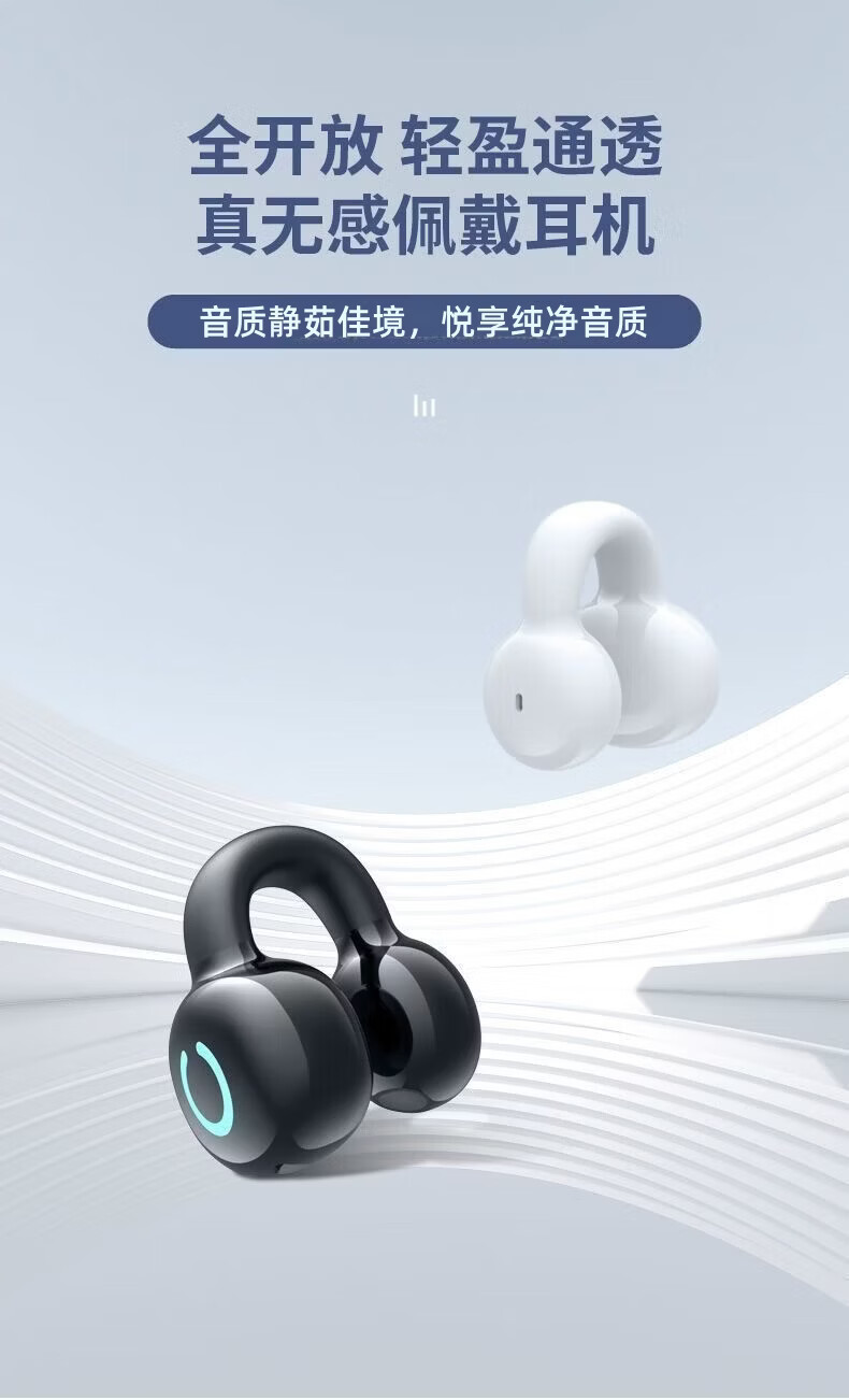 许听【声动人心】蓝牙耳机无线耳夹跑步适用于苹果华为vivo小米骨传导概念超长续航大电量超强音质 顶配白【数显充电仓+升级双耳】 1年换新+充电线+说明书