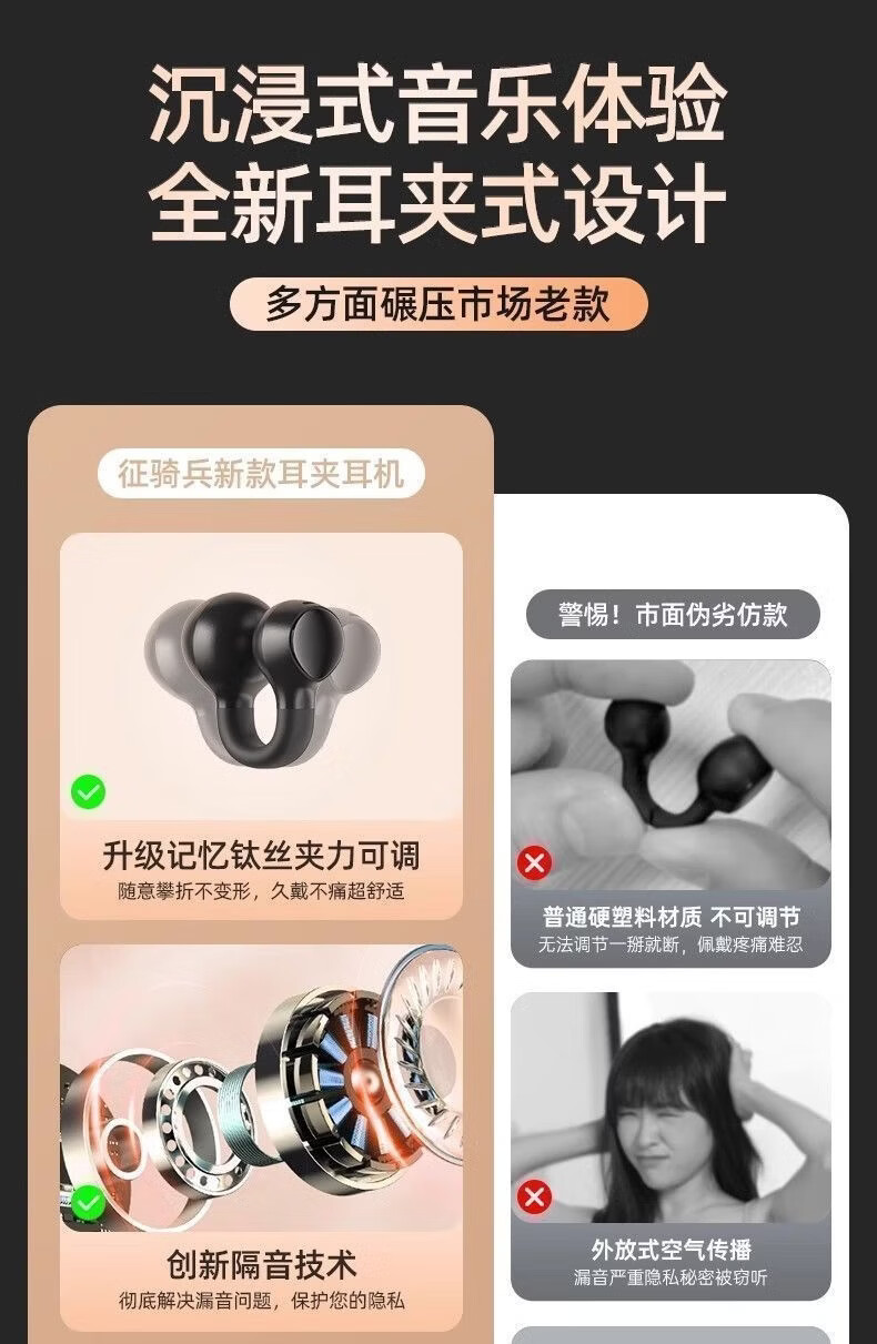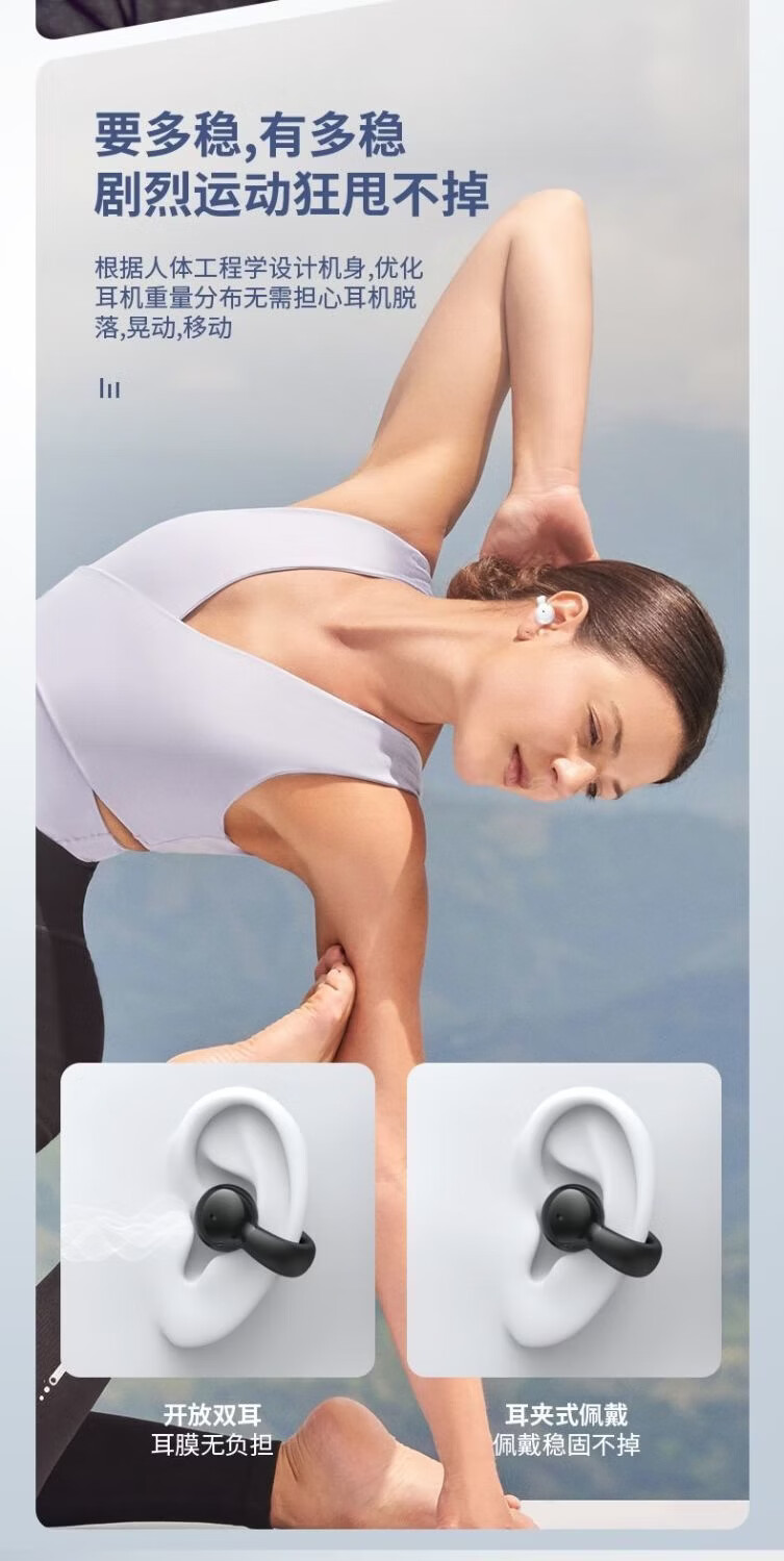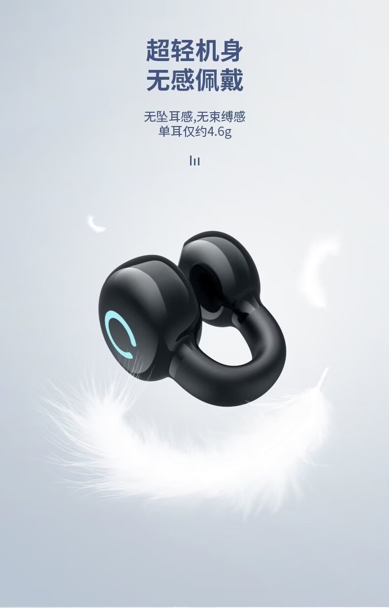 夹耳式无线蓝牙耳机2025新款跑步运动超长续航大电量高颜值不入耳开放式单耳 黑色 单耳
