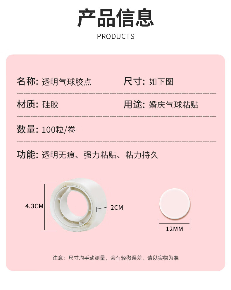 得印(befon)点胶气球胶点100枚点胶双面胶结婚气球胶点贴粘气球盲盒手办专用胶婚房布置节庆装饰粘胶2436